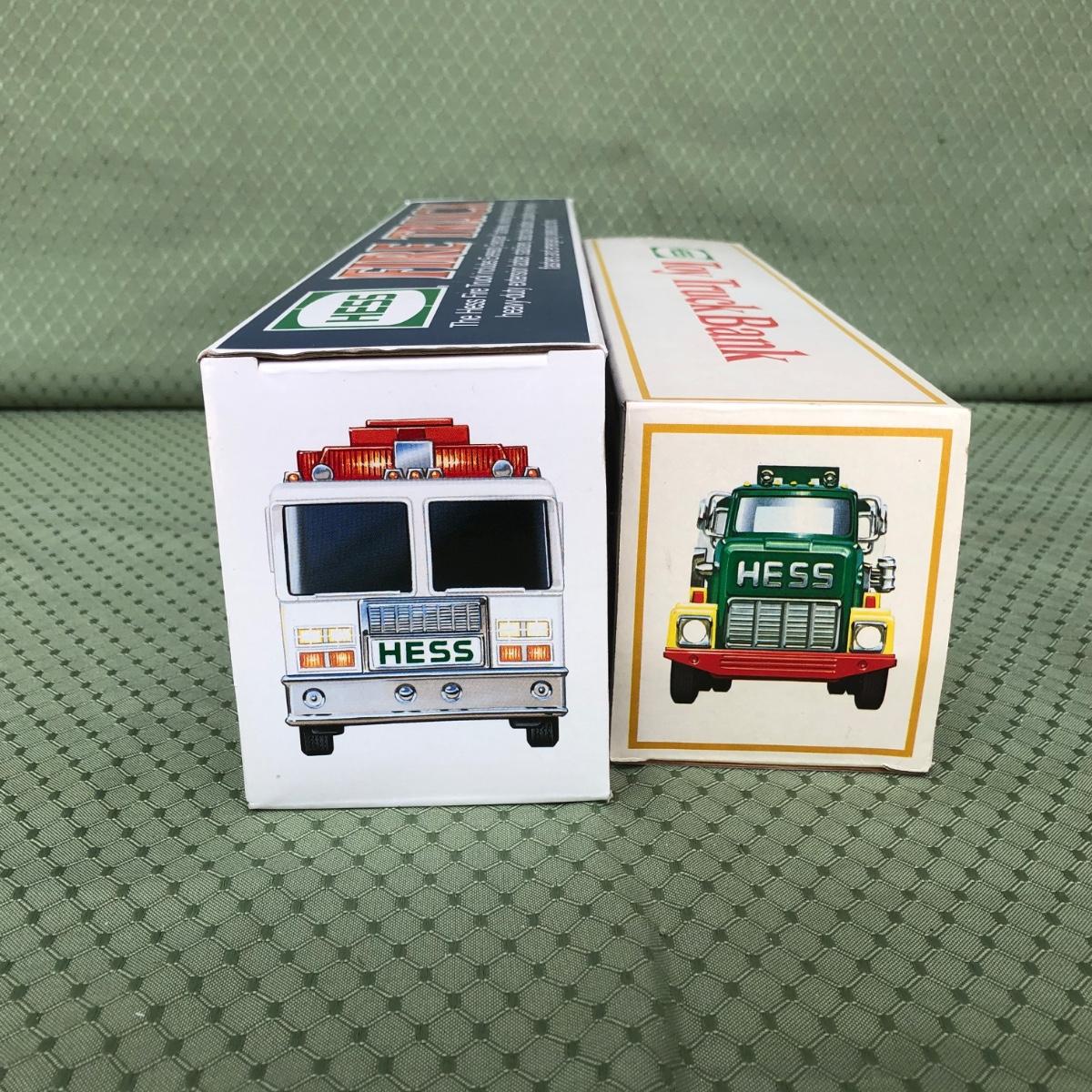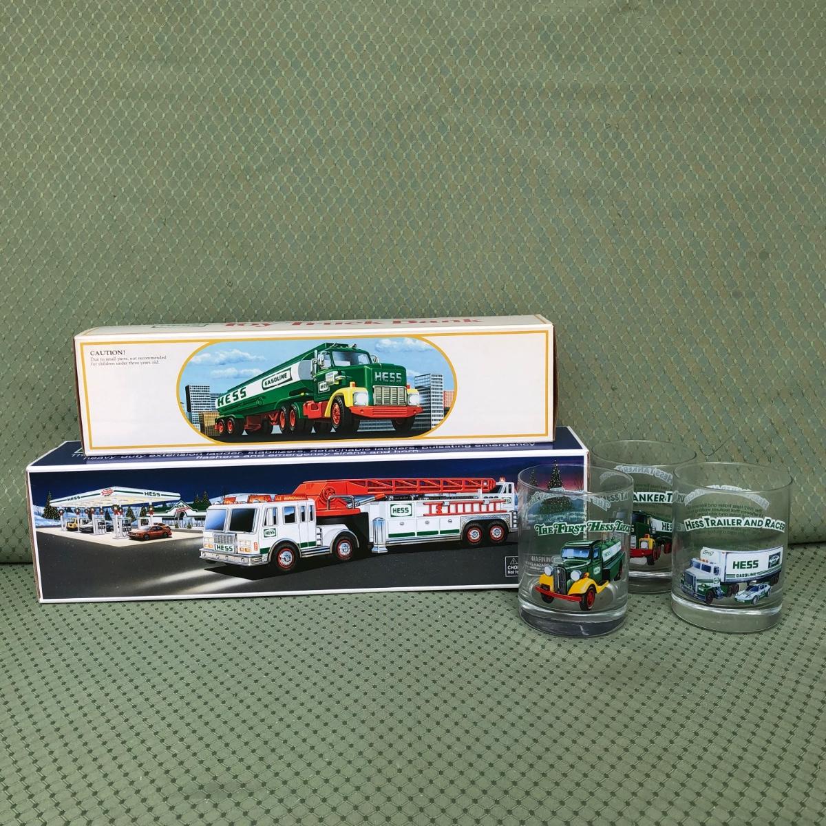 LOT 330M: Hess Collection - 1984 Toy Truck Bank, 2000 Fire Truck & 3 Glasses