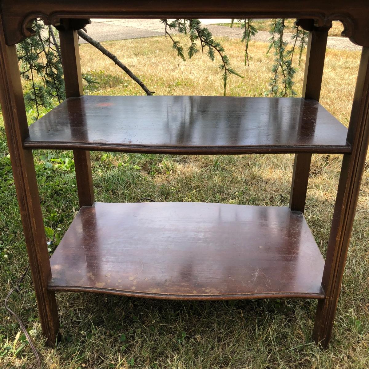 Lamp is untested. Table measures 22 x 14 x 24.