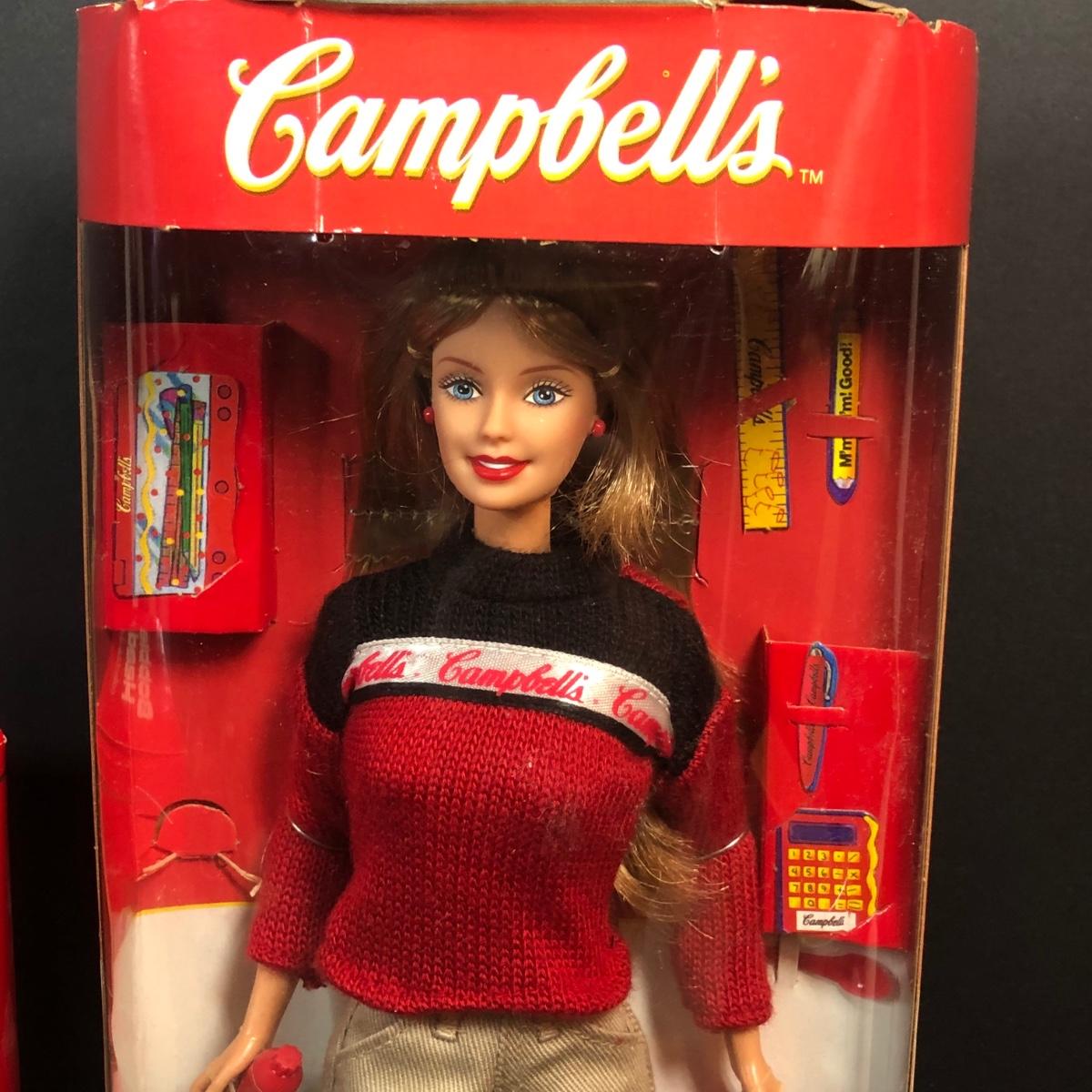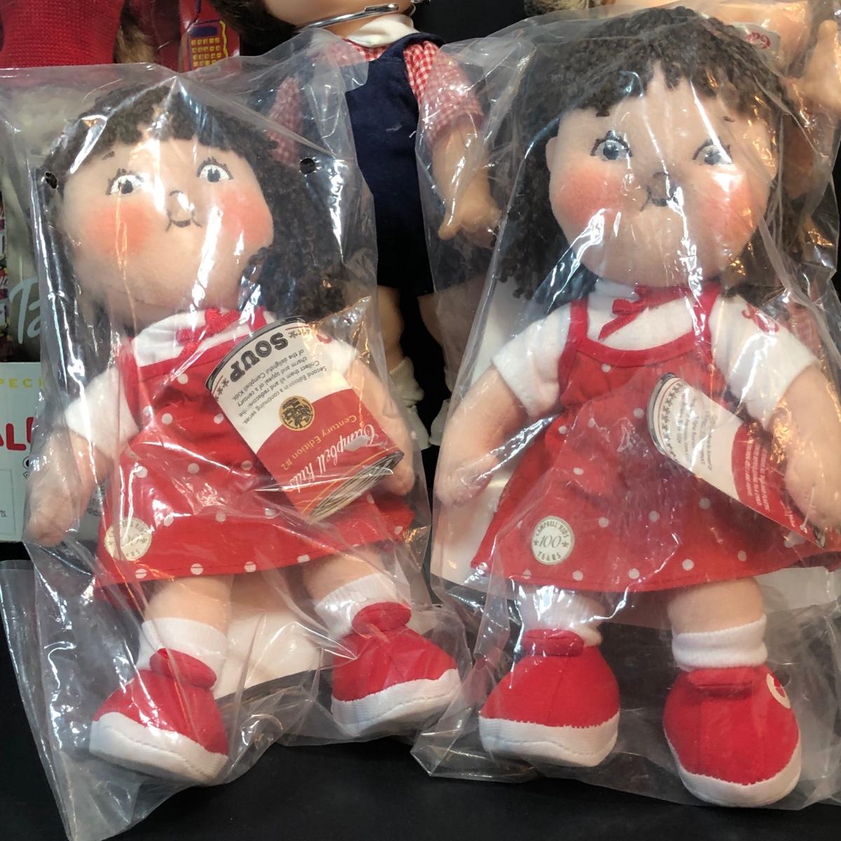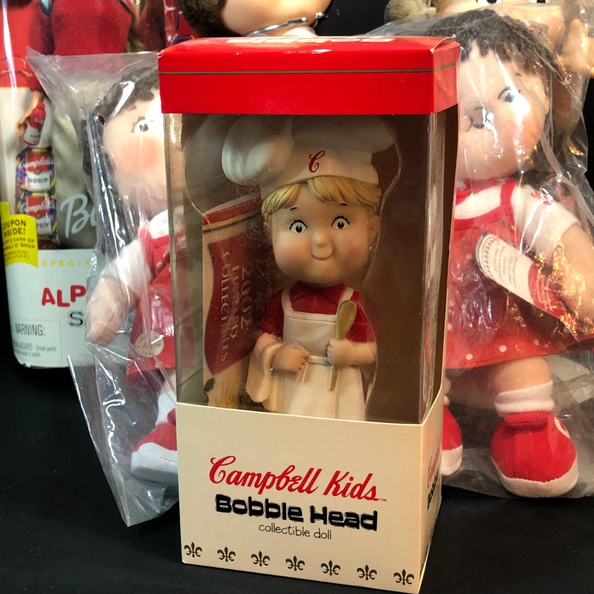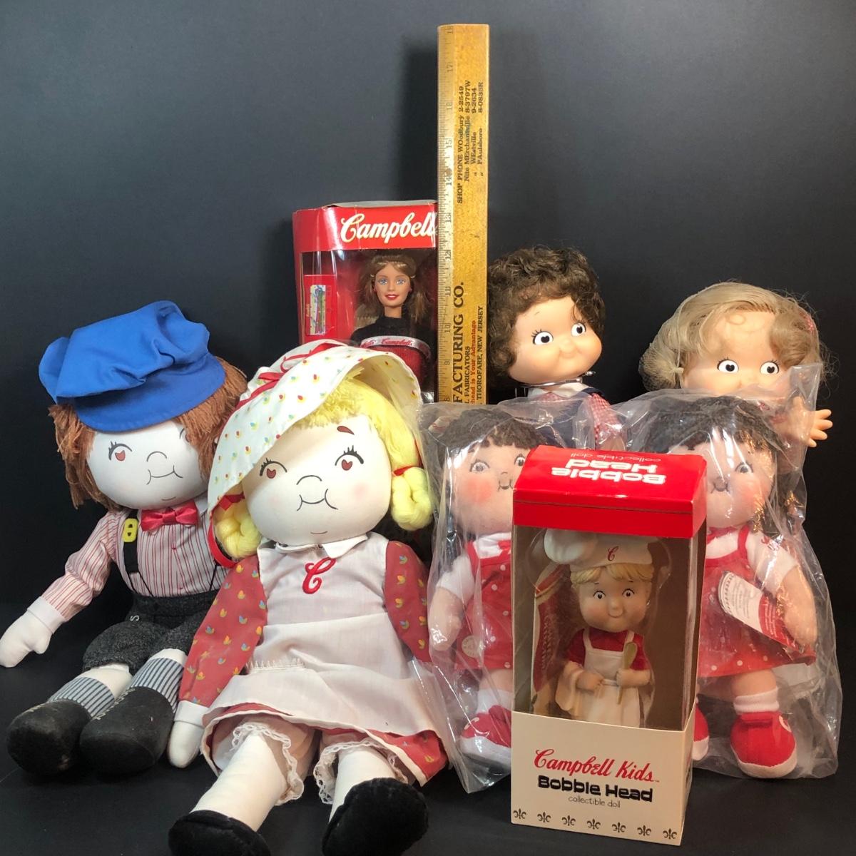 LOT 335M: Campell's Soup Toy Collection - Cloth Dolls, Barbie in Package, Bobblehead