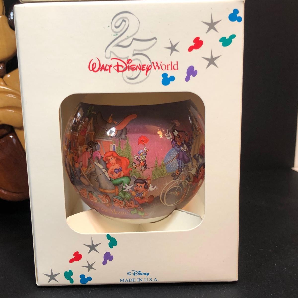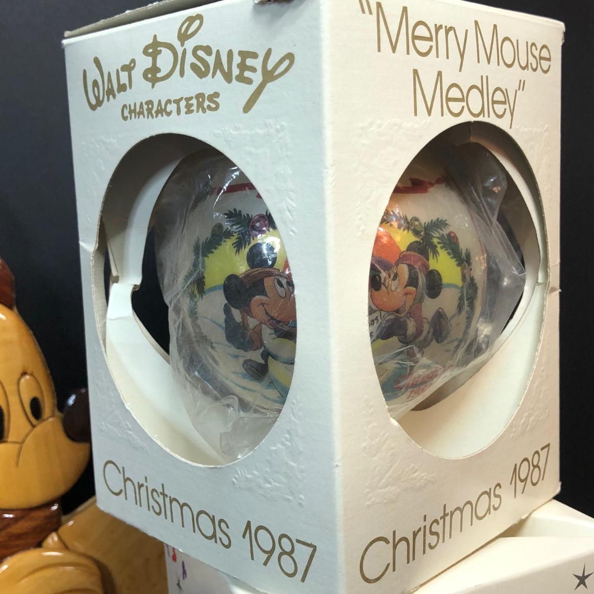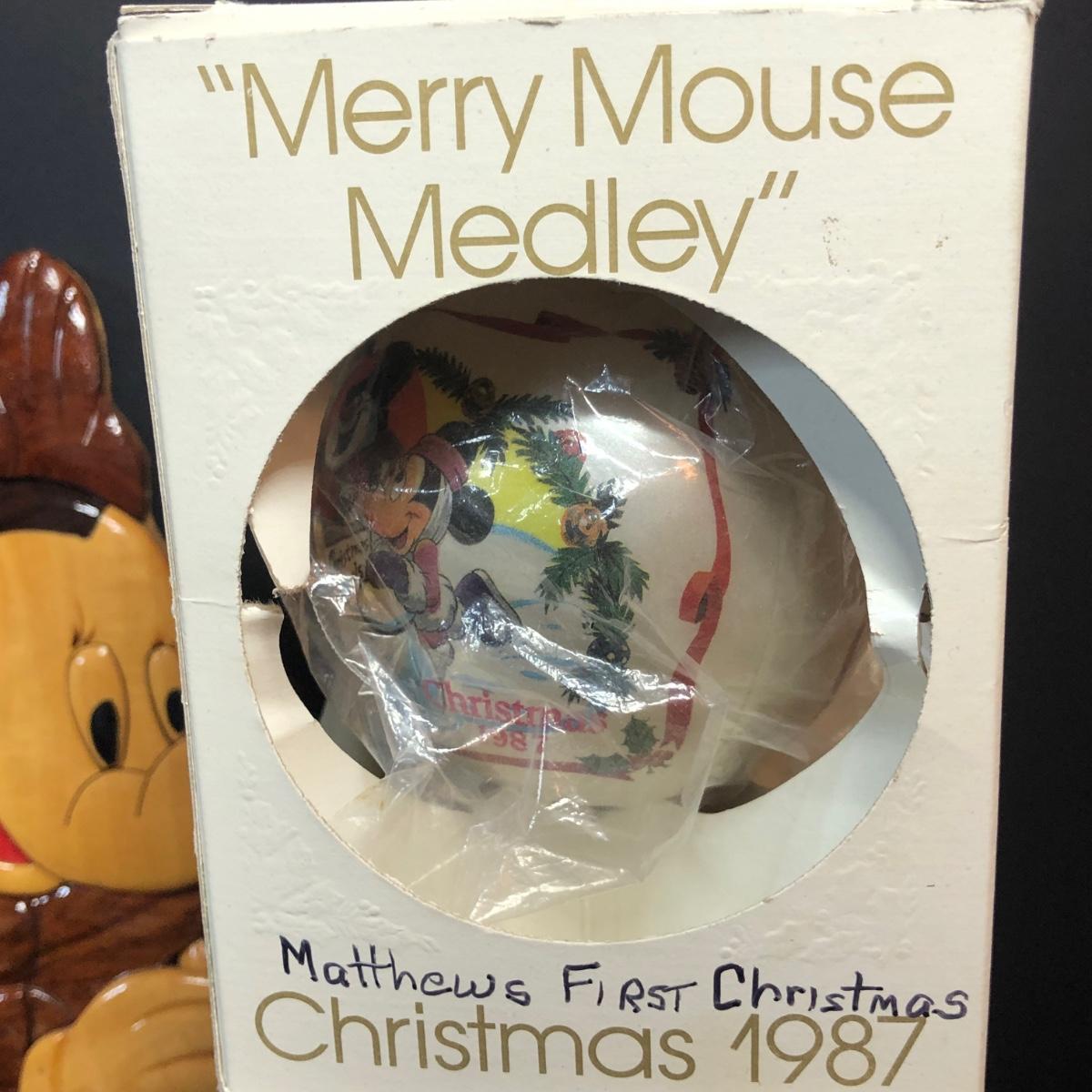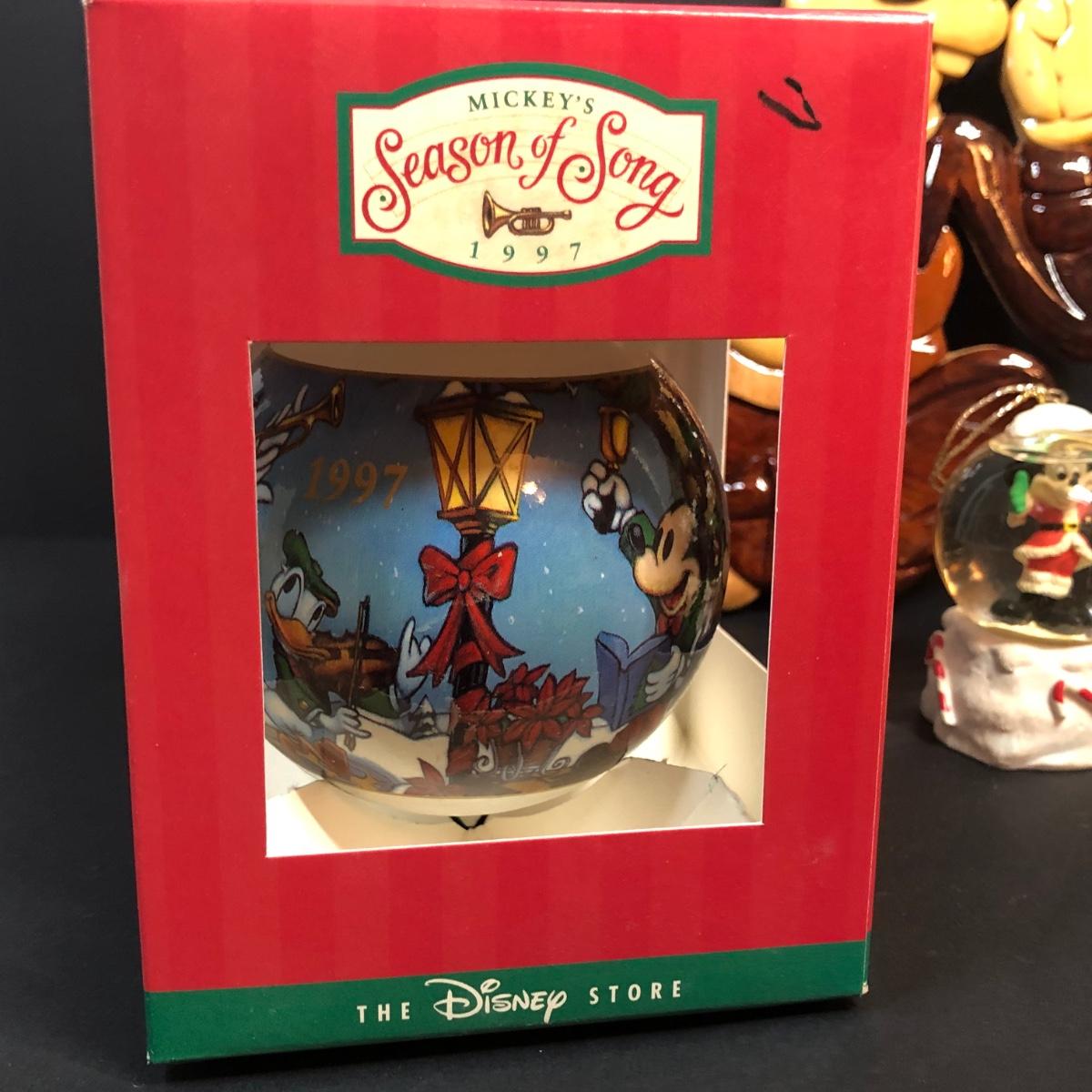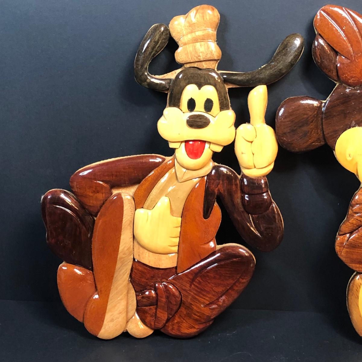 LOT 339M: Wooden Goofy & Minnie Wall Hangings, Mickey w/ Horn Ornament & Disney Christmas Bulbs