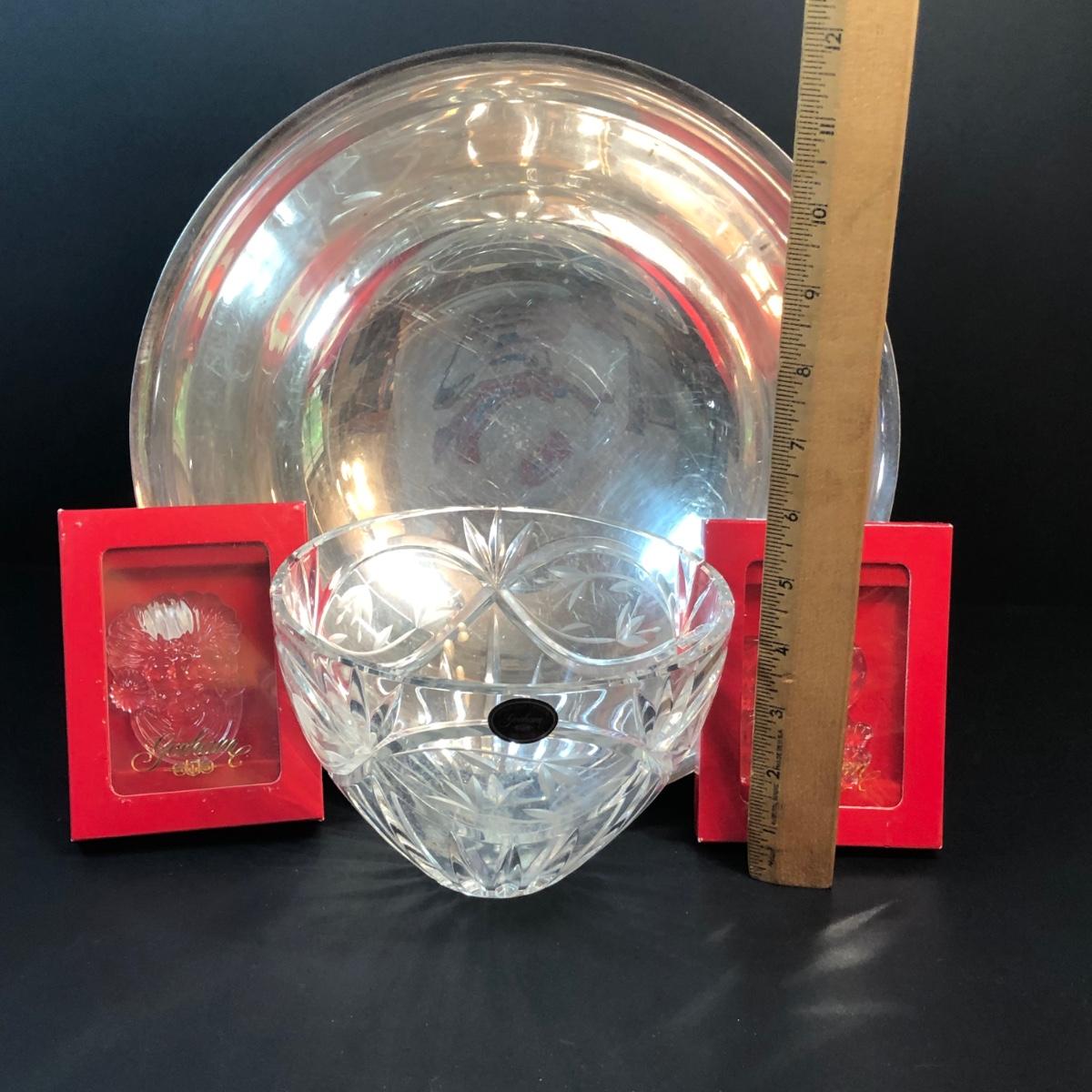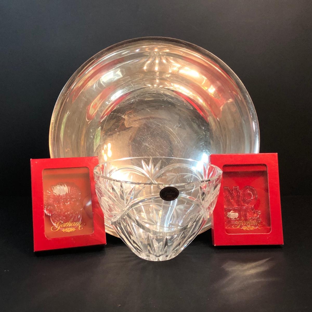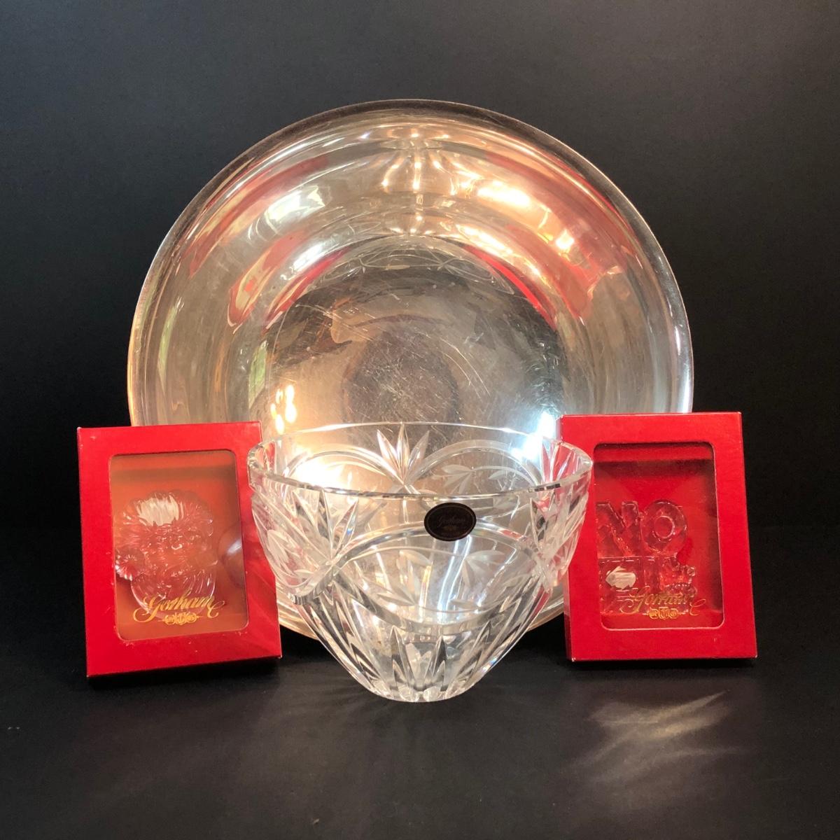 LOT 343M: Gorham Collection - Crystal Bowl, Silver Plated Bowl, Crystal Christmas Ornaments