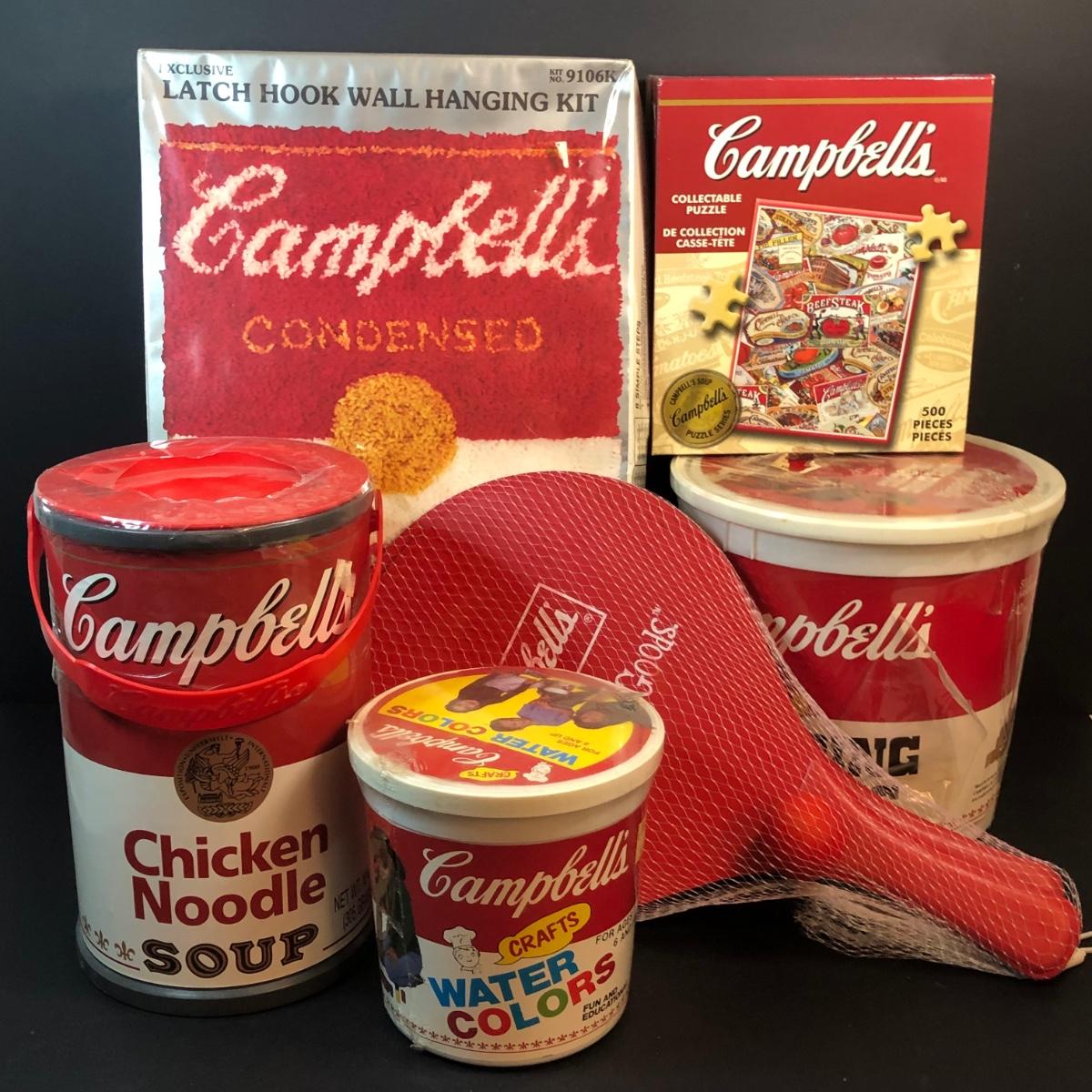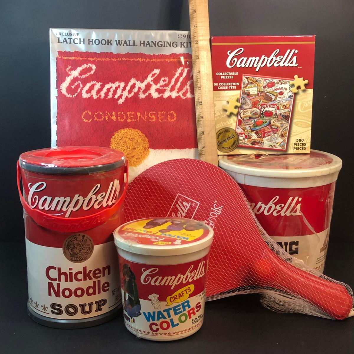 LOT 349M: Campbell's Toys & Games - Water Colors, Building Blocks, Latch Hook Kit, Play Food, Puzzle & Ping Pong Paddles