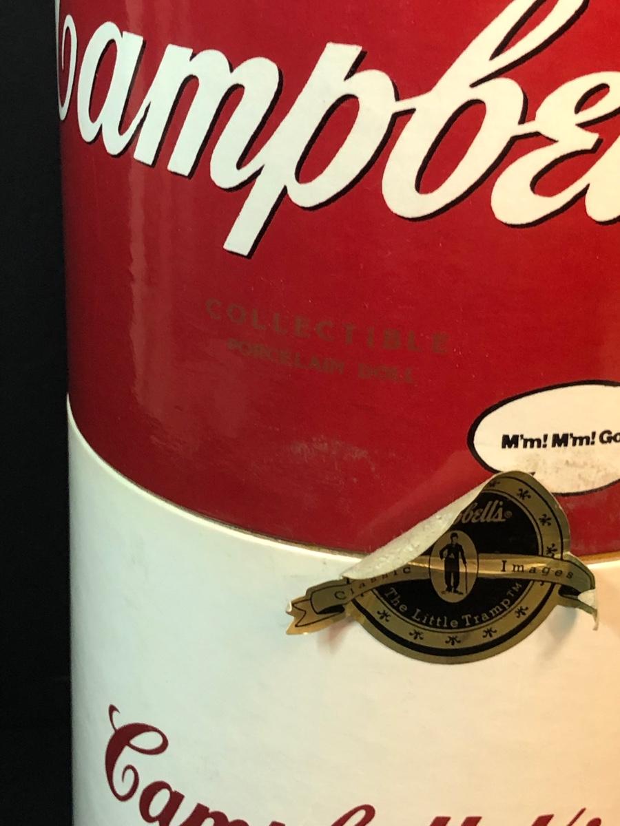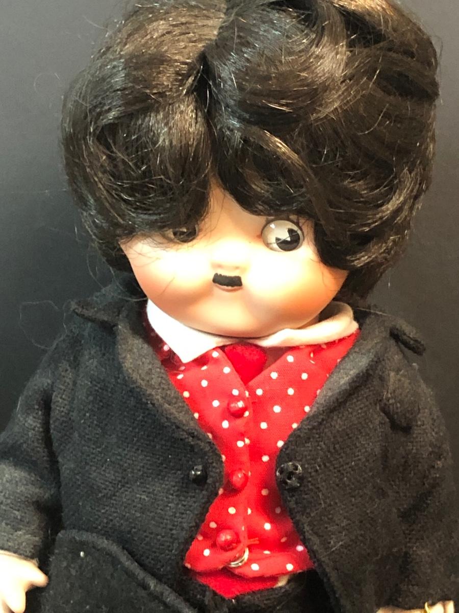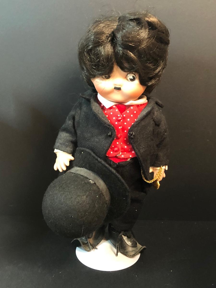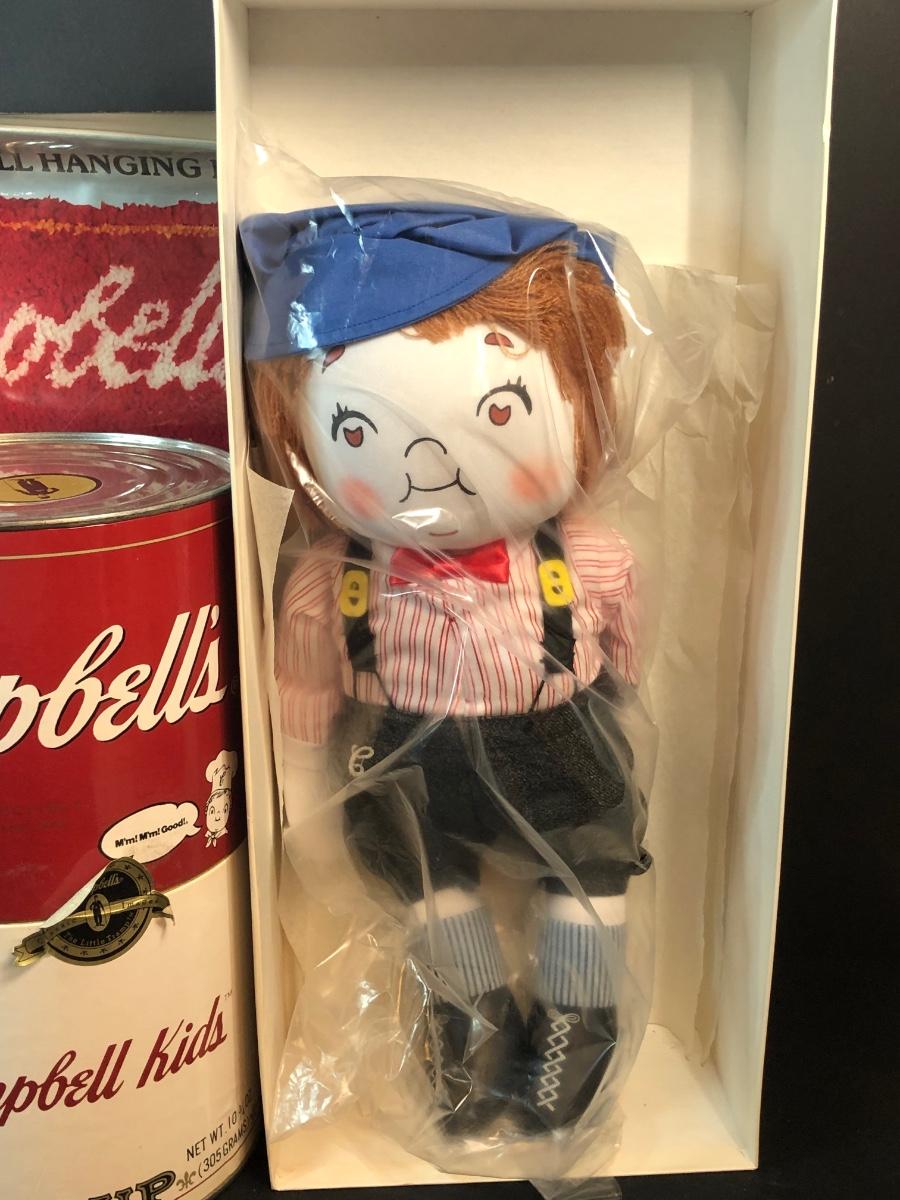 LOT 350M: Campbell's Soup - Charlie Chaplin Porcelain  Doll, Colonial Boy Vinyl Doll, Cloth Boy Doll & Latch Hook Kit