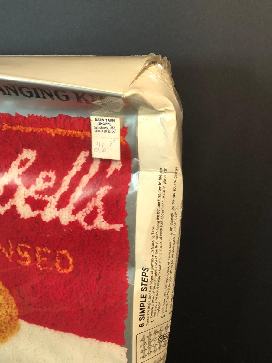 Charlie Chaplin doll has a loose head. Latch hook kit is unopened.