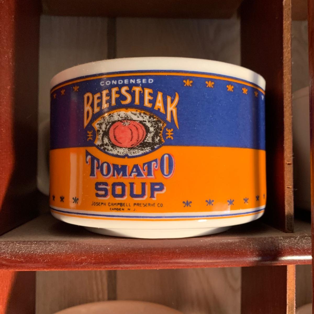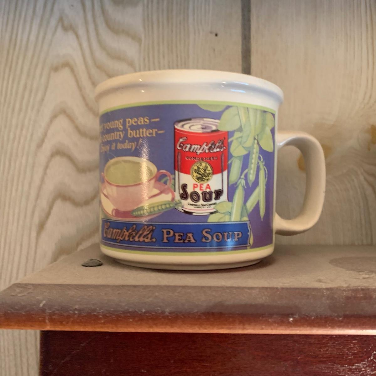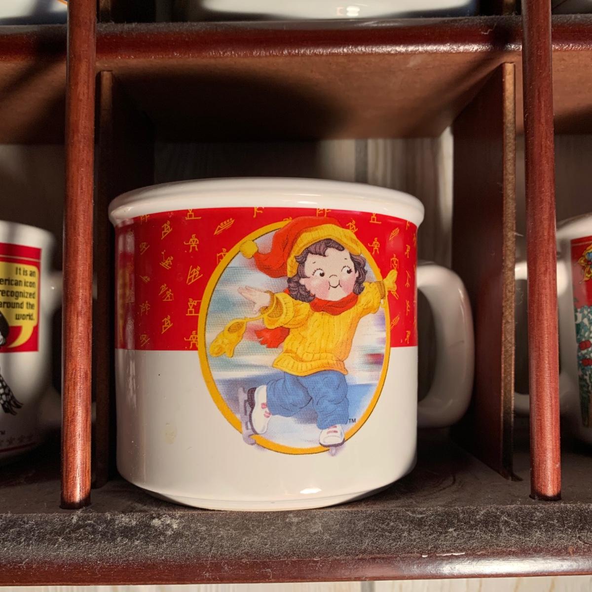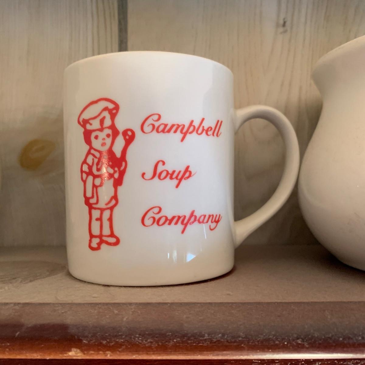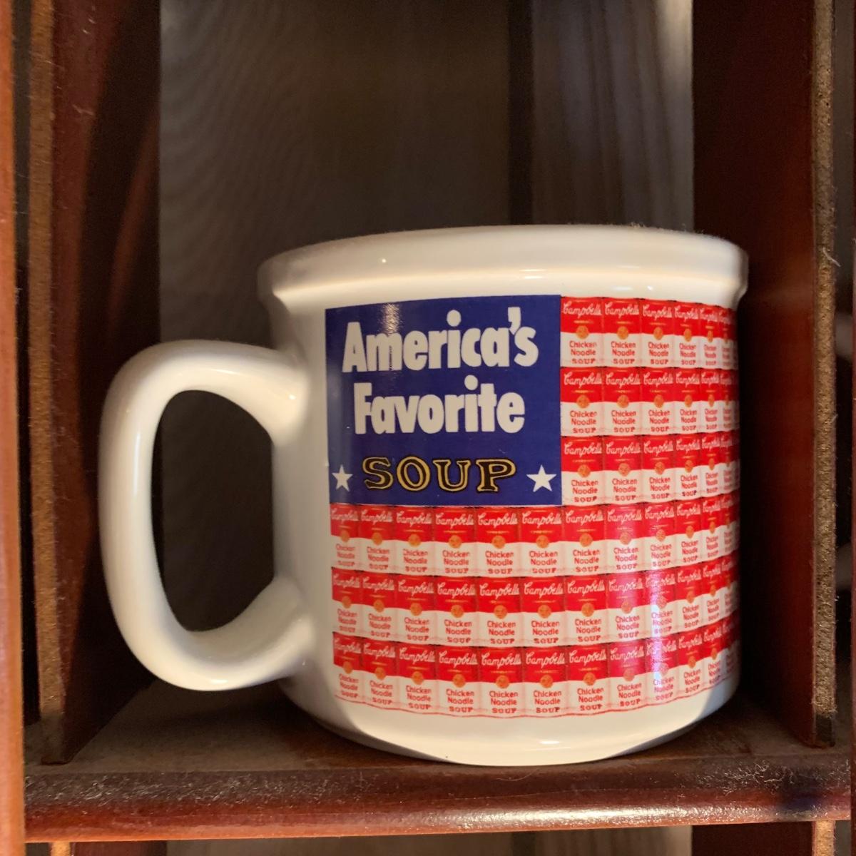 LOT 362R: Campbell's Soup Mugs, Mugs & Wooden Display Shelf