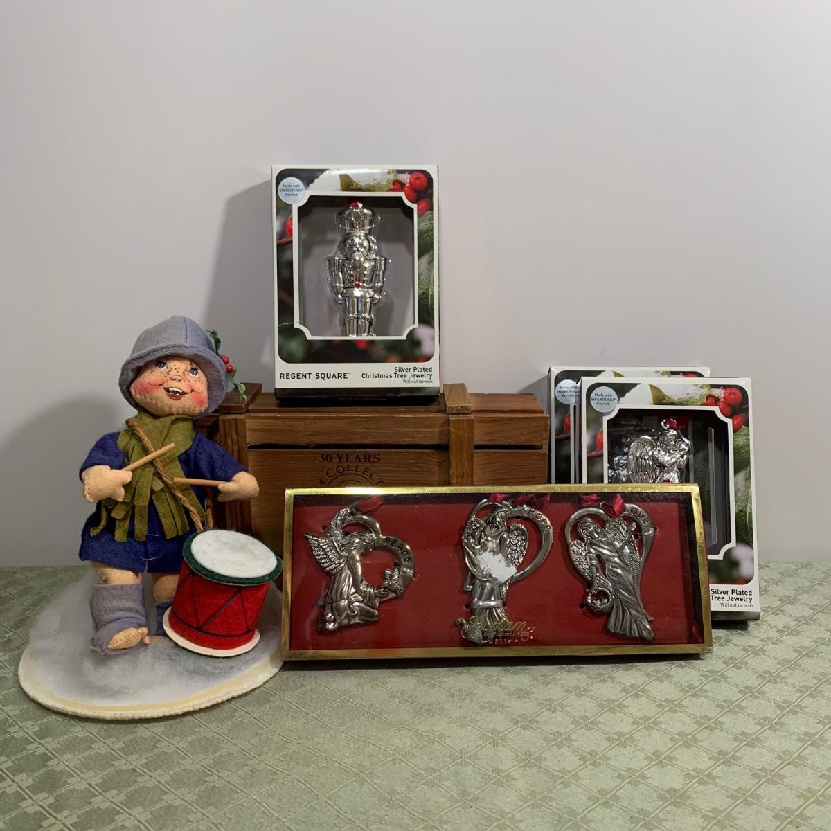 LOT 367R: Thomas Pacconi Classic Ornaments, Gorham Angel Ornaments, Regent Square Ornaments w/Swarovski Crystals & Annalee Drummer Boy