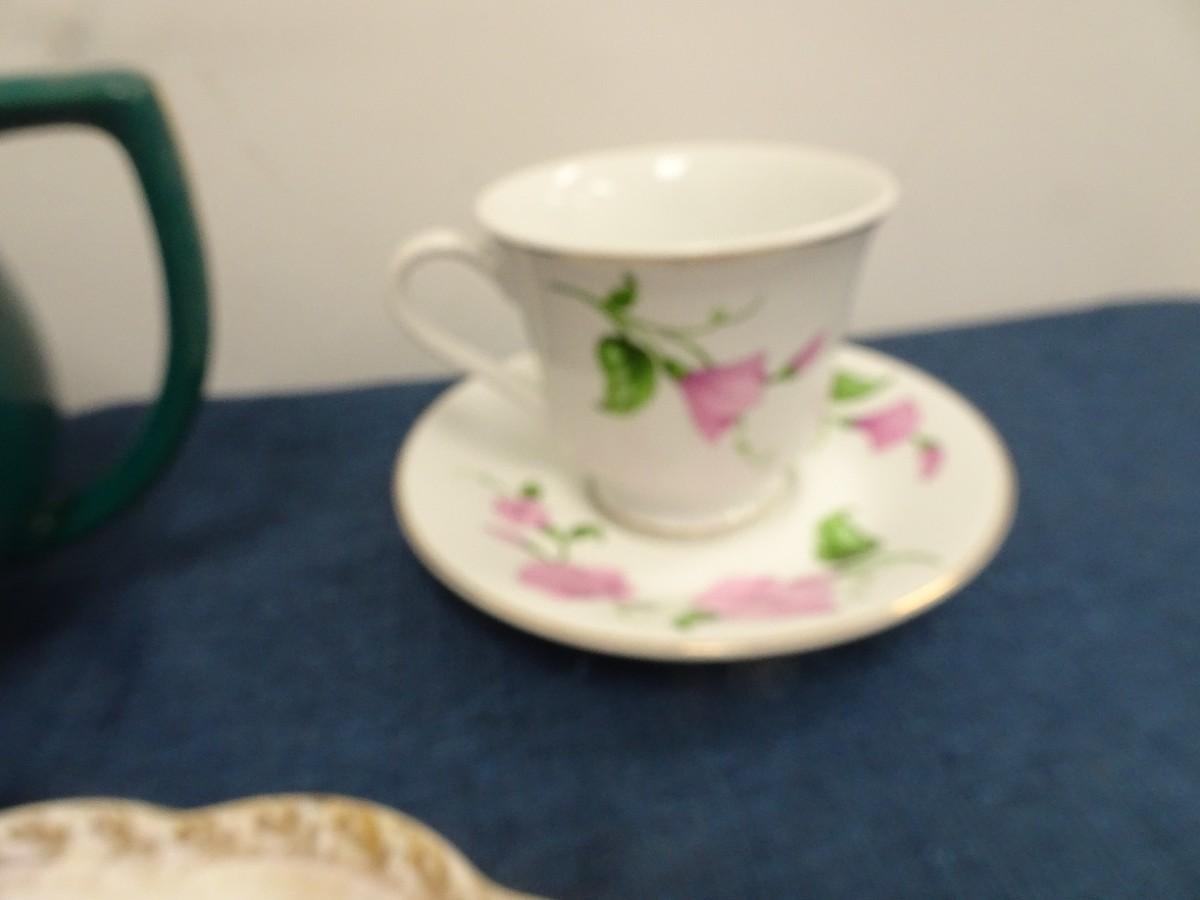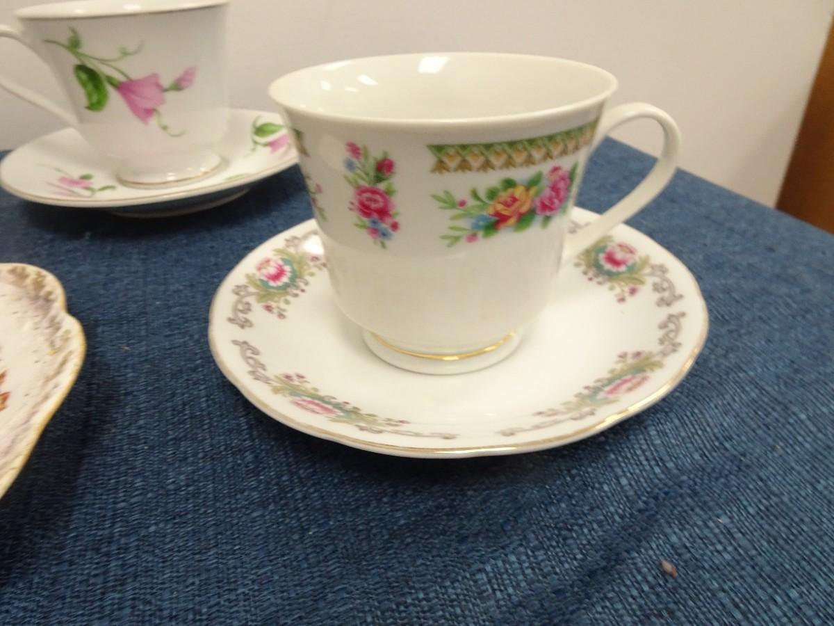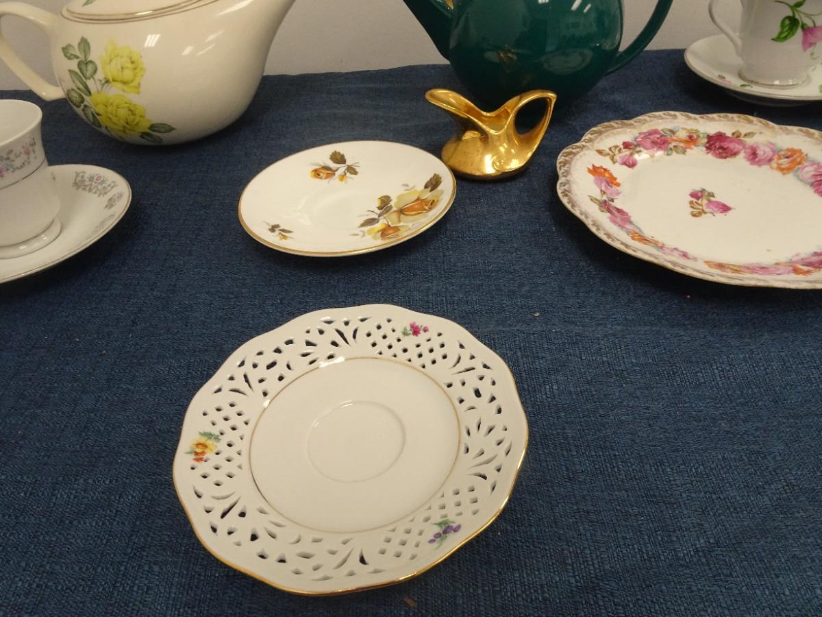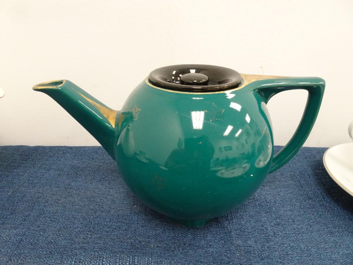 LOT 879. COLLECTION OF TEA POTS, CUPS AND PLATES