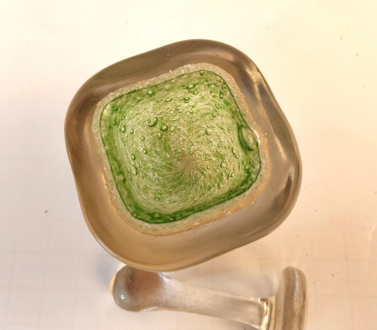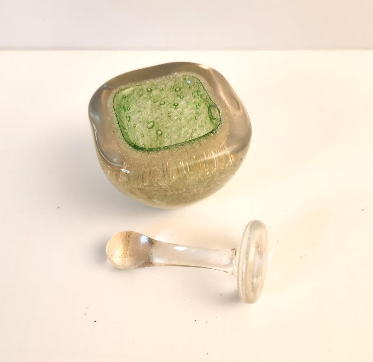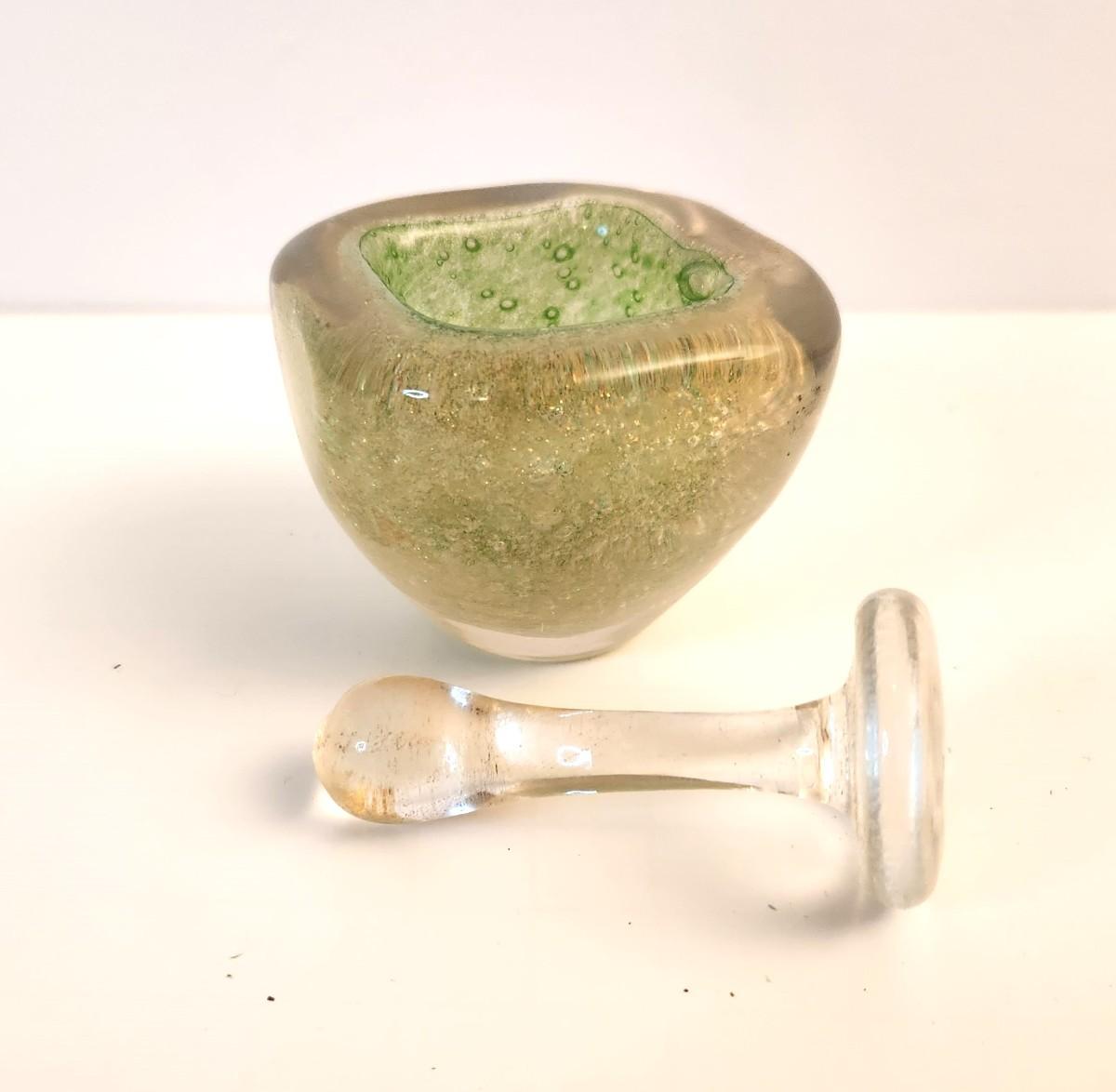 Lot #87D Murano Gold Fleck Submerged Green Small Mortar and Pestle