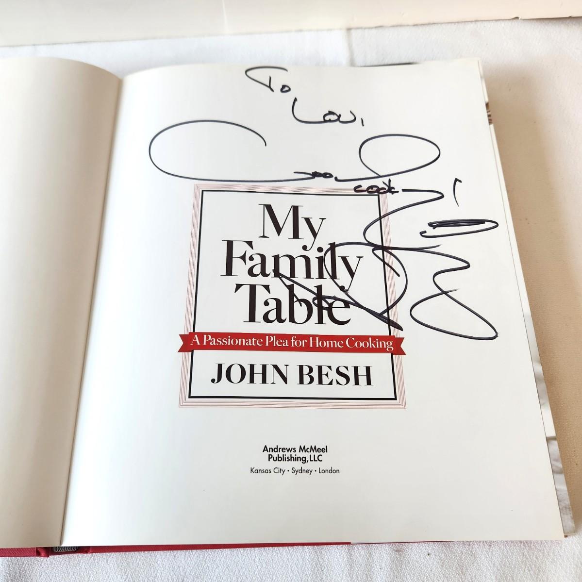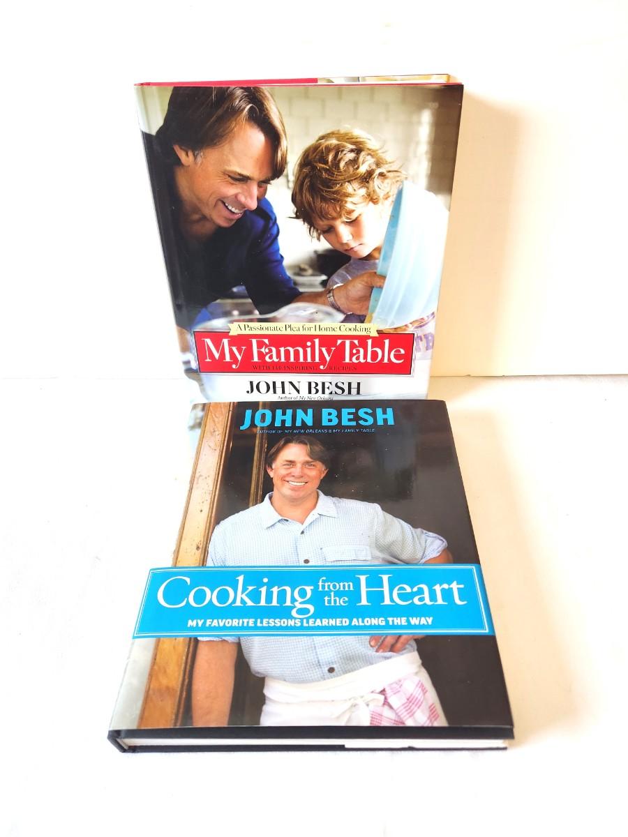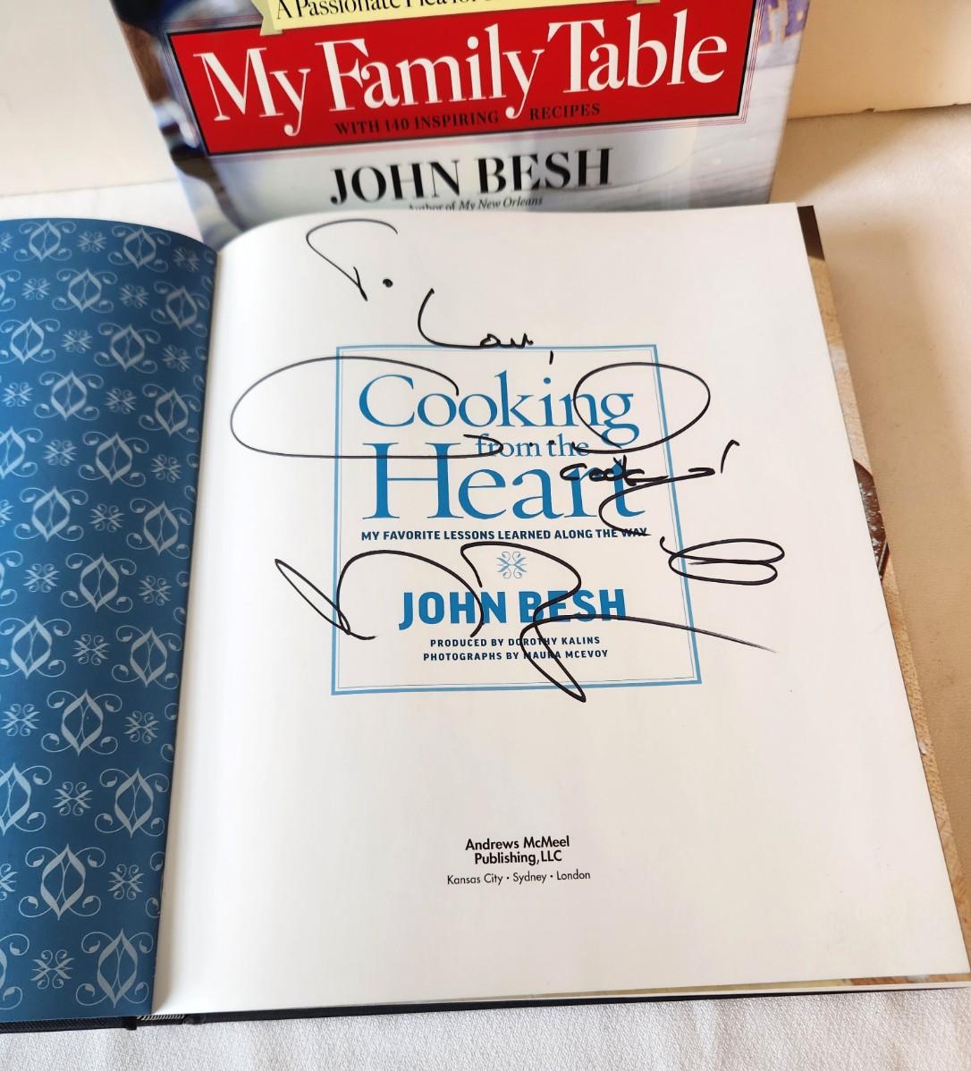 Two hardcover John Besh Cookbooks - "Cooking from the Heart" and "My Family Table" - both autographed. These are large, coffee table type books.