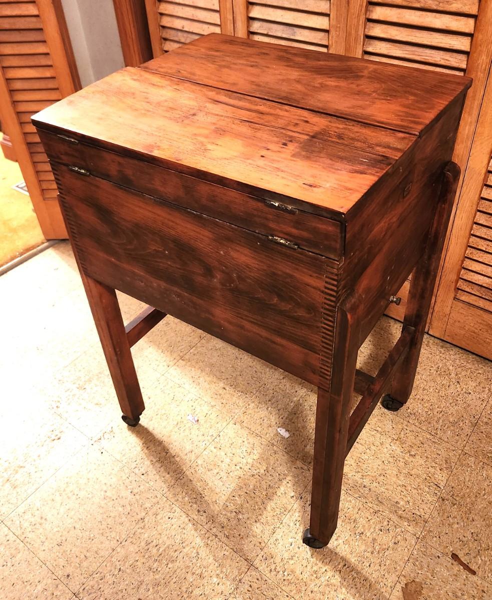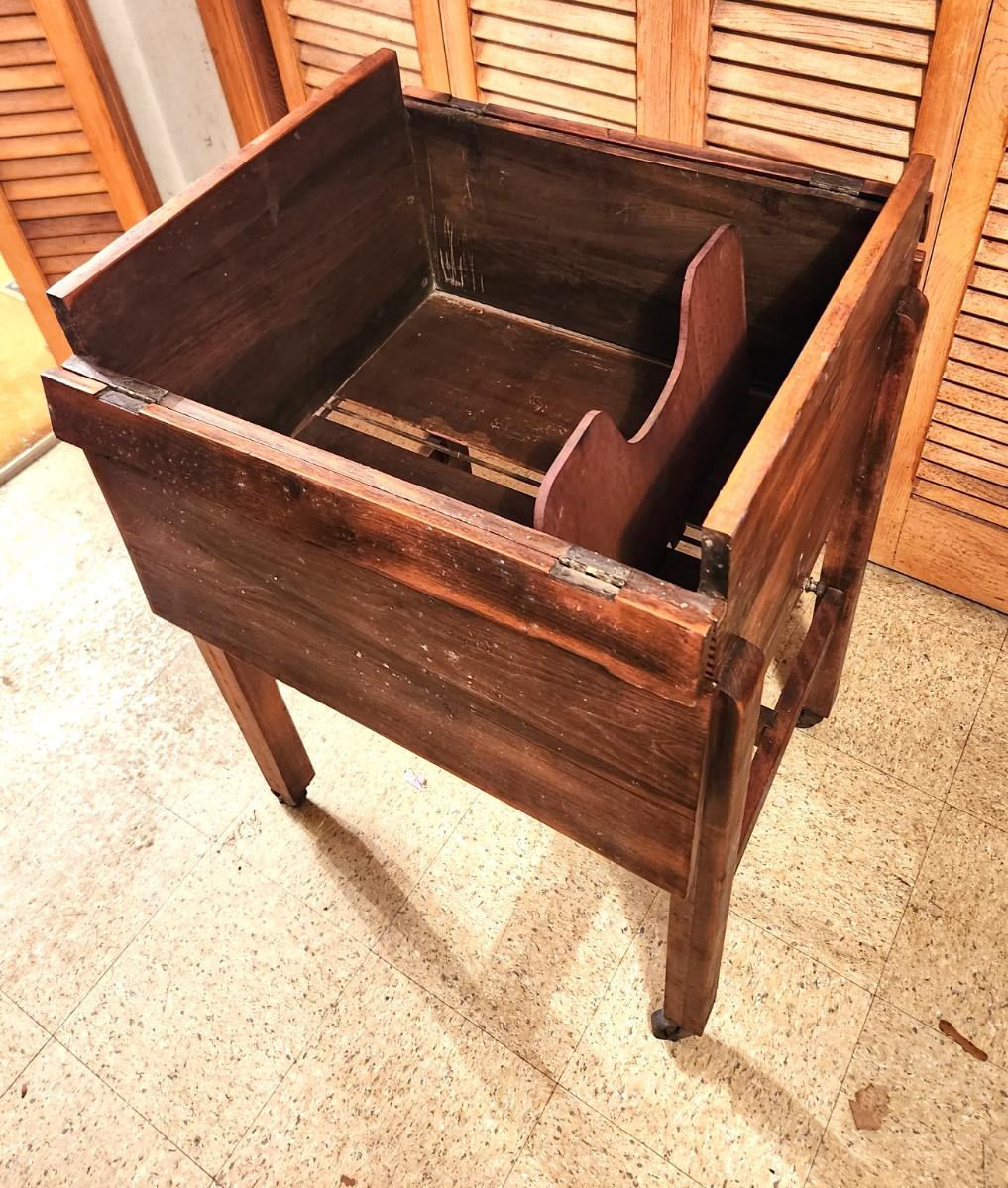 Interesting rolling wooden file cabinet from the Weis Company (small label on the side). 31" tall, 17" x 19". Opens from the top. A versatile piece that could be used for a lot of things. Dates from the 1920's/30's.