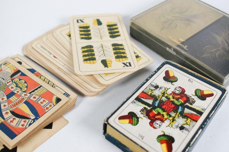 A few decks of vintage playing cards. These are partial sets. **Please read Terms and Conditions before placing a bid. Pick up is Sunday, December 22 from 11am to 3pm or Monday, December 23 from 4pm-7pm in Mantua, NJ. All sales are final. All sales are as is, where is. Please review all photos. Props are not included. Measurements are approximate.