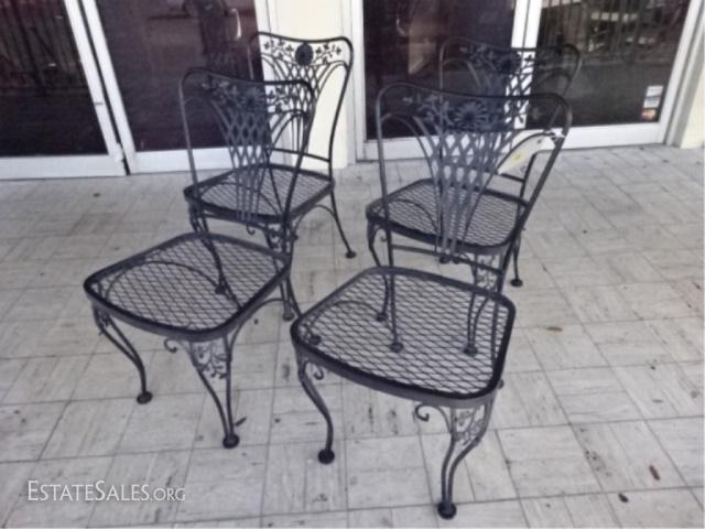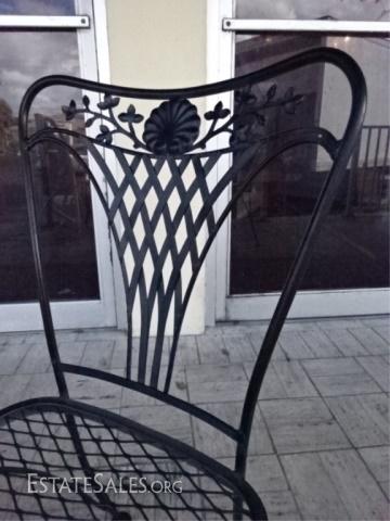 LOT 88: 4 SALTERININI STYLE PATIO CHAIRS, BLACK FINISH METAL WITH FOLIATE DESIGNS, VERY GOOD CONDITION, SKU387.31