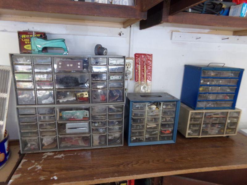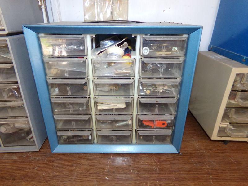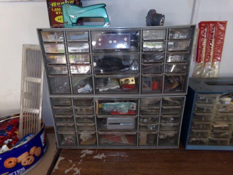 THESE ORGANIZERS ARE FILLED WITH MISCELLANEOUS HARDWARE. ANYTHING ON TOP OF ORGANIZERS IS ALSO INCLUDED IN LOT
