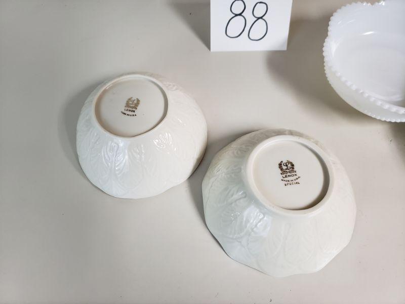 2 off white bowls are Lenox. One has a gold rim other bowl has silver rim.