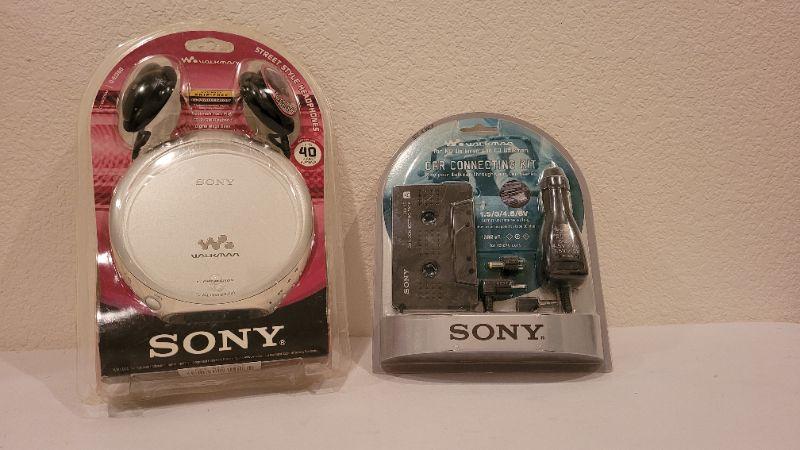 Lot 88: Vintage NEW Sony Bundle - CD Walkman and Car Connection Kit