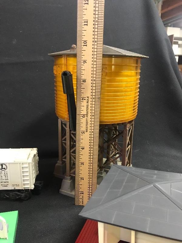 Lionel #38 Operating Water Tower #6-14086. and a Lionel 3472 Milk Car w/Platform, and a switch house. Please see all pictures for content of the lot, condition of the lot, and measurements if taken. Pictures are the best representation of the items listed and items are untested unless indicated in description. Thank you for looking and have fun bidding!