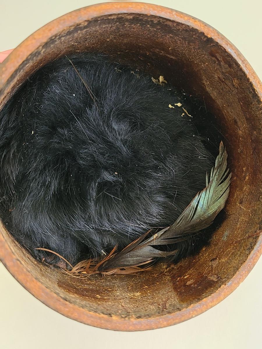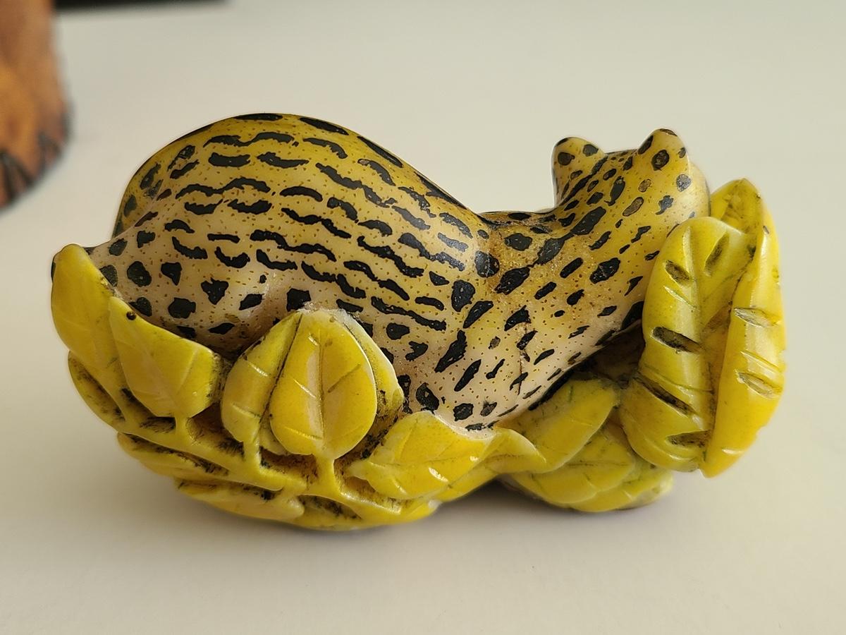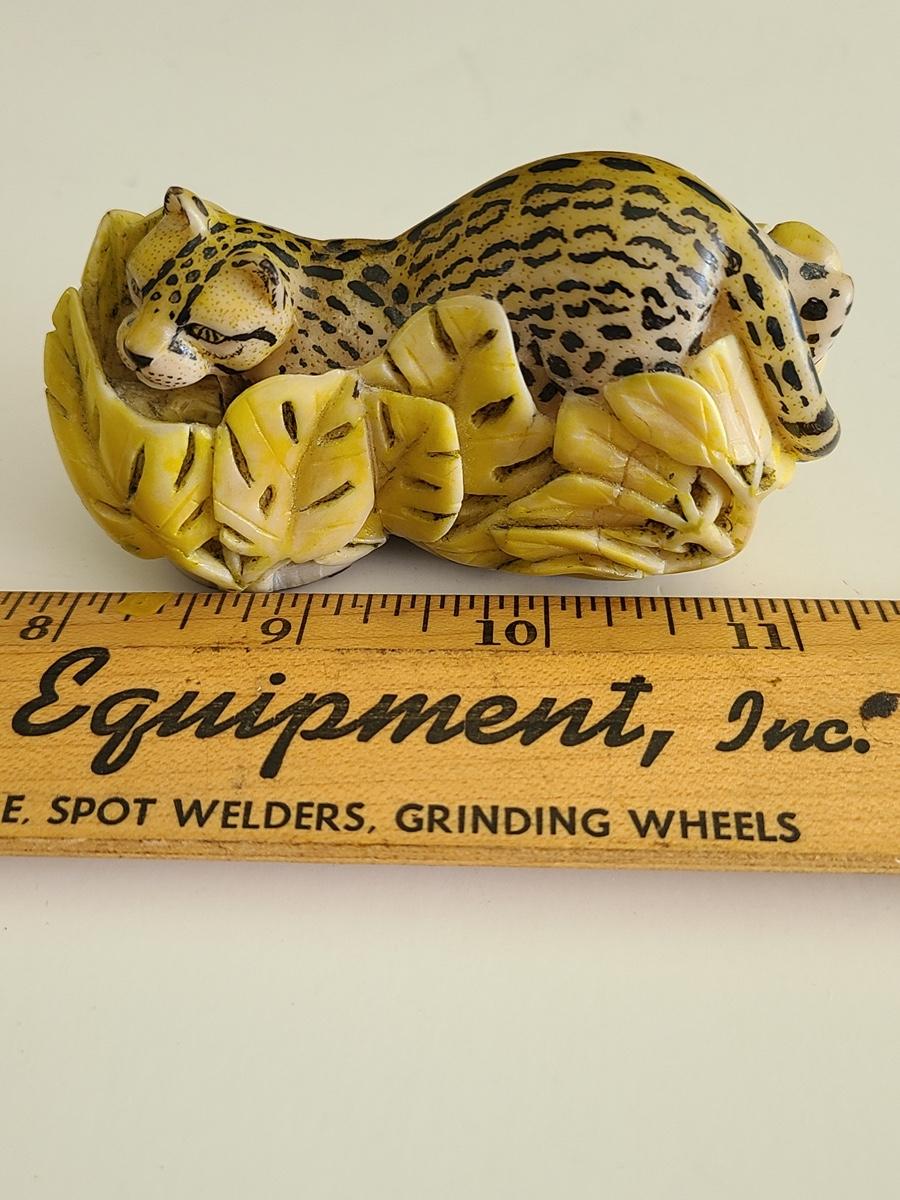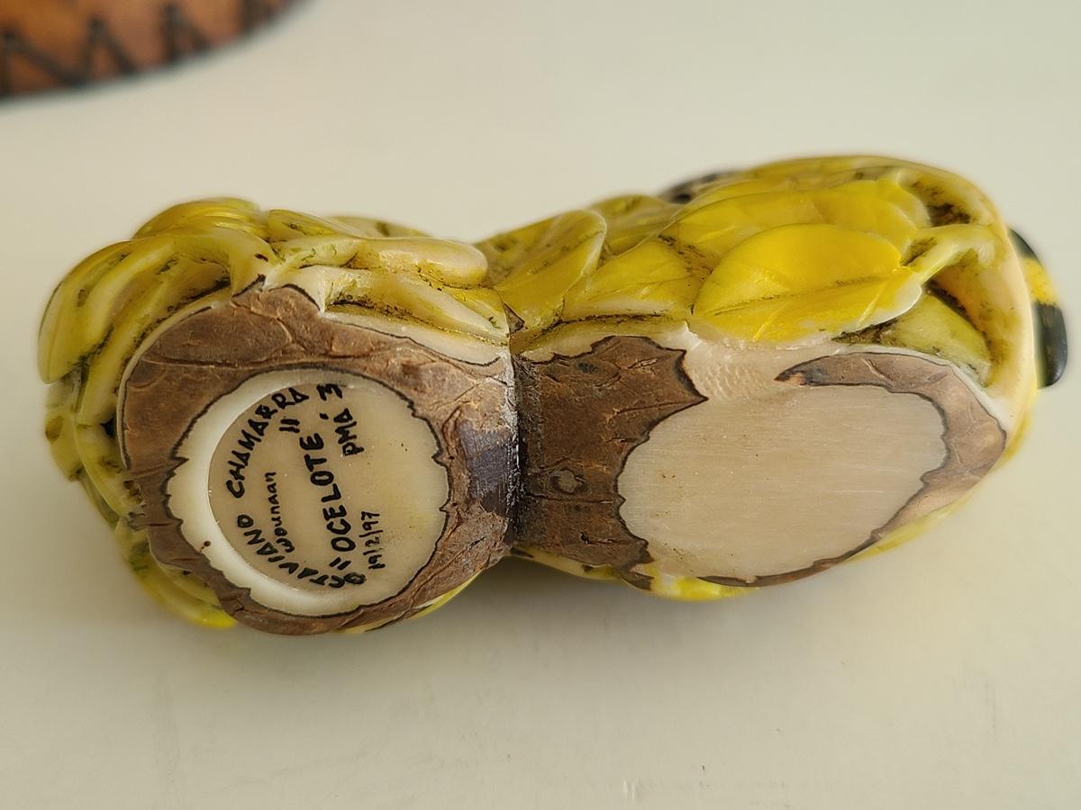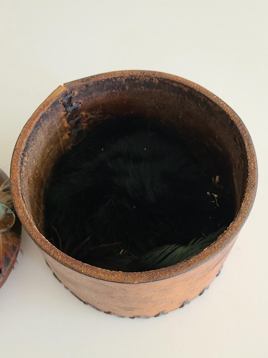 Unique works of handmade arts including a carved from bone ocelot, Rwanda Path to Peace Basket, and a leather and feather trinket container lined in fur. These are pieces are art, please see the pictures for the details and craftsmanship! Please see all pictures for content of the lot, condition of the lot, and measurements if taken. Pictures are the best representation of the items listed and items are untested unless indicated in description. Thank you for looking and have fun bidding![