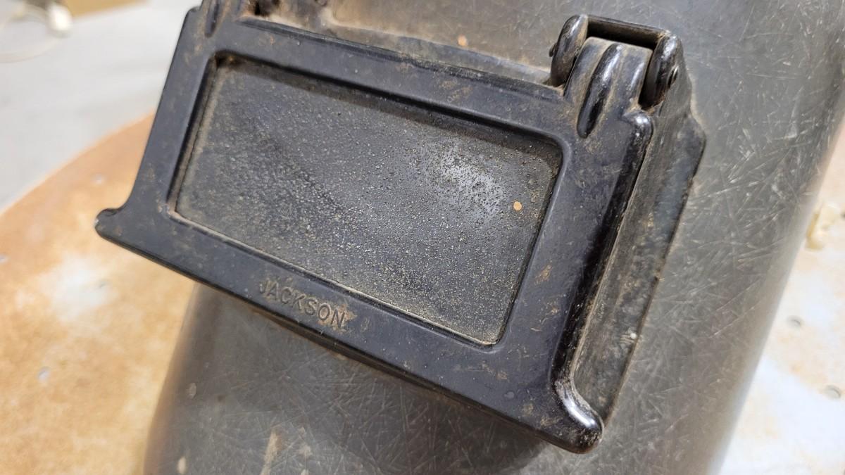 Lot 88: Vintage JACKSON Black Welding Helmet w/ Flip Shade View