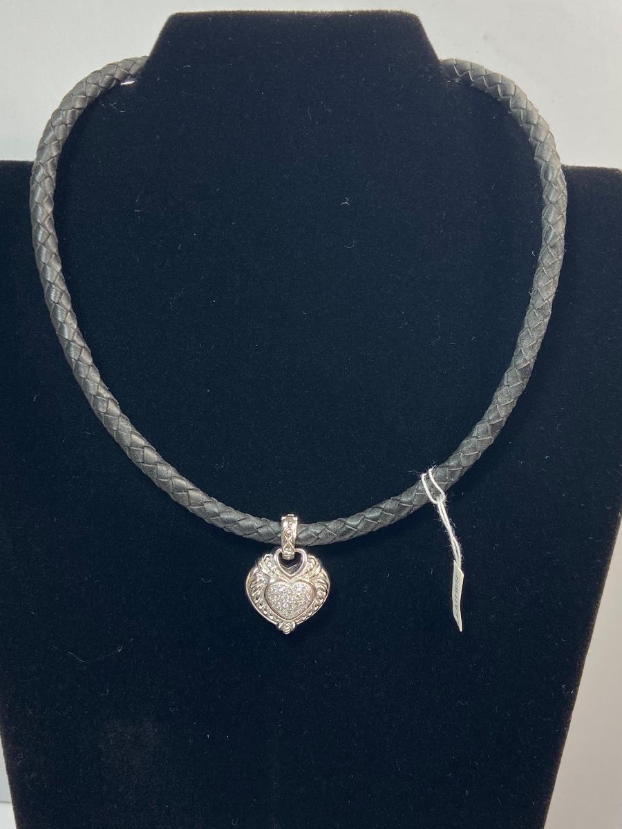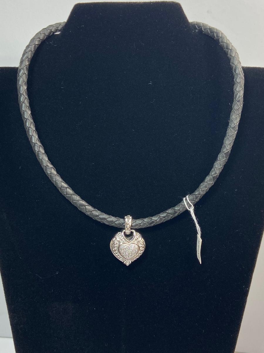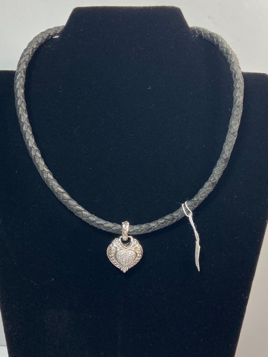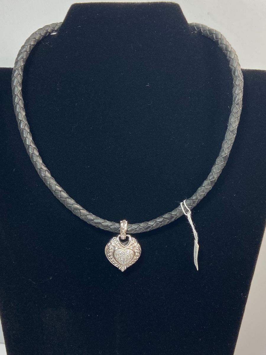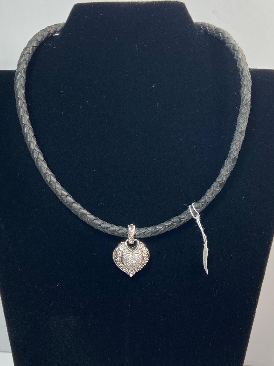 Lot 88: HSN Sterling Heart w/Leather Cord Necklace