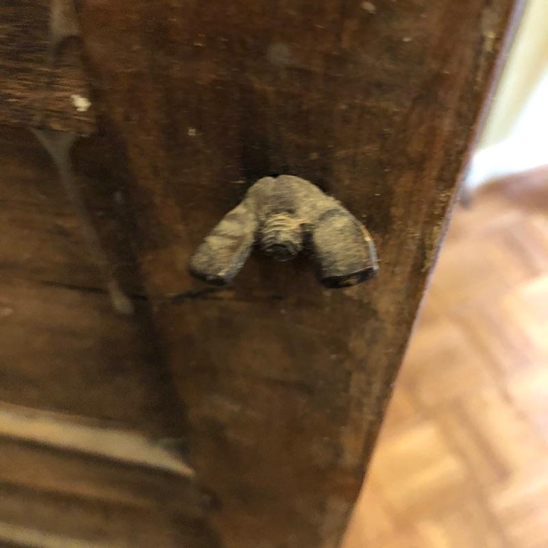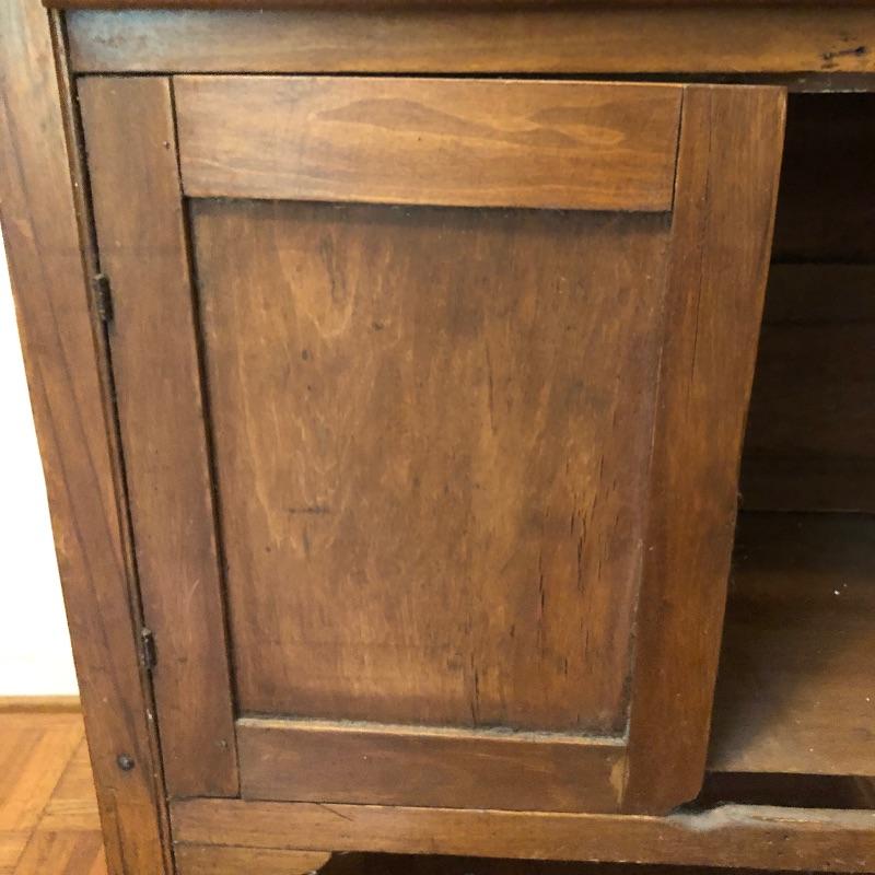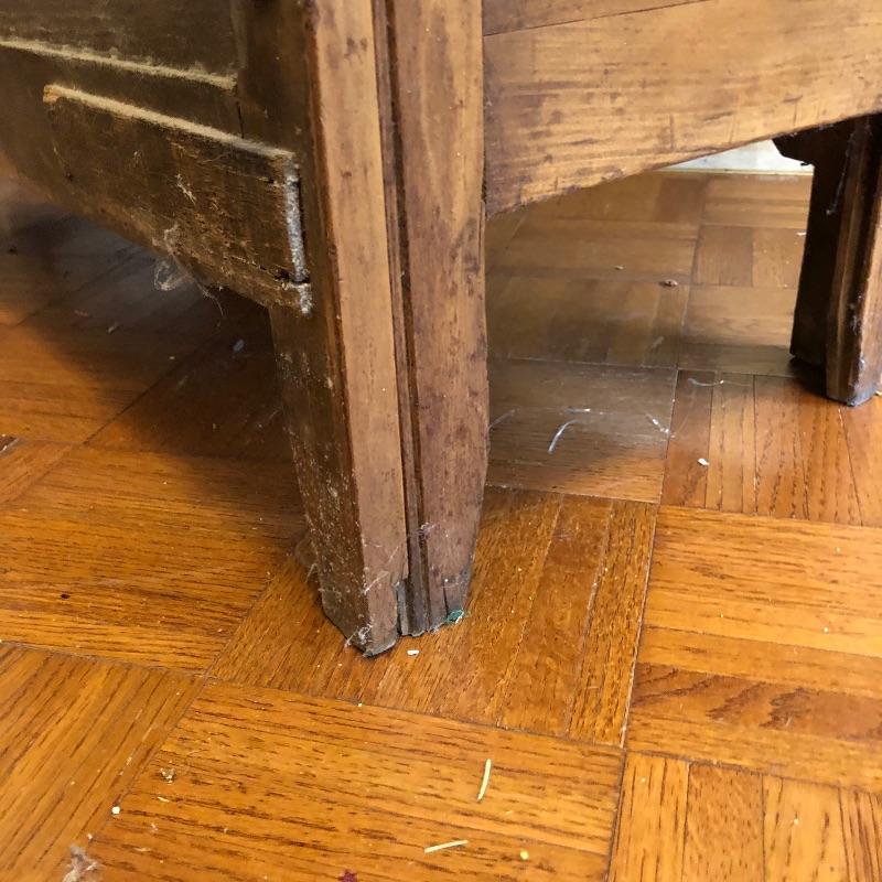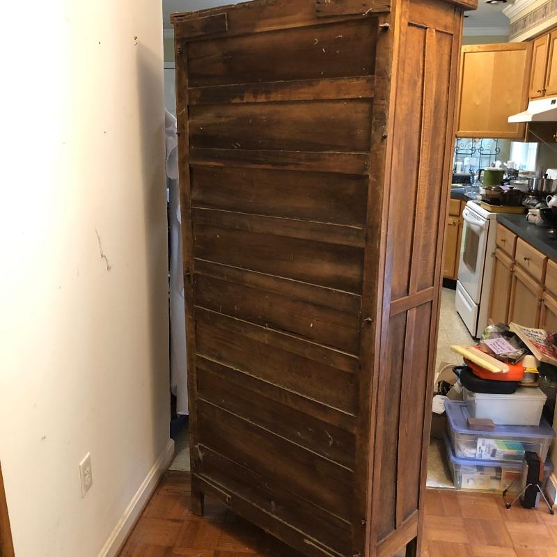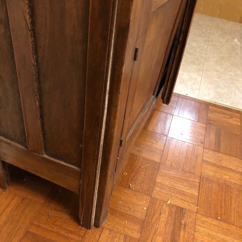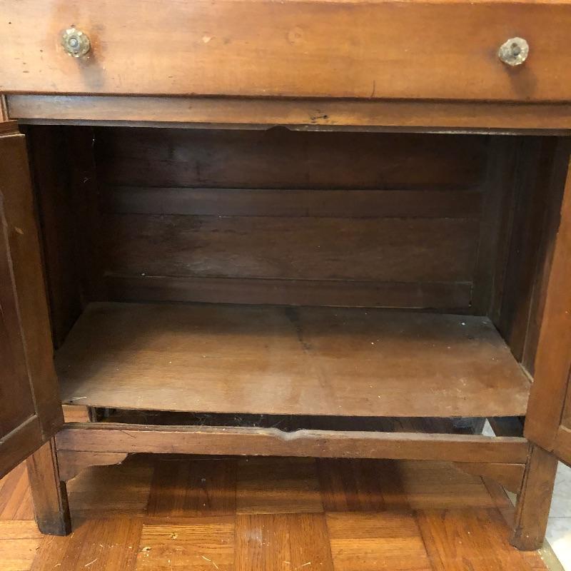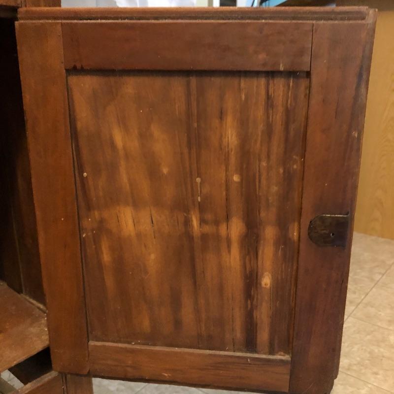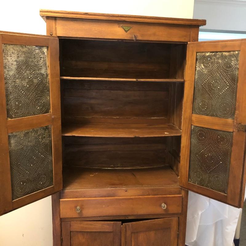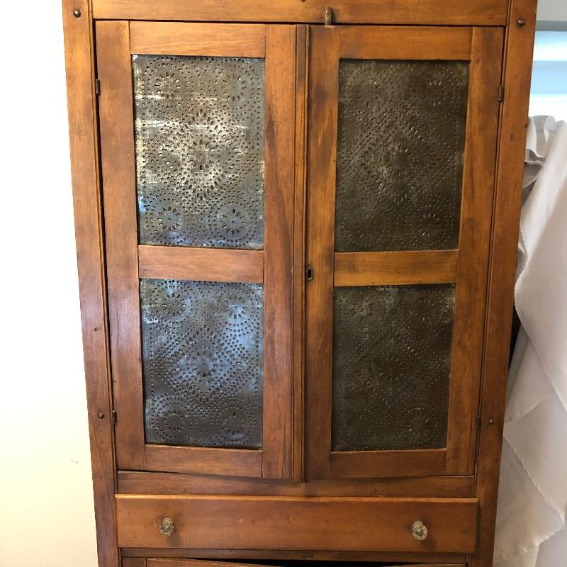A very special find here with this gorgeous Acme pie safe. This Tennessee made piece is charmingly wonky “˜as is’, but could do with some reinforcing to make it sturdy enough to be used for storage; this will also help with doors and drawer fitting more tightly. Any work done will be well worth the effort as this gorgeous antique will look charming in any room and they are not easy to find. One drawer and two cabinets make up this piece that measures 14” x 34” x 72”.