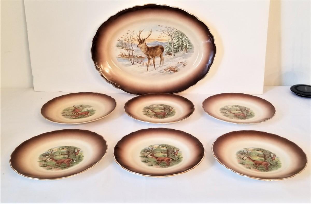 Lot #88  Antique Wild Game China Set - Platter/plates