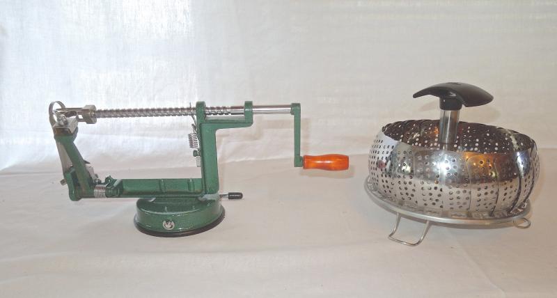 12" long suction cup apple corer never used and a nice metal steamer with handle.
