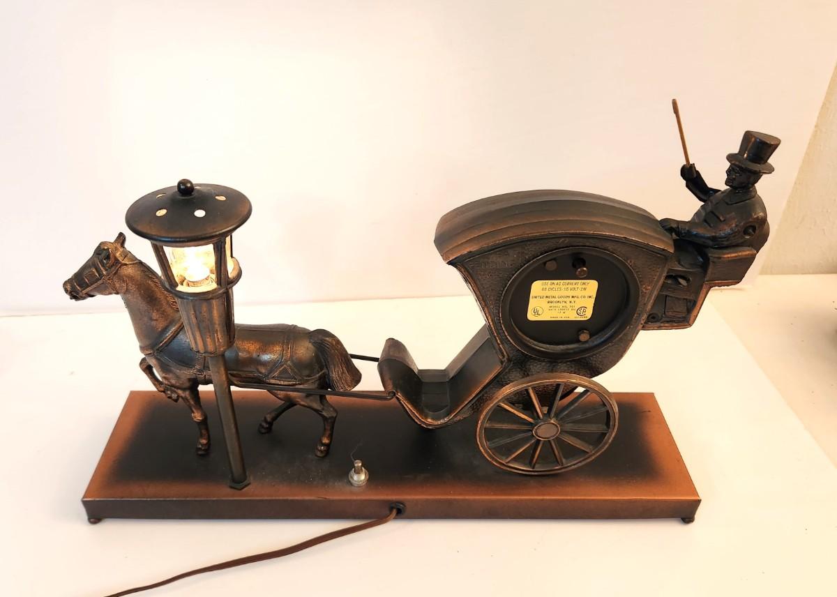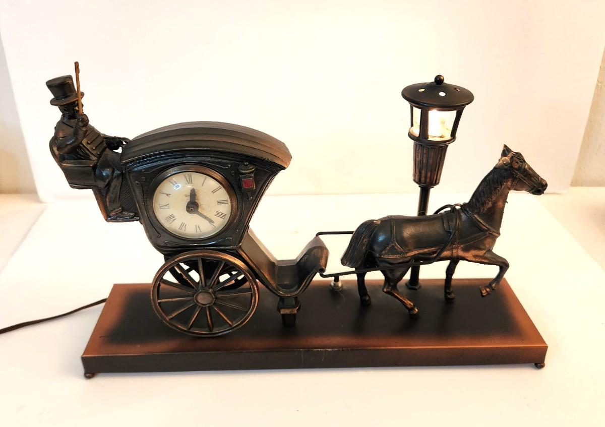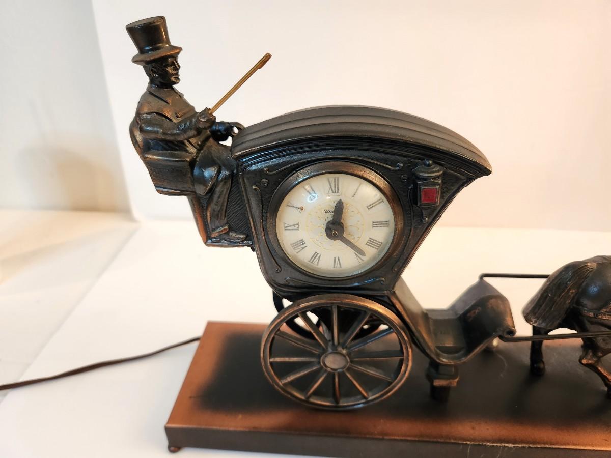 Lot #88 Fantastic Vintage Mantle Clock - Horse & Carriage - Mechanical - works!