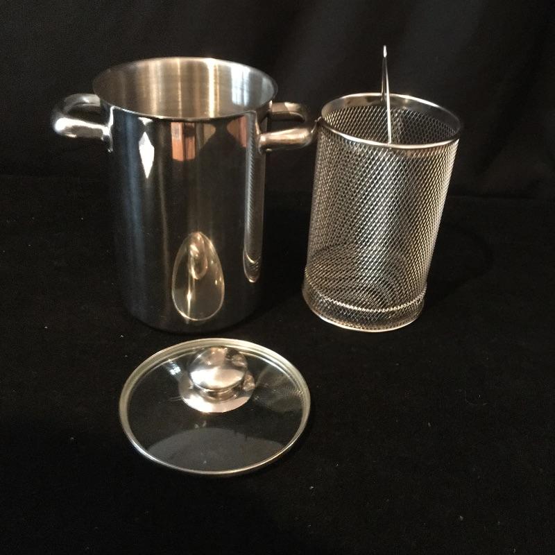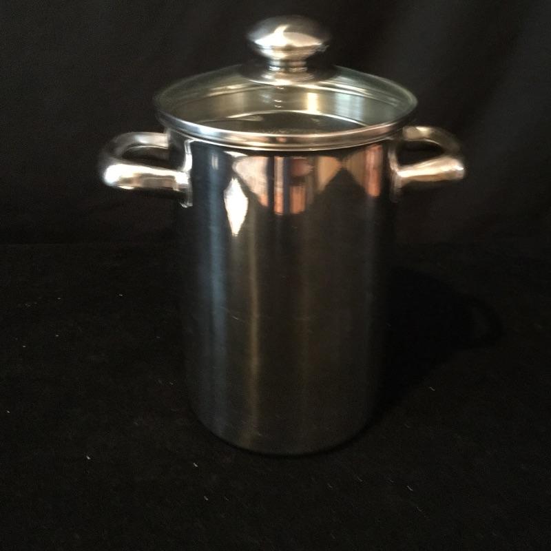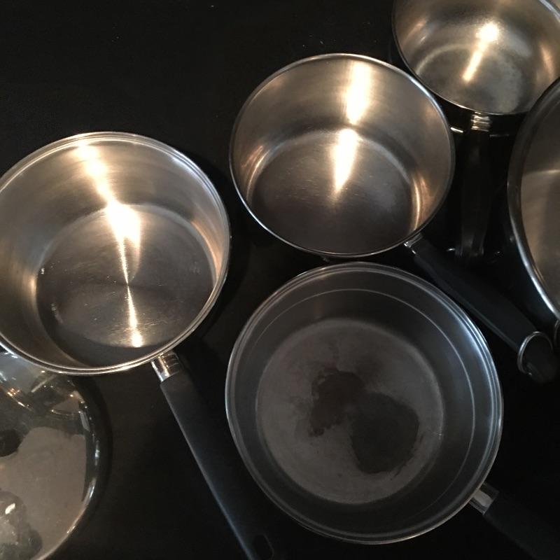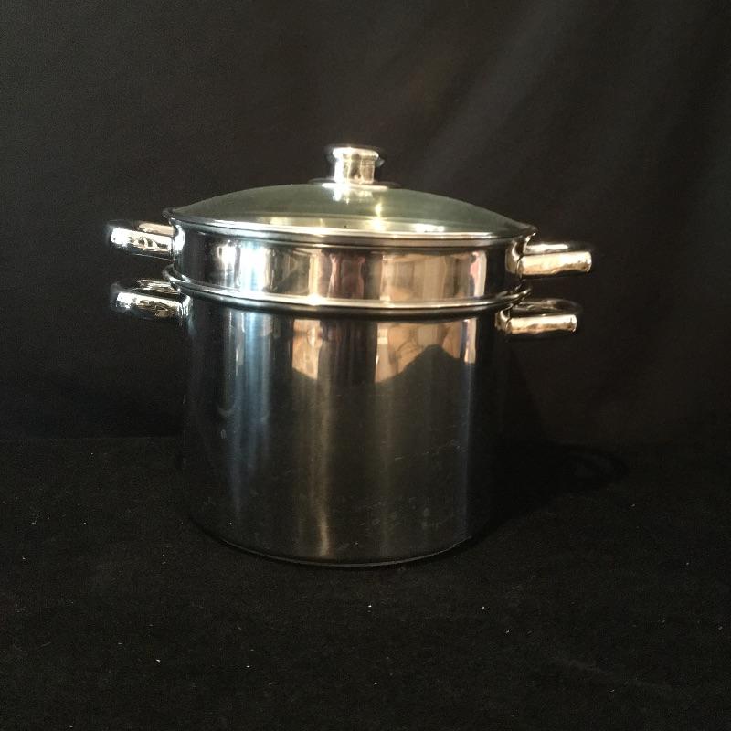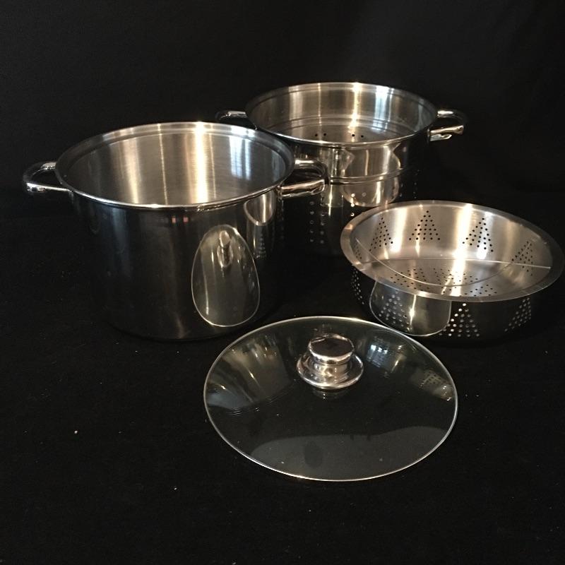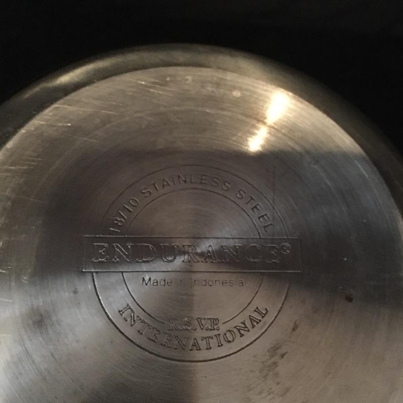 Four double boilers. One is Farberware, one is Endurance and the other two are unmarked. Largest double boiler measures 10”D x 9”.
