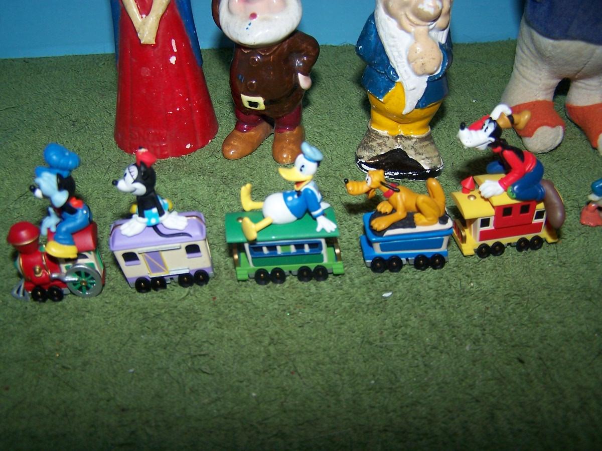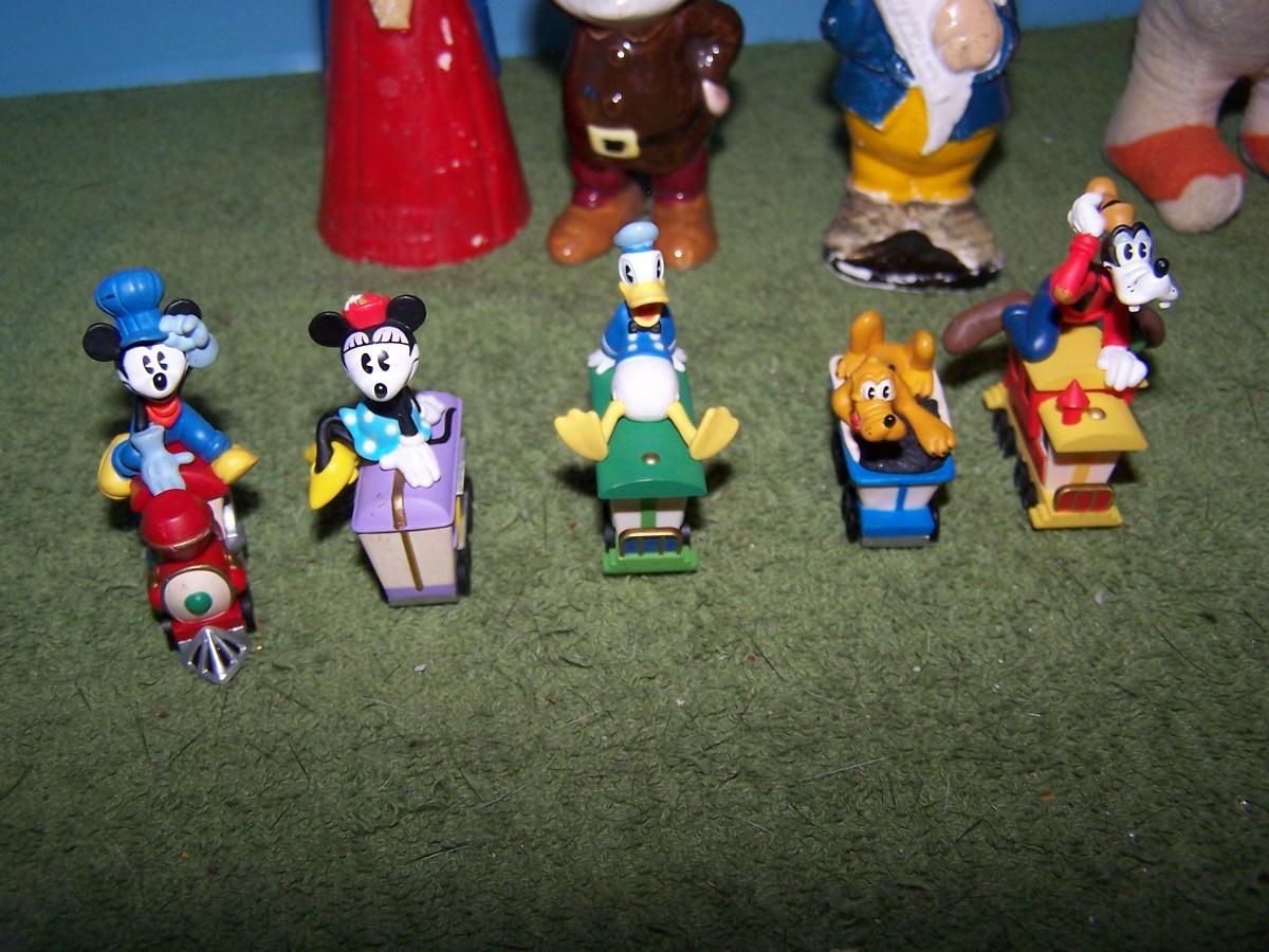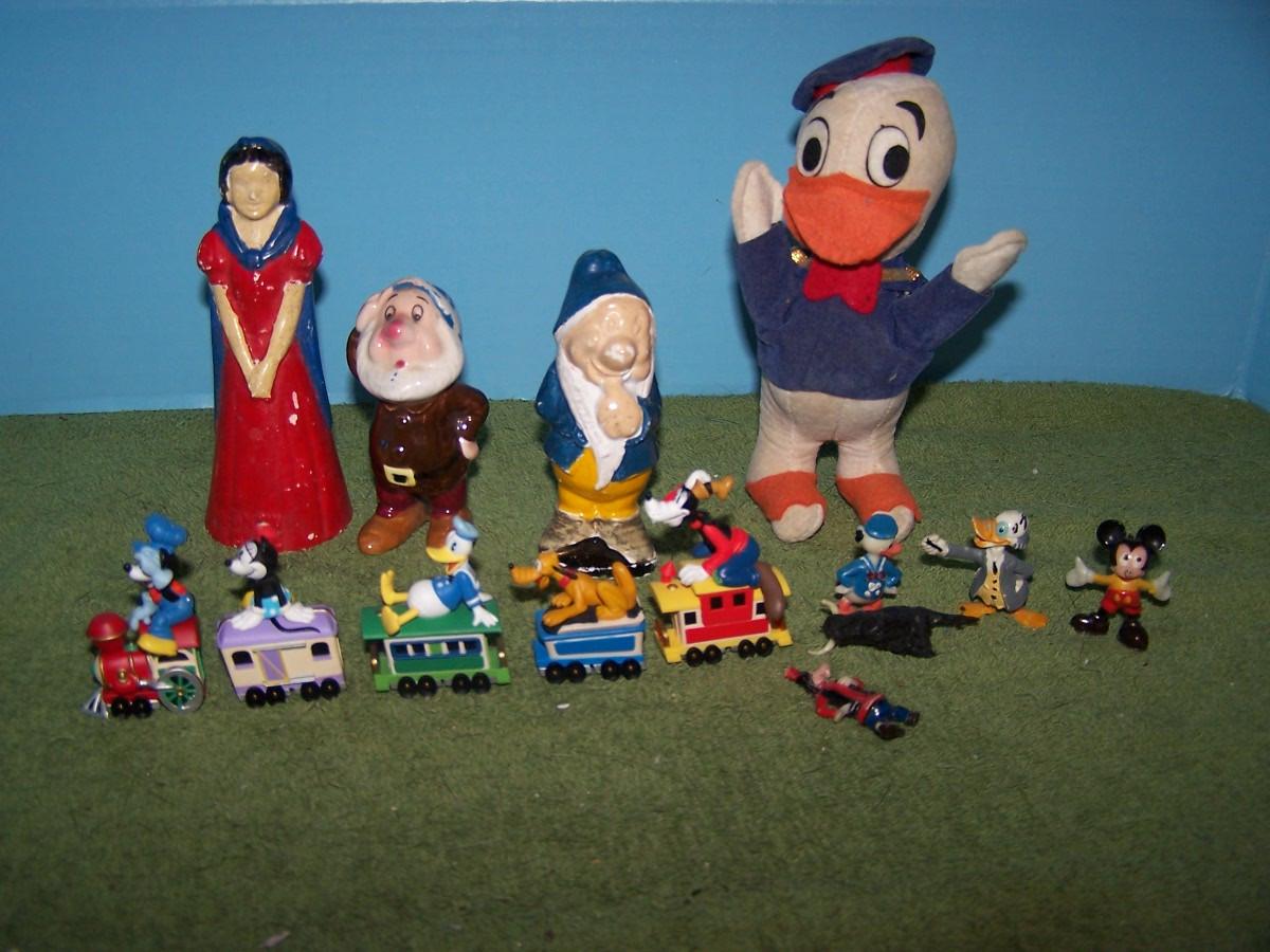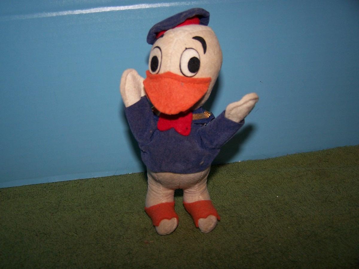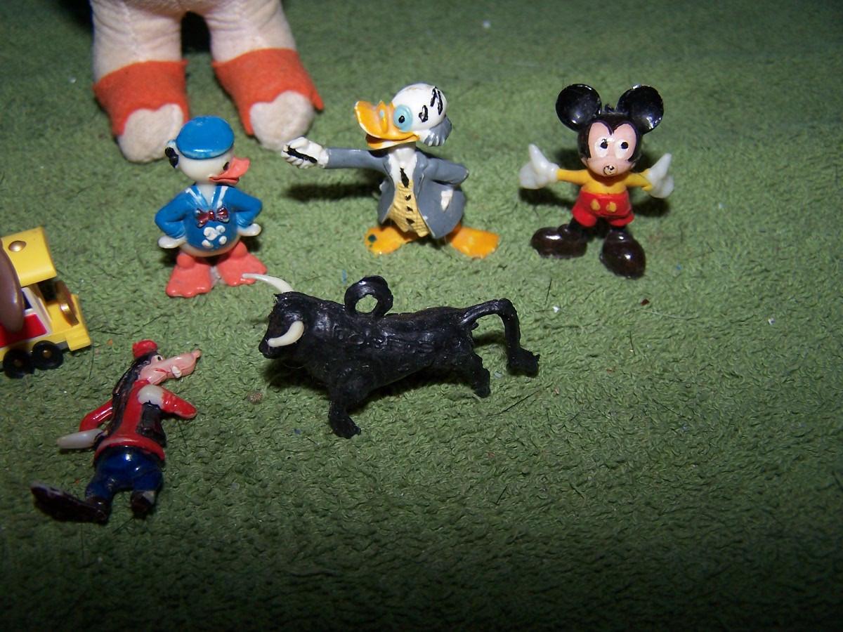 THESE ARE GREAT VINTAGE DISNEY ITEMS! CLOTH DONALD DUCK IS 5 3/4'' TALL. SMALL PLASTIC GOOFY HAS A BROKEN FOOT.. REST HAS SOME WEAR..