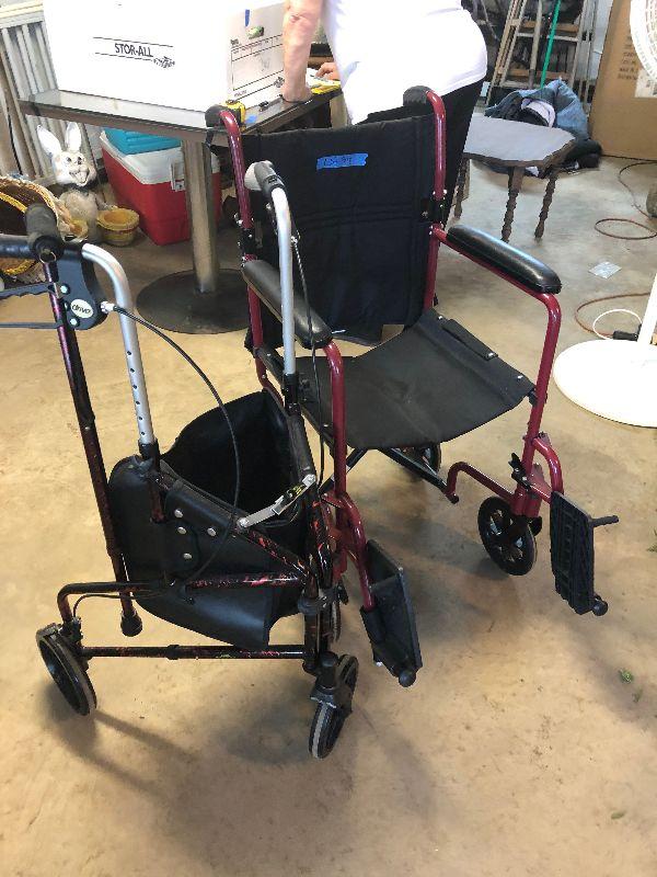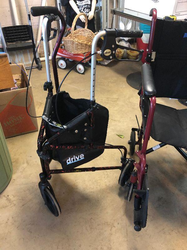 Drive 3 wheel walker Welby transport chair and cane.