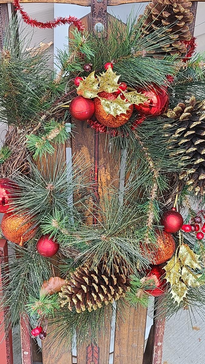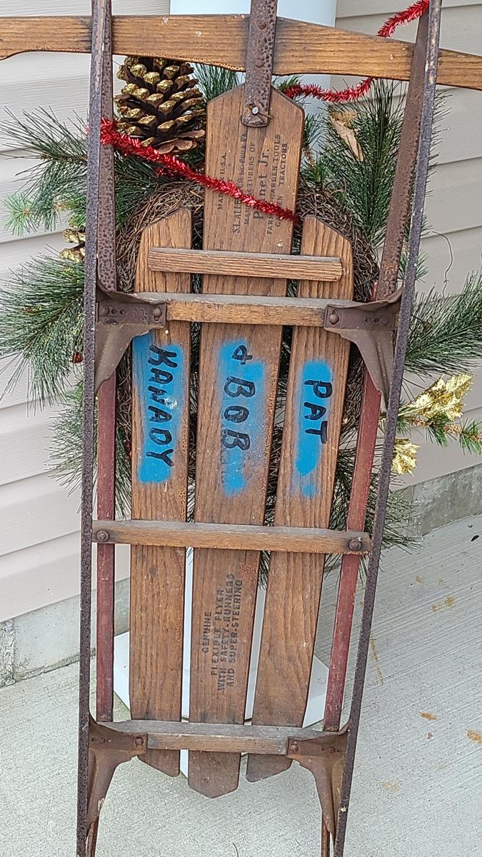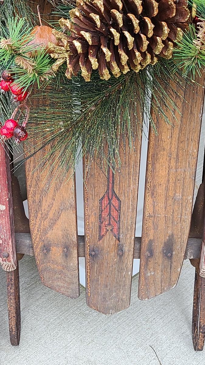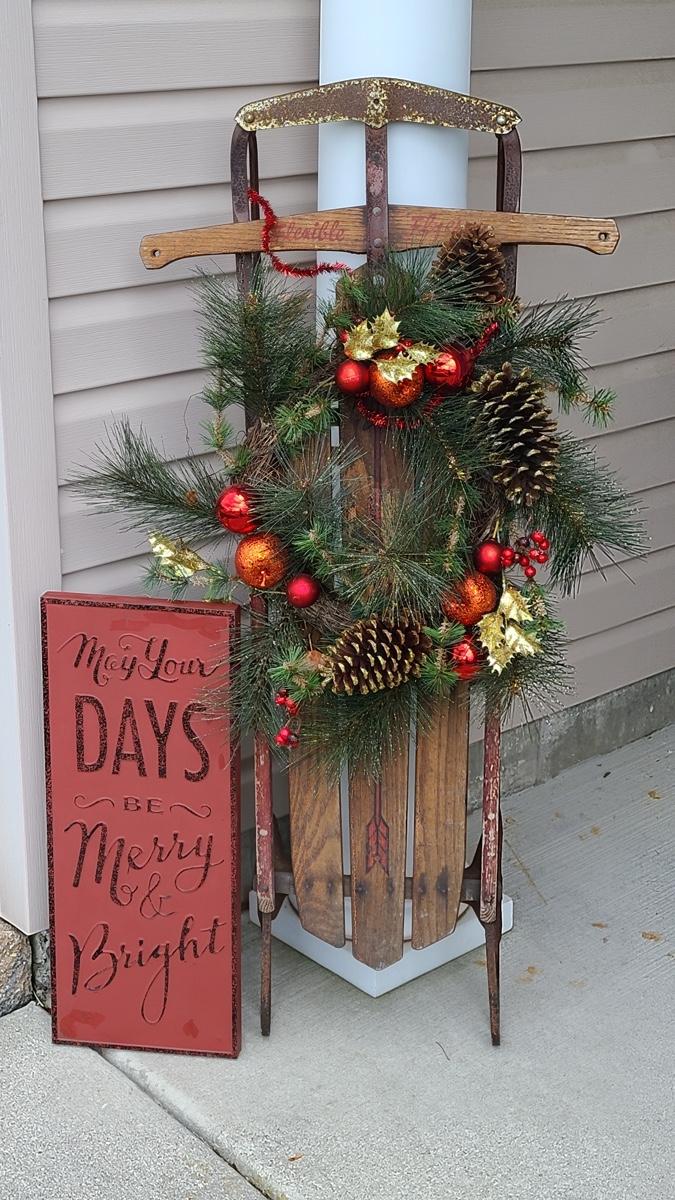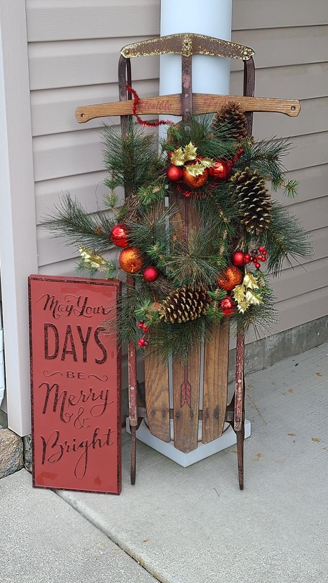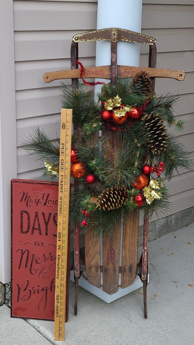 Lot 88: Holiday Decor: Antique Sled and Holiday Sign