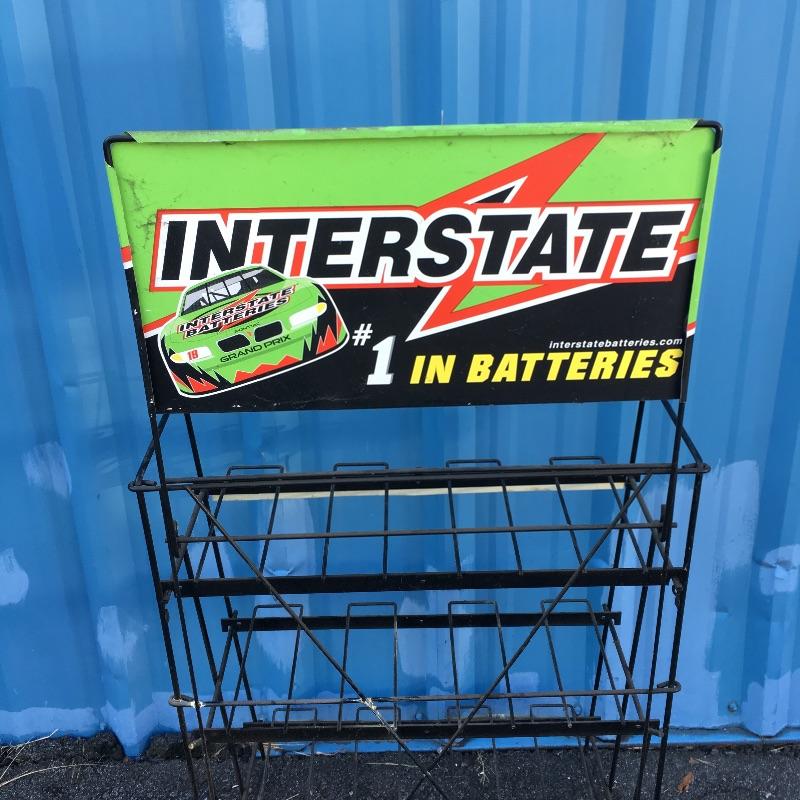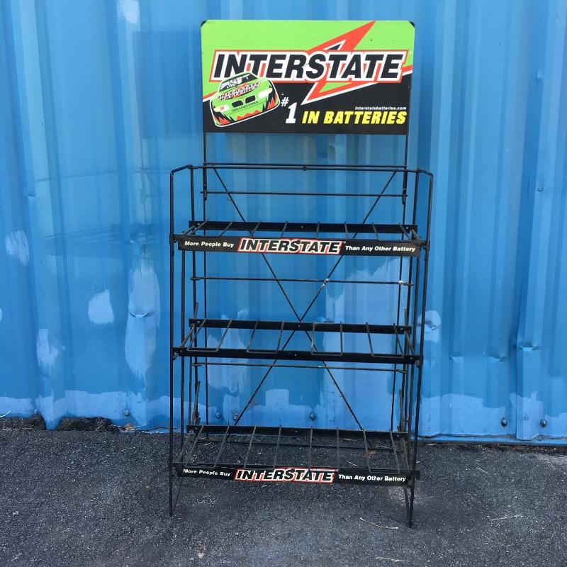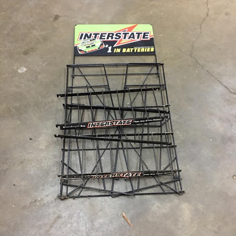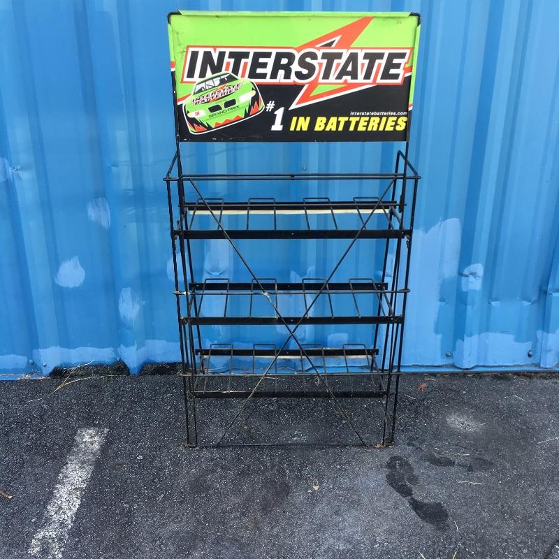 Interstate battery rack with three shelves and comes apart and folds for easy transport. A great rack for all you car folks out there for use in your garage or she shed or man cave. Rack measures 15” x 25” x 49.5”.