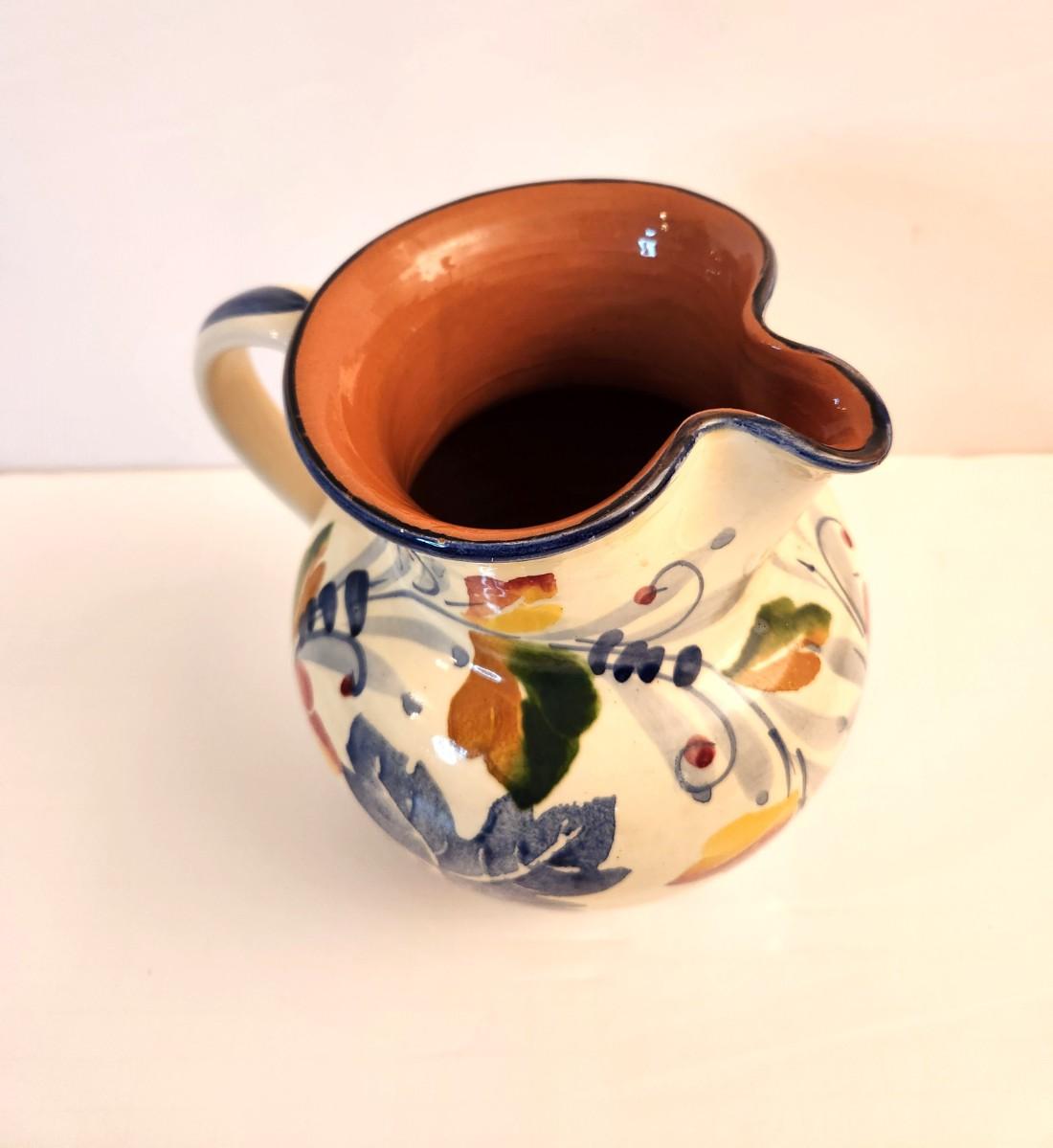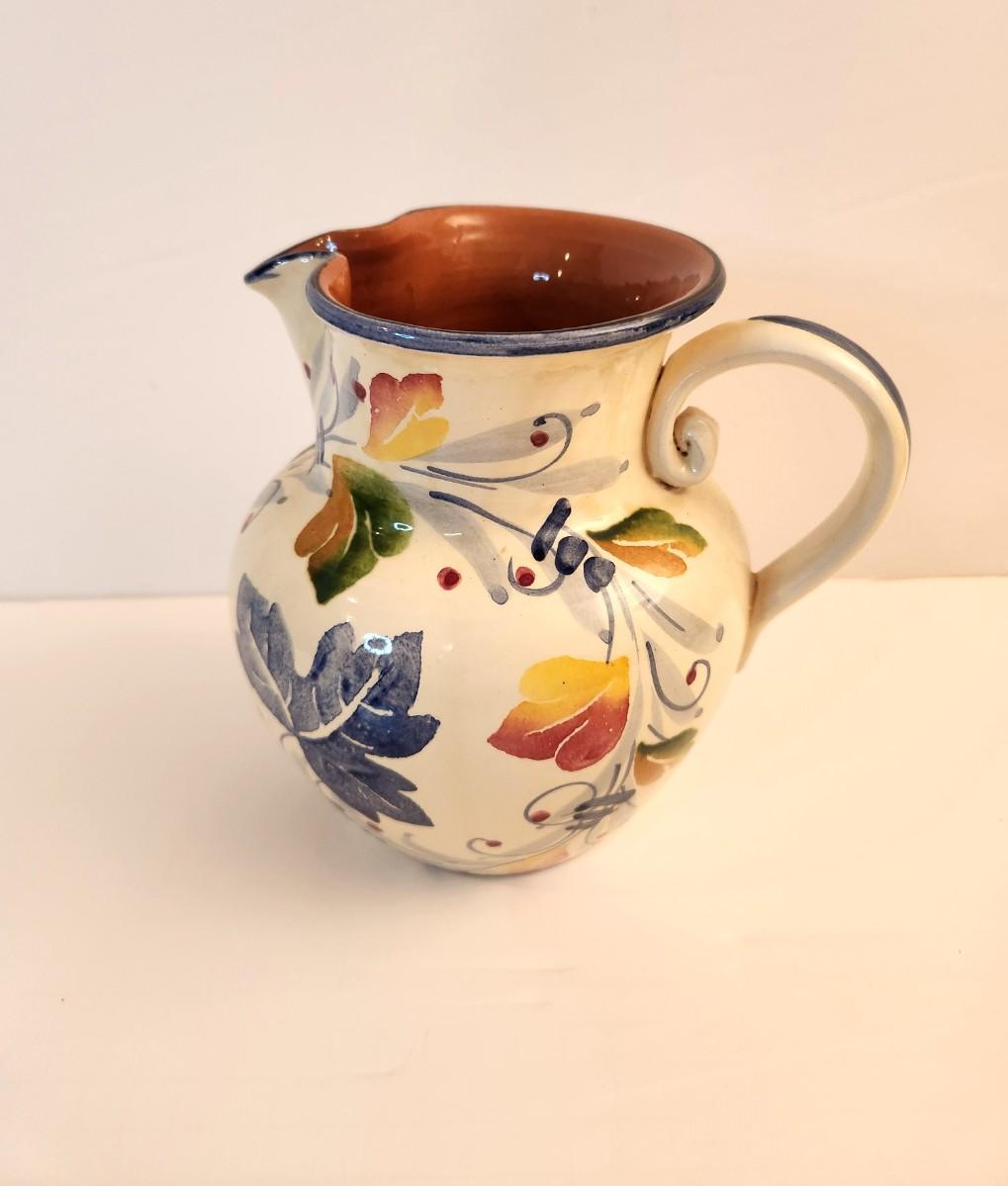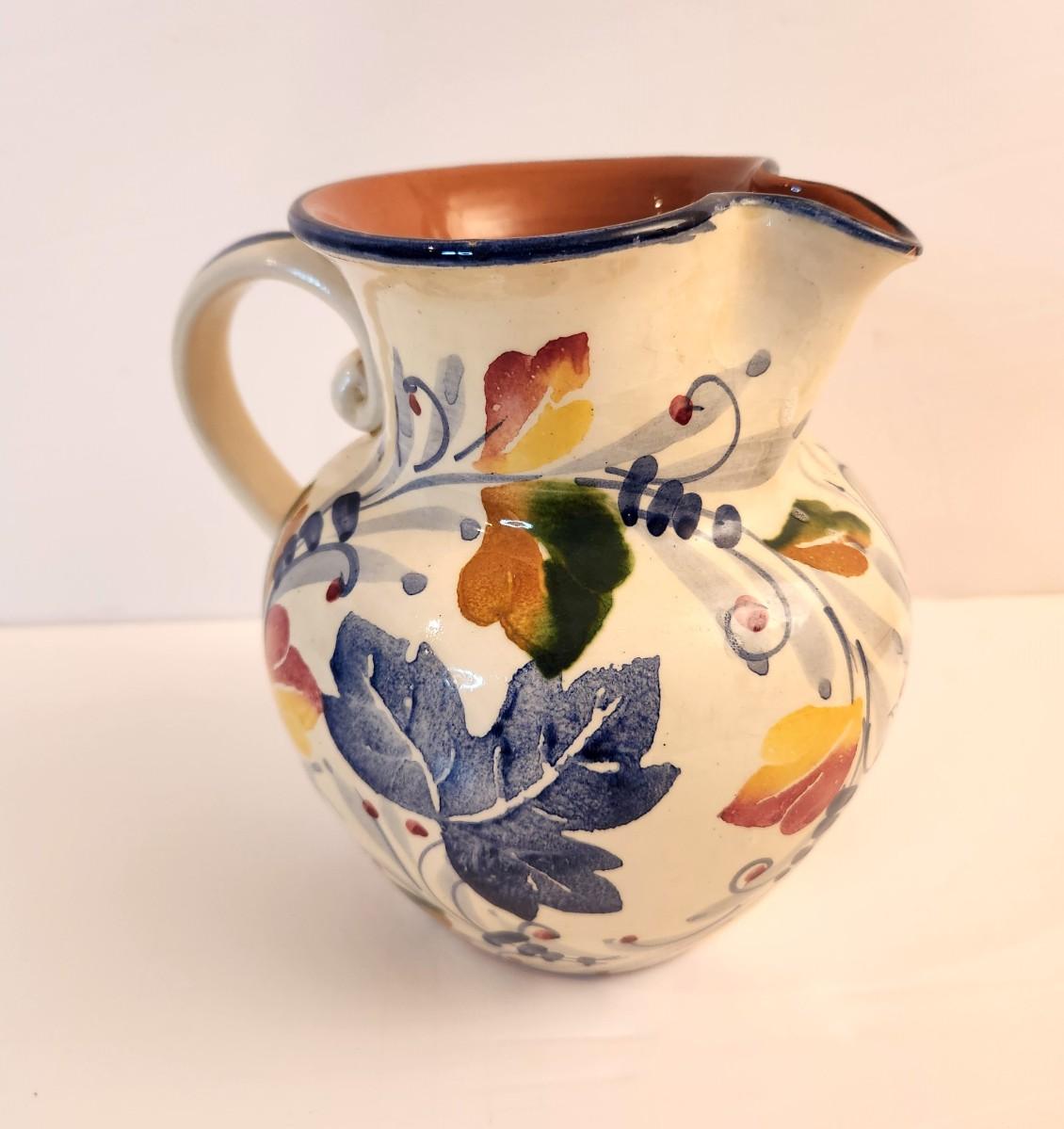 Nice Italian Pottery PItcher s/Fall leaf motif. 7.5" tall - good condition.
