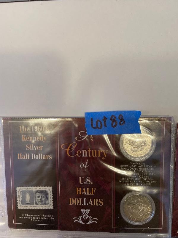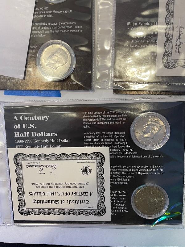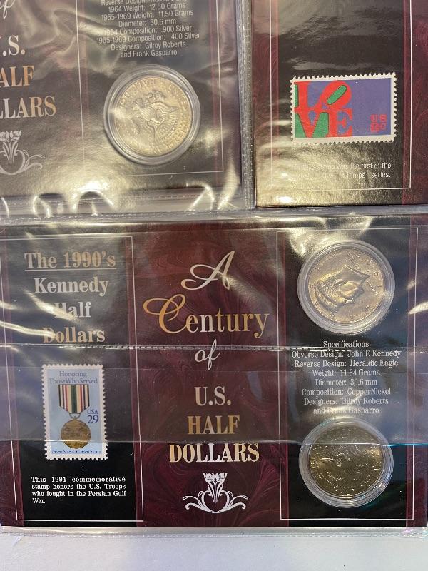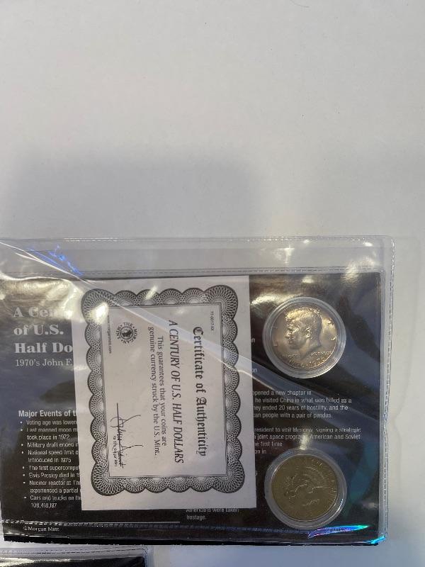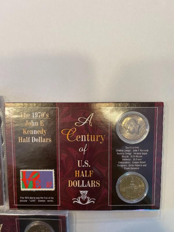 The 1960s Kennedi silver half dollars, the 1970s John F Kennedy half dollars, the 1990s Kennedy half dollars, all three includes stamps and COAs.