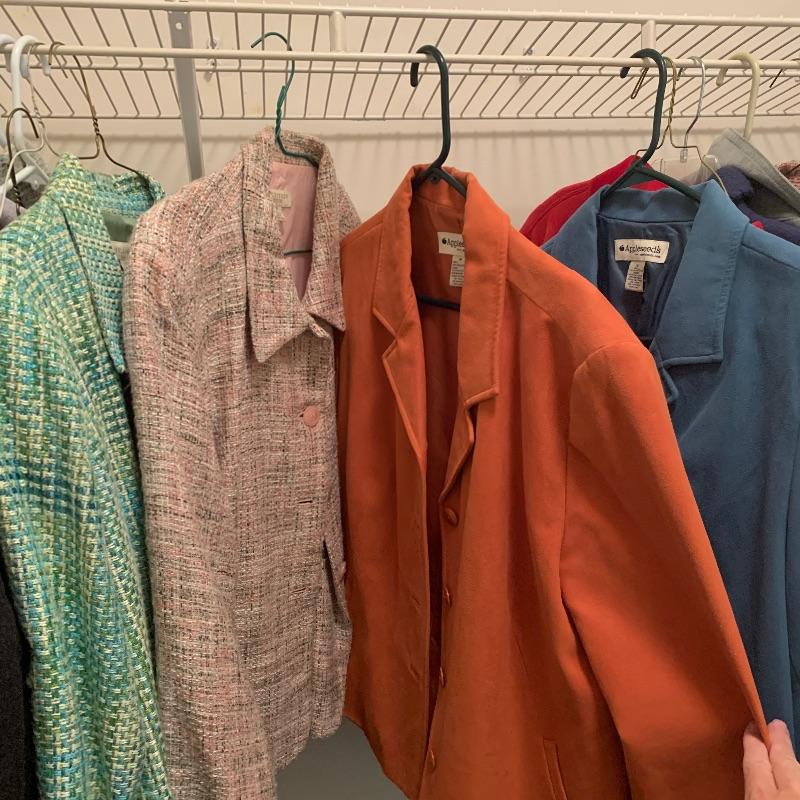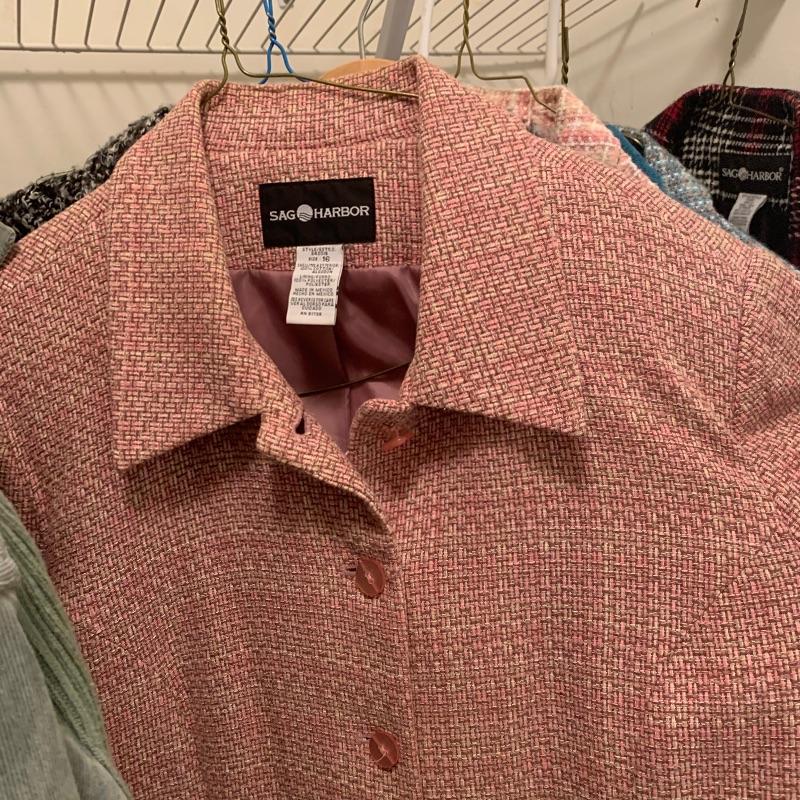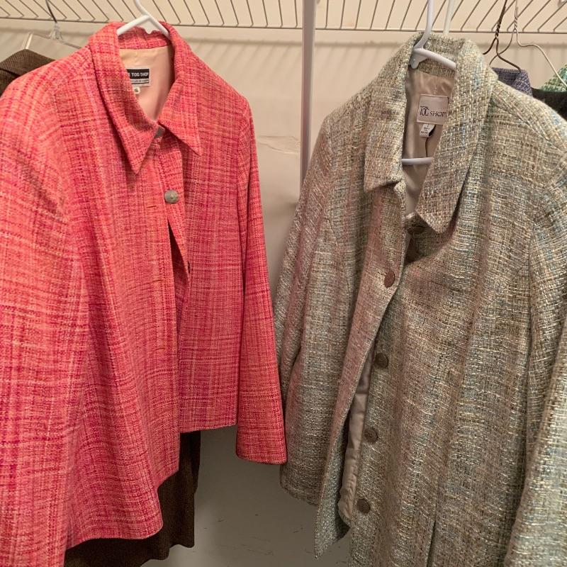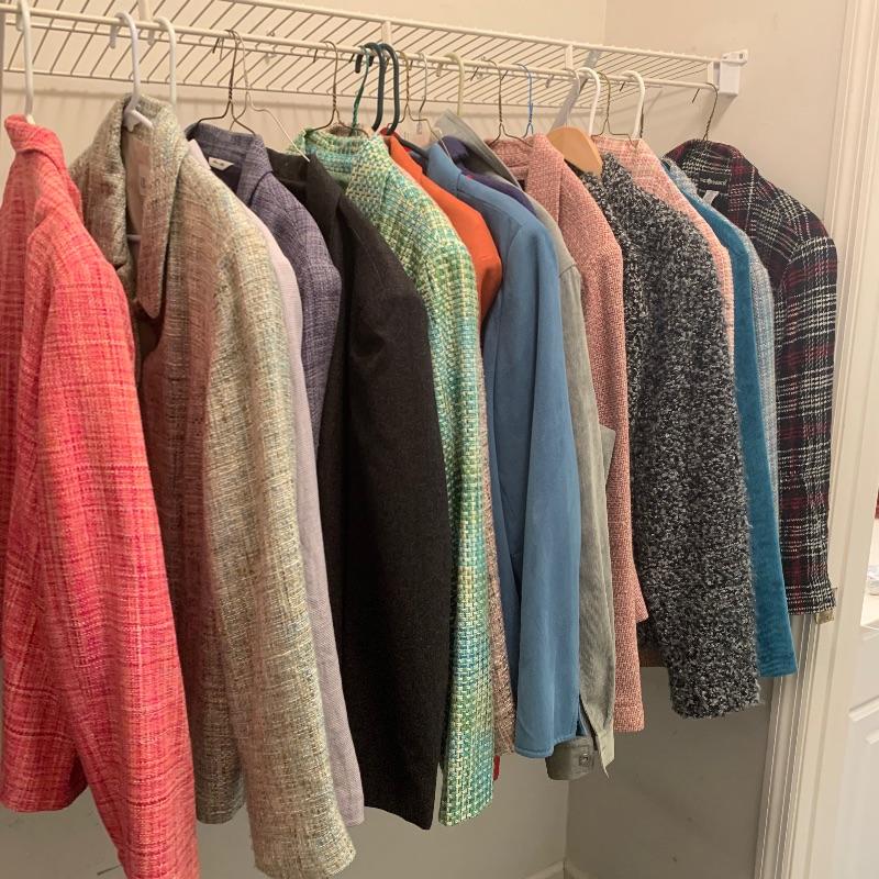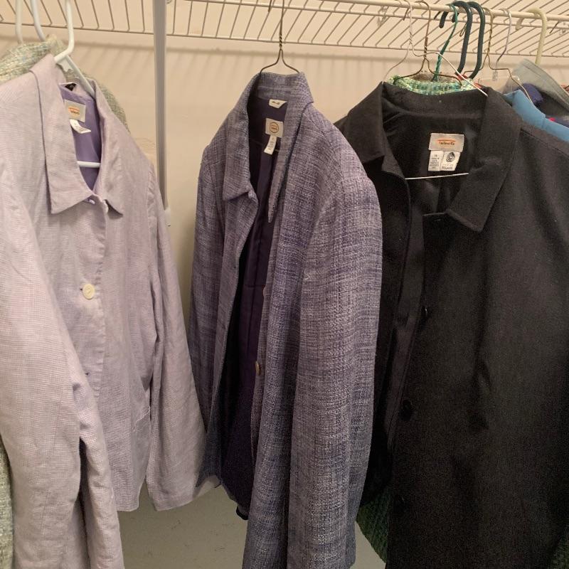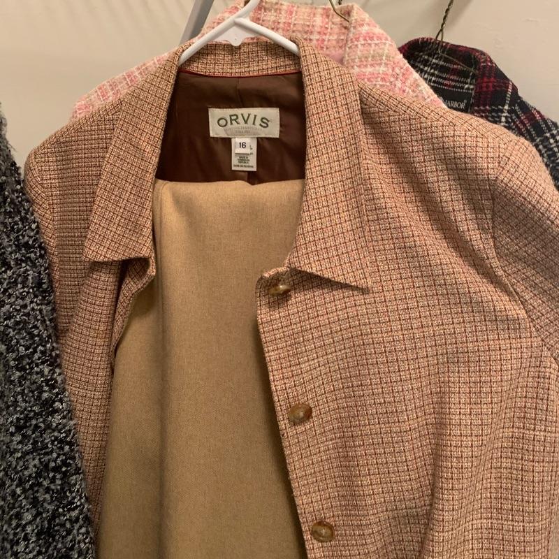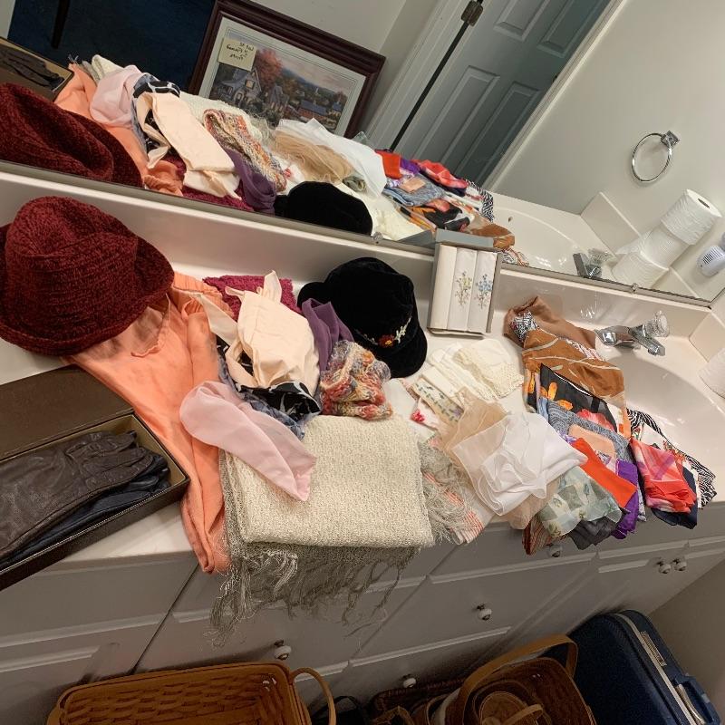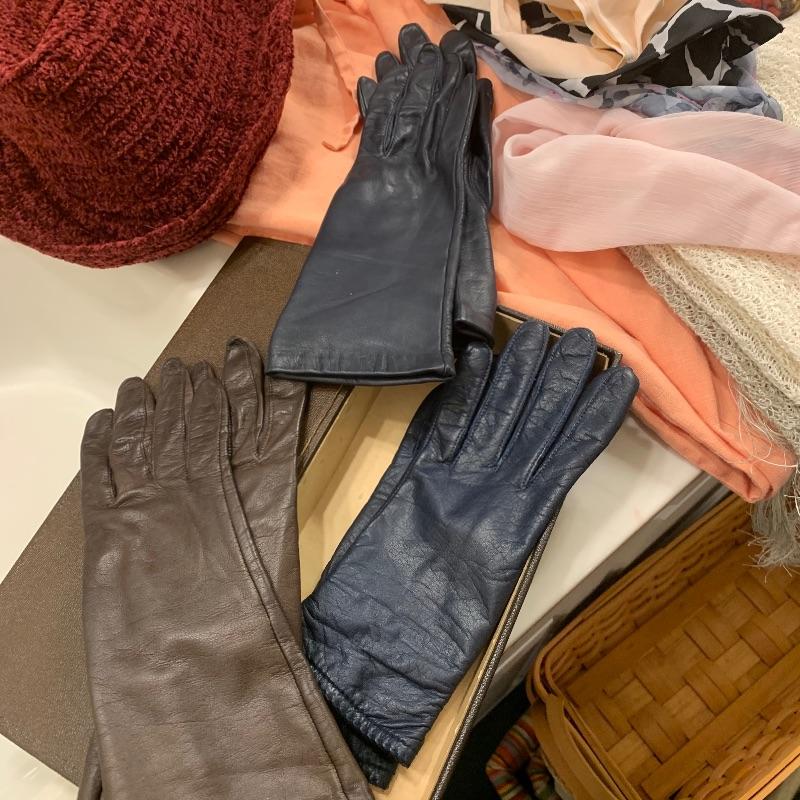 Three pairs of leather gloves, a specialty woven scarf, sox magnetic neck scarves, handkerchiefs, scarves, Orvis peach colored linen pants (size XL) and Keen size 11 indoor/outdoor slippers. Lot also has a wonderful selection of jackets to include Talbots, Sag Harbor, Appleseed, Tog Shop, Orvis and more. Most are a size 16. Local pick up only.