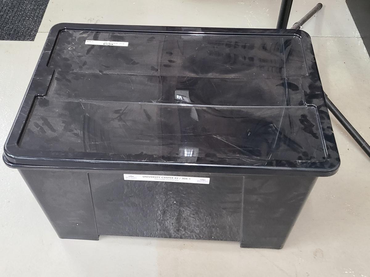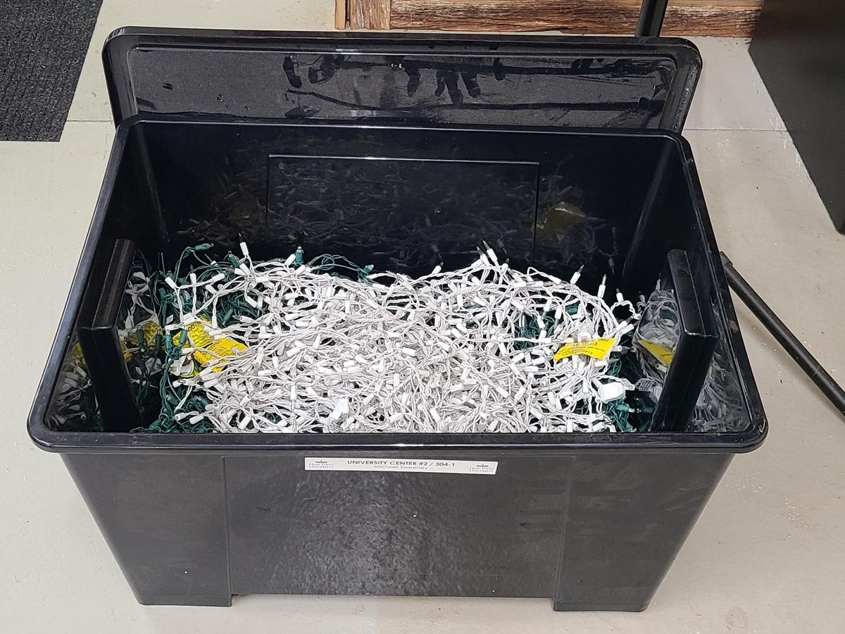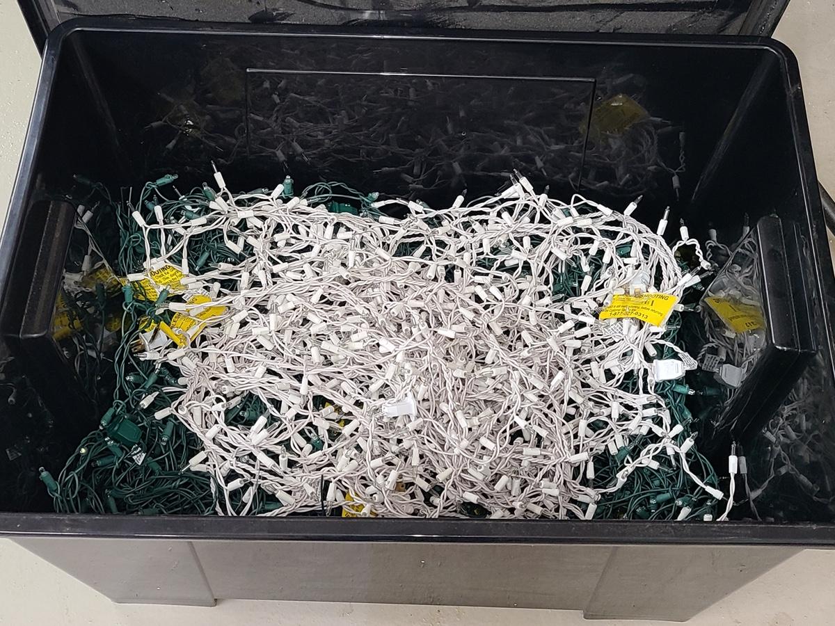 Lot 88: Large Ikea Samla Black Storage Tote packed with Christmas Lights.