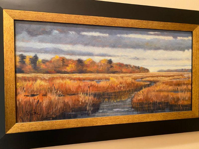 Beautiful "Tidal Marsh" Oil painting on canvas 12" x 24" by John Slater
