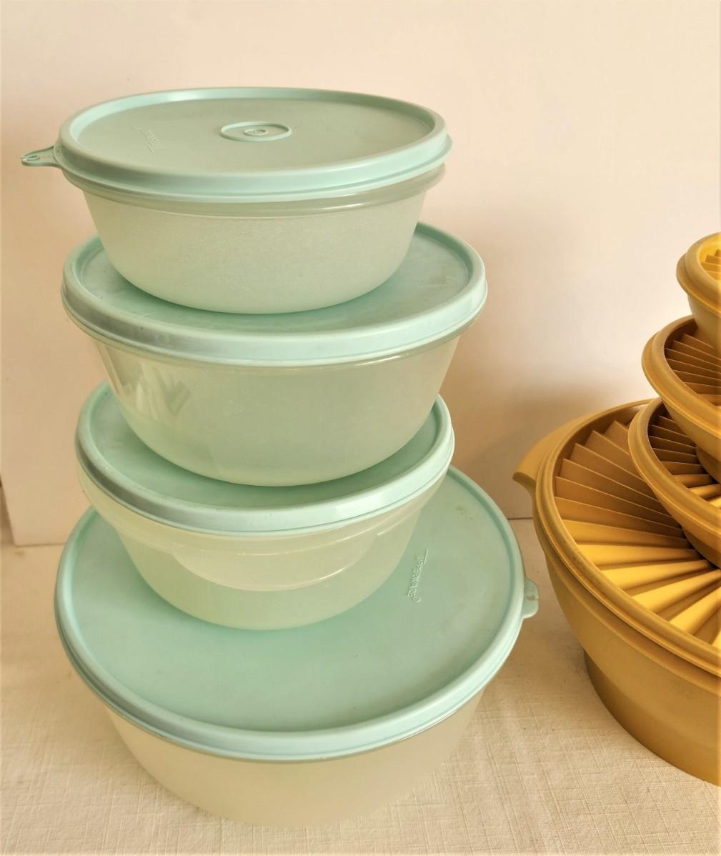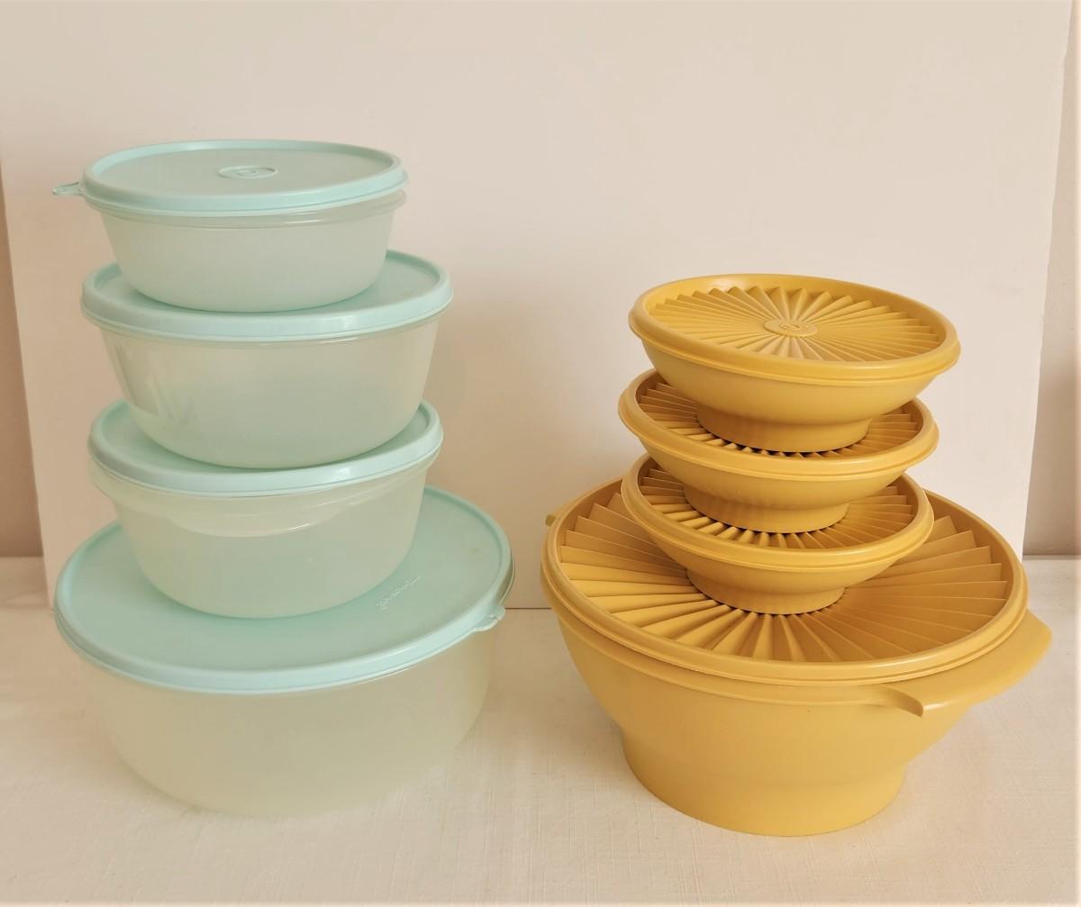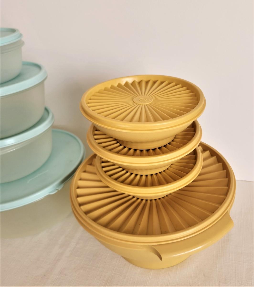 Original 1970's Tupperware - 2 sets, one in the ever popular "Harvest Gold." 8 pieces in all. Good condition. The vintage stuff is getting harder to find.