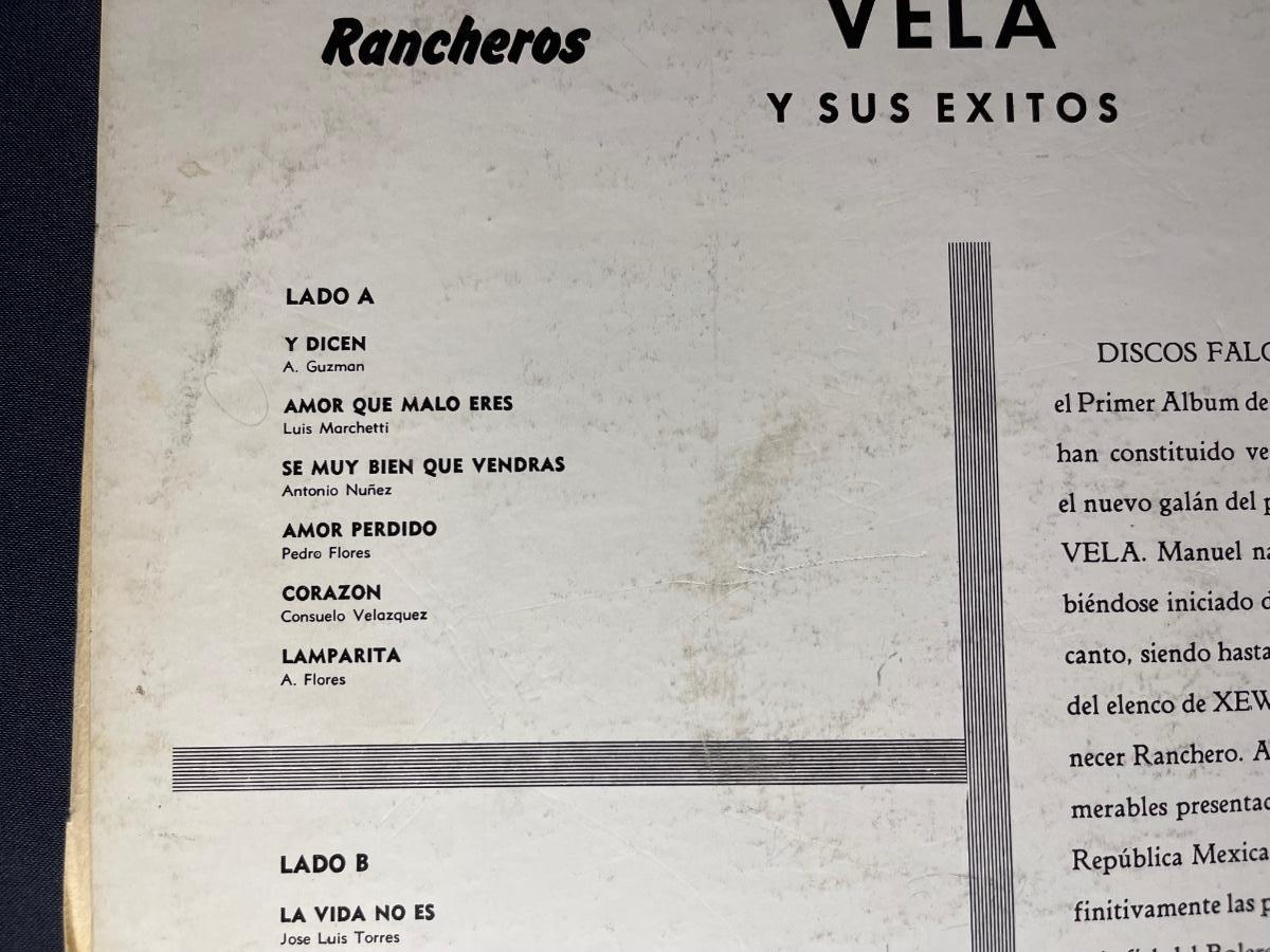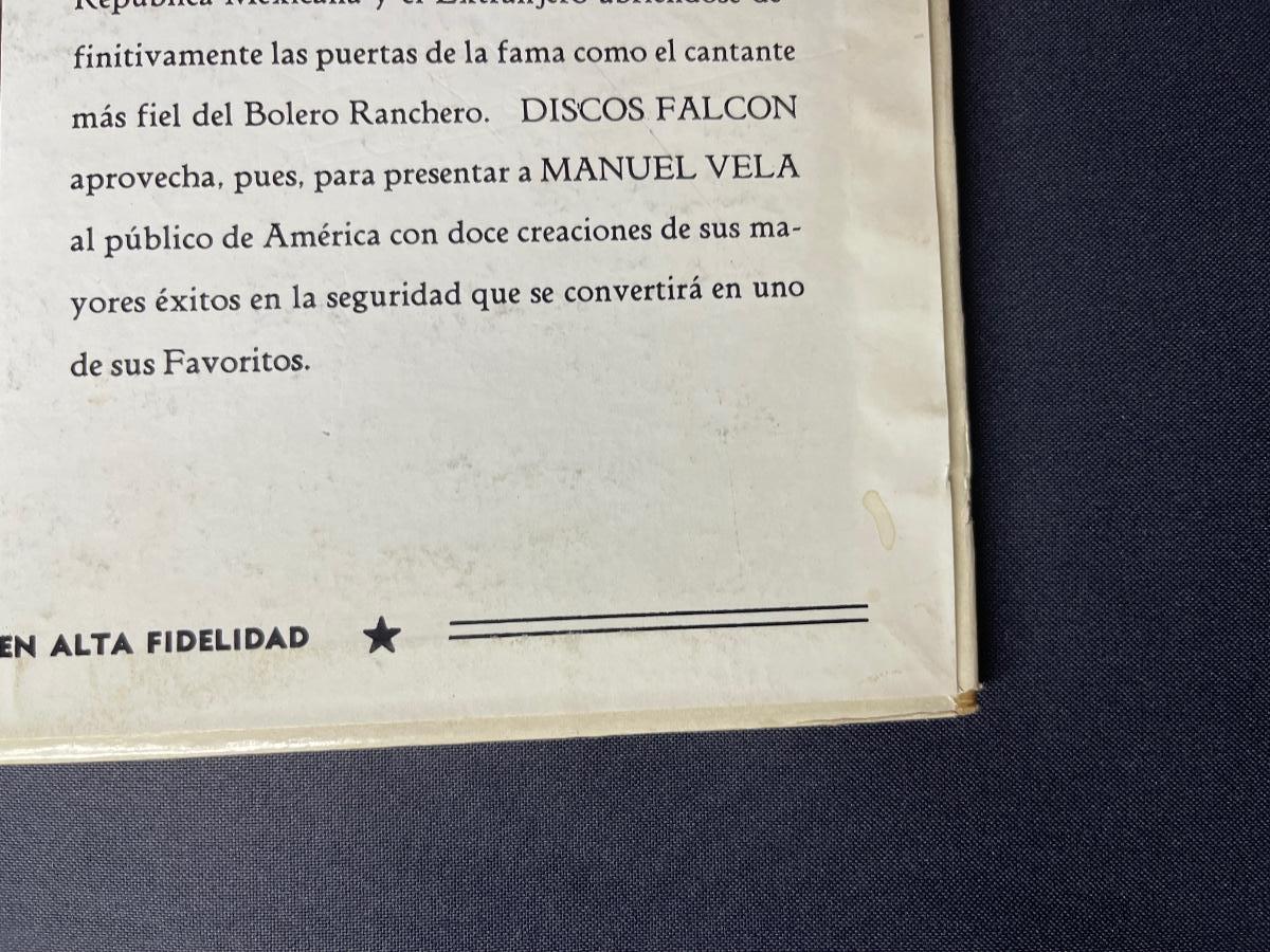 LOT 88: MANUEL VELA - BOLEROS RANCHEROS - 1954 VINYL