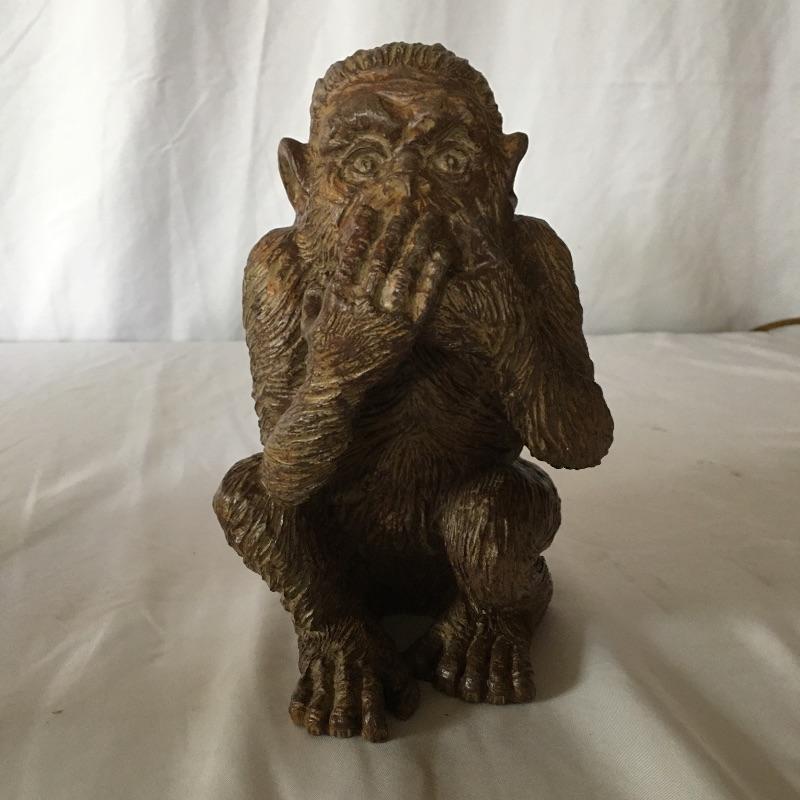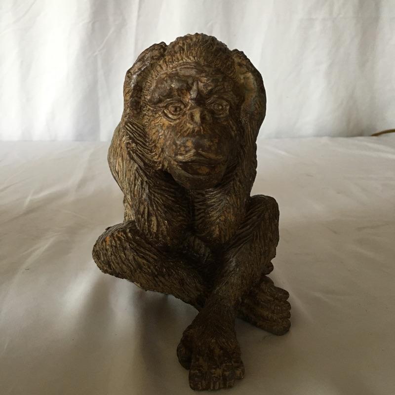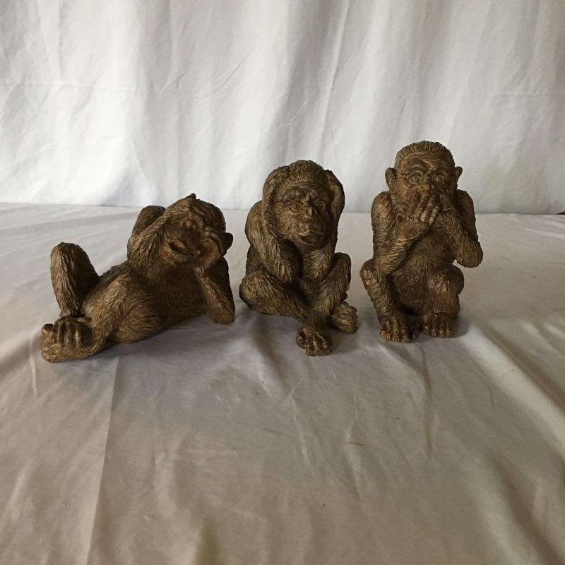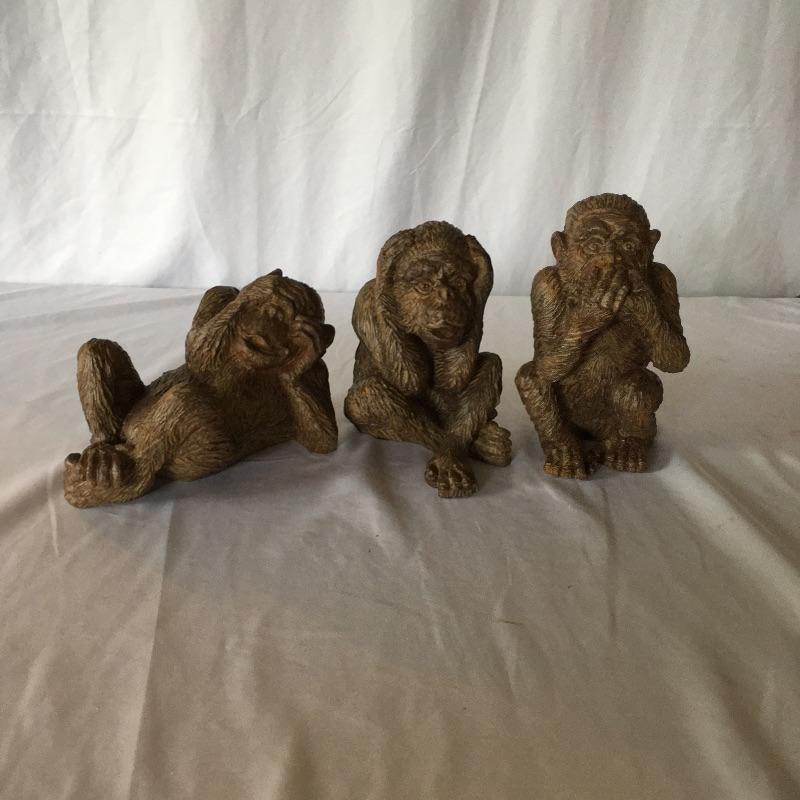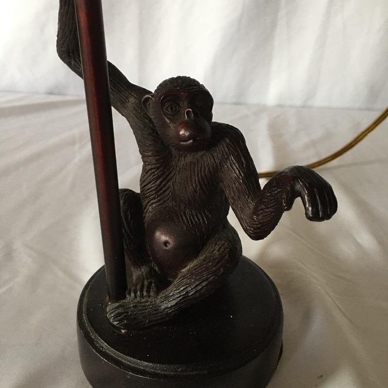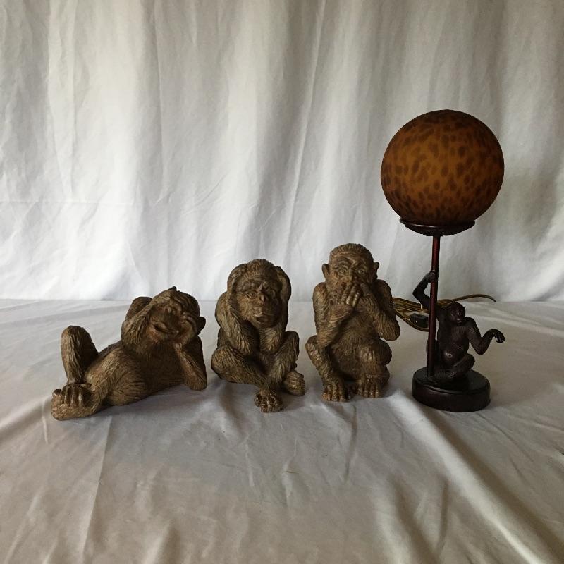 This cheeky tribe of monkeys includes the see no evil, hear no evil and speak no evil resin monkeys. Also includes a metal monkey table lamp. Lamp was not tested as it needs bulb. Lamp measures 5.75”D x 15.5” tall.