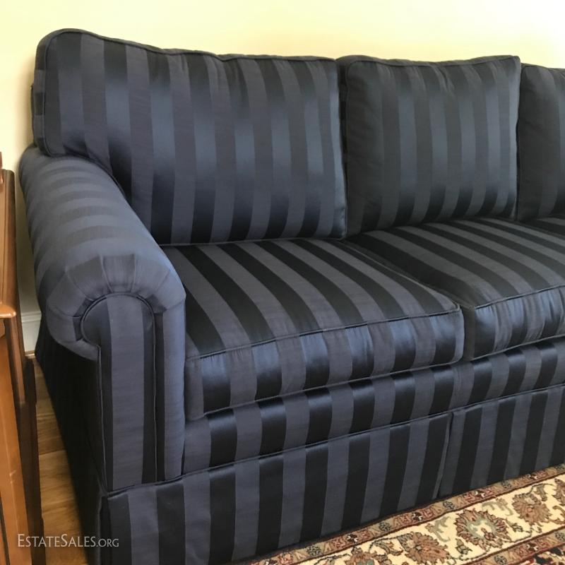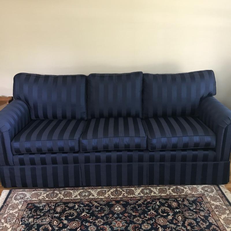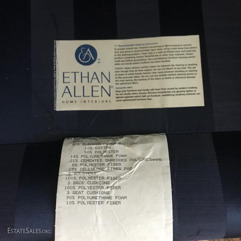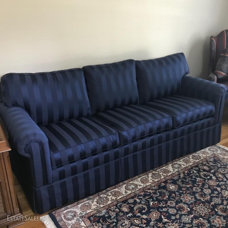 Navy Ethan Allen couch in excellent condition. Rarely used. Blue striped fabric. 85"l x 36"w x 37"h. No Shipping. Local pick up in Asheville, NC.