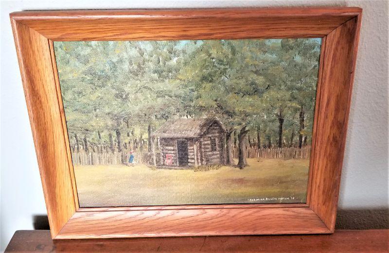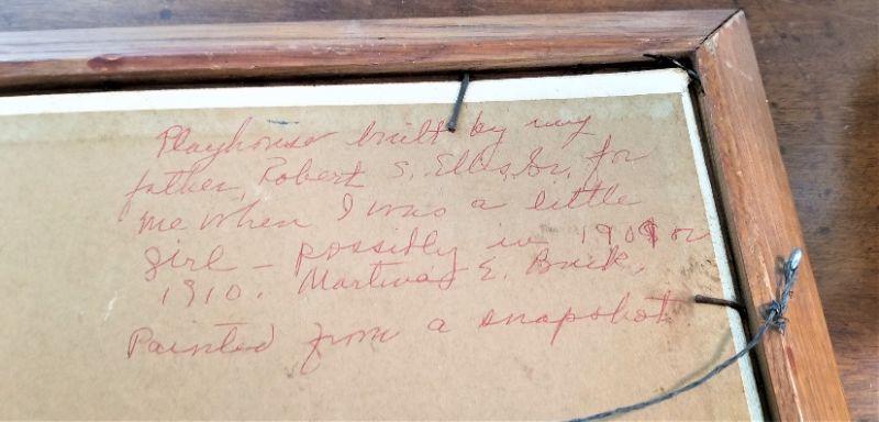 Fresh to the market - commissioned in 1968 by Robert Ellis, Sr. and depicts his daughter's playhouse on their plantation. Oil on board measures 14" x 11". By African American primitive artist Hermina Boutte Tatum (1902-1983) - well listed. Her art has sold at auction galleries around town. Provenance on reverse.