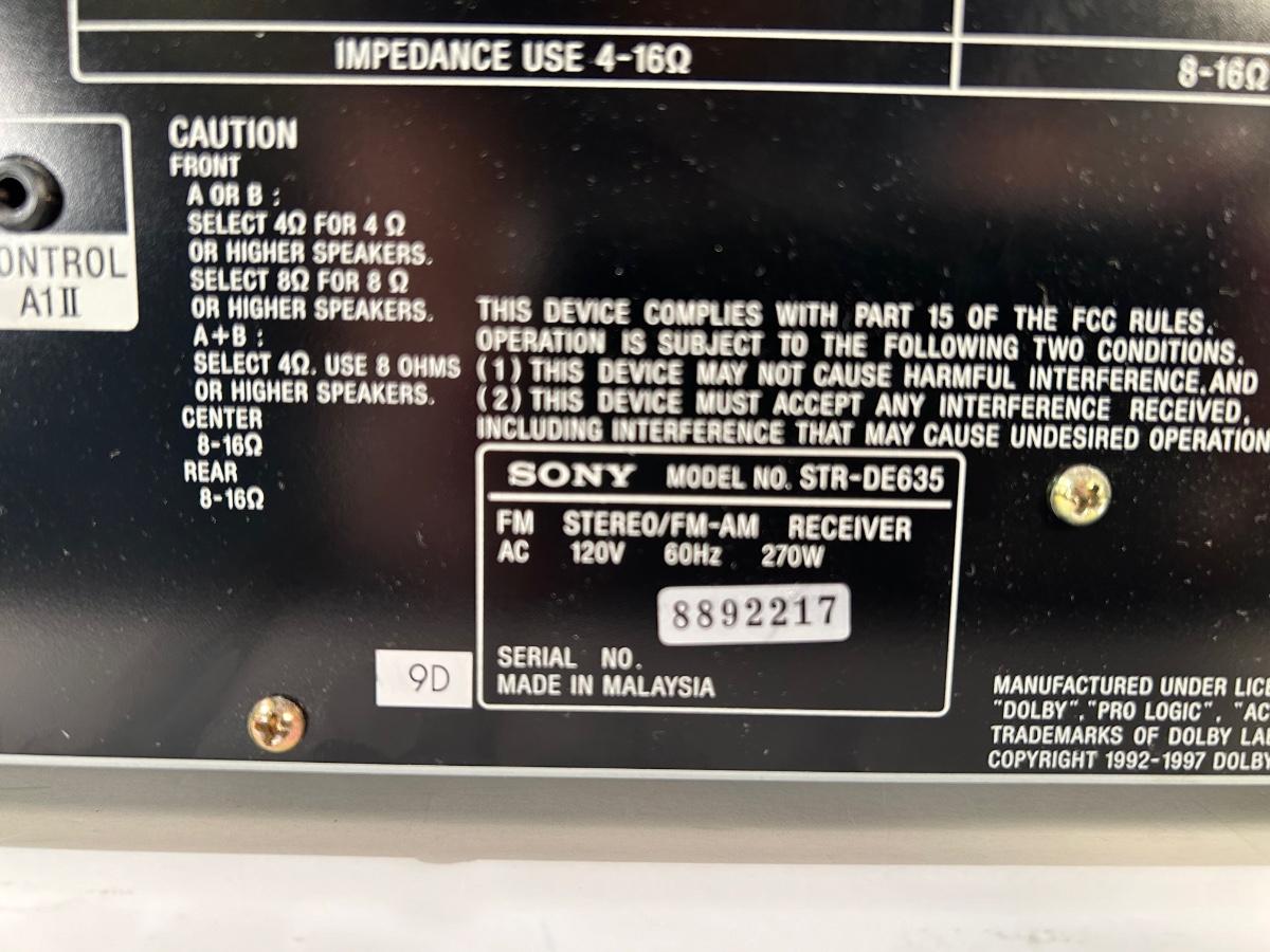 Sony Digital Autdio/Video Control Center Digital Cinema Sound Processing 32Bit Model STR-DE635, Sony AV System Remote RM-PP402 & Sony AM Loop Antenna