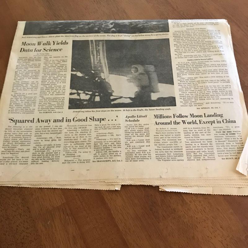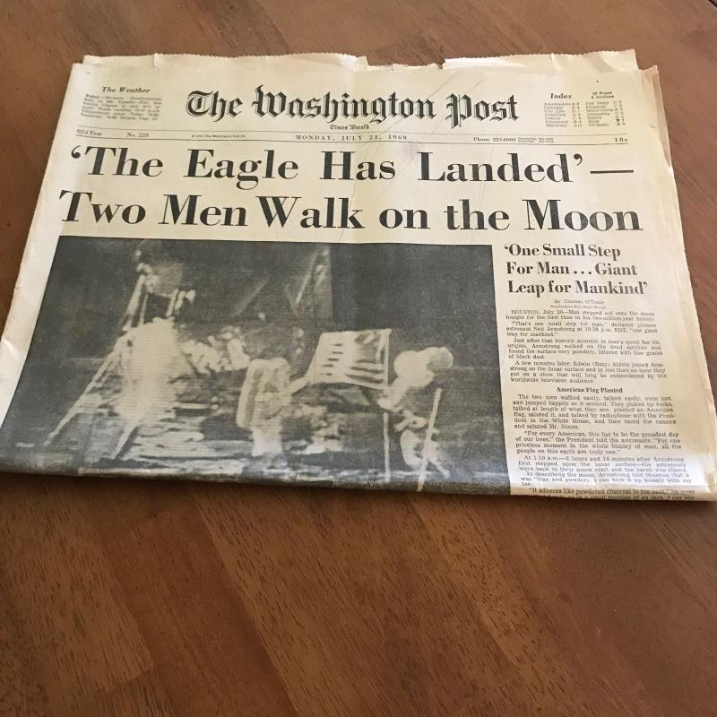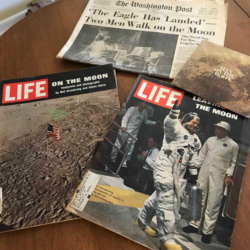 Man Landed on the Moon! Newspaper from The Washington Post dated July 21, 1969, Two Life magazines with Moon Coverage (July 25, 1969 & August 8, 1969) and a CBS News Presentation on vinyl with Walter Cronkite. Shipping available.