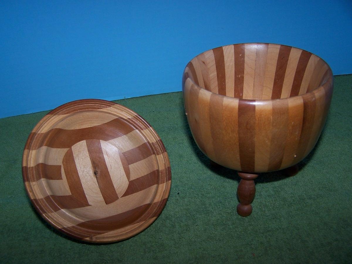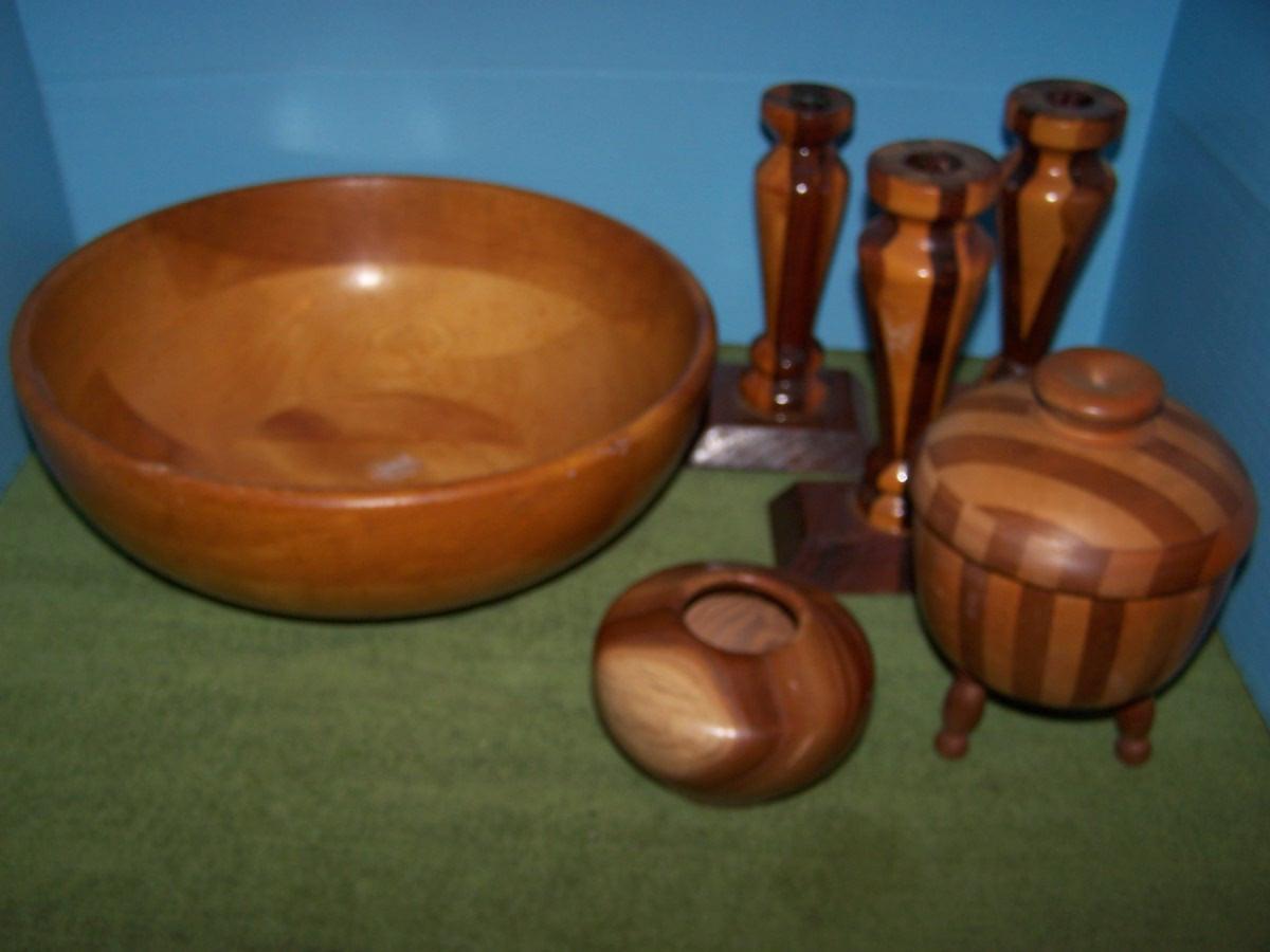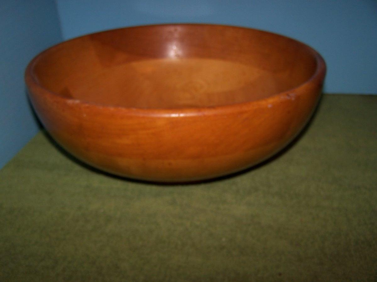 THESE ARE WONDERFUL VINTAGE WOODEN ITEMS!!! 2 BOWLS ARE MARKED... LARGE BOWL IS 4 1/4'' TALL X 12'' ACROSS TOP.. LIGHT WEAR, SOME RUBS...