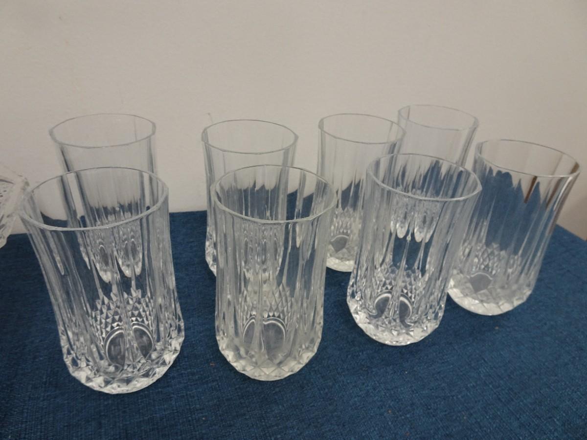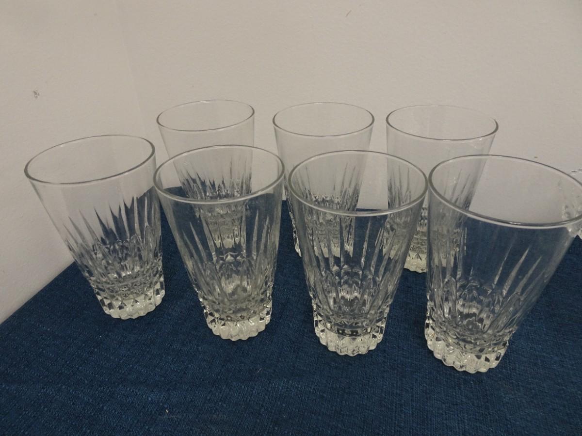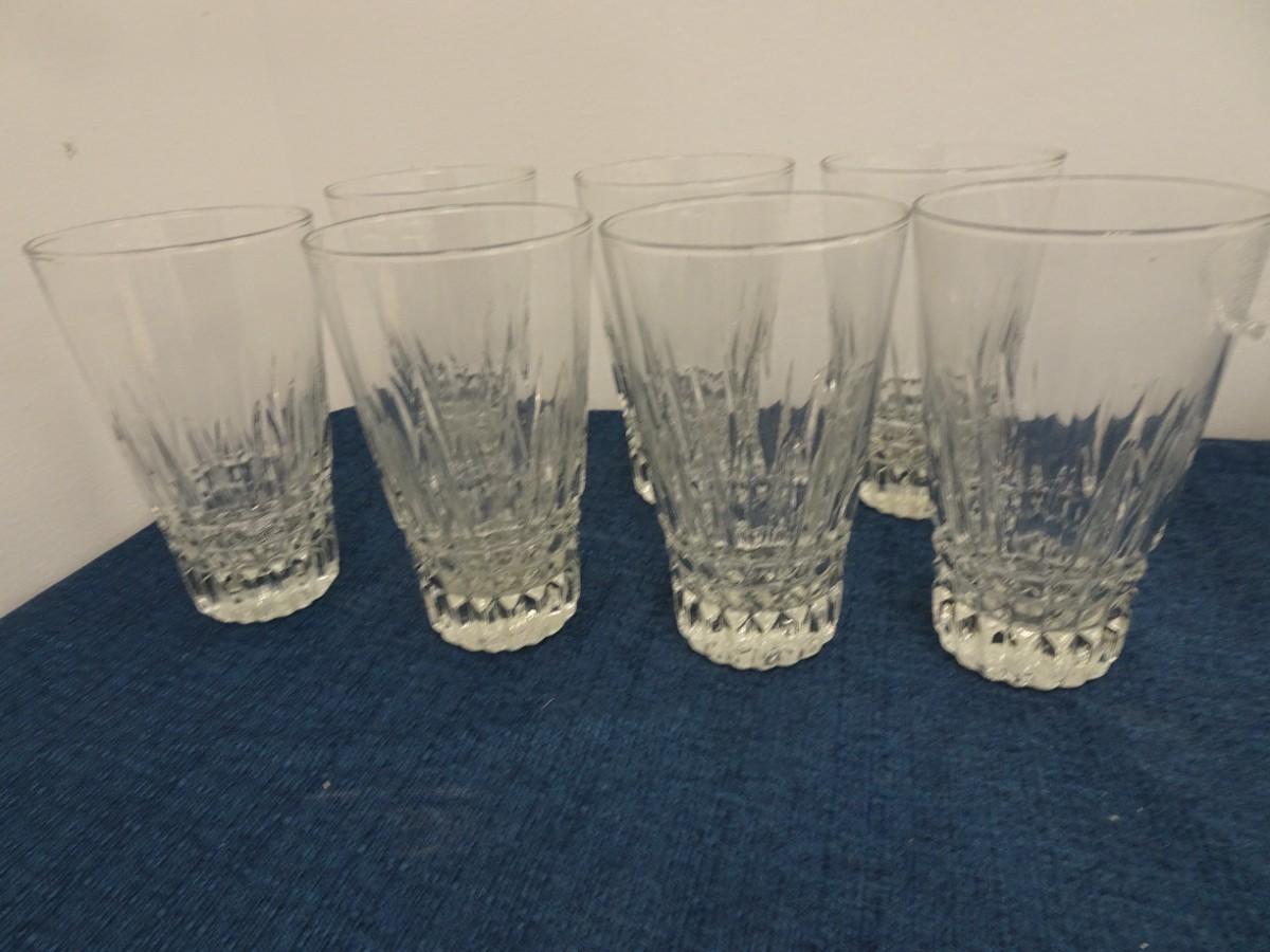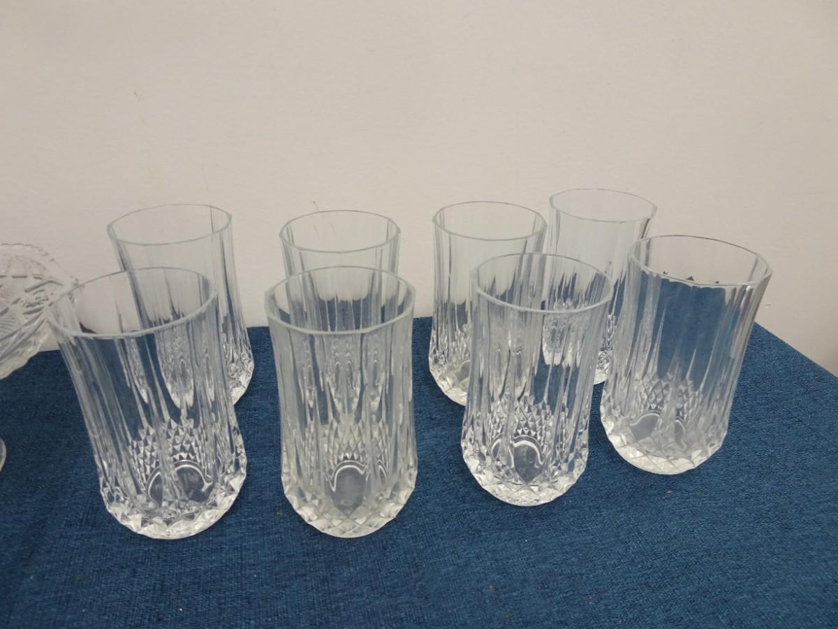 LOT 882 GLASS CAKE PLATE AND GLASSES