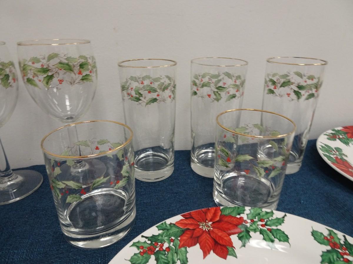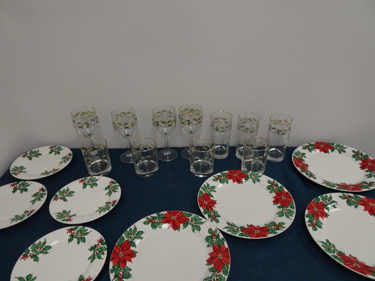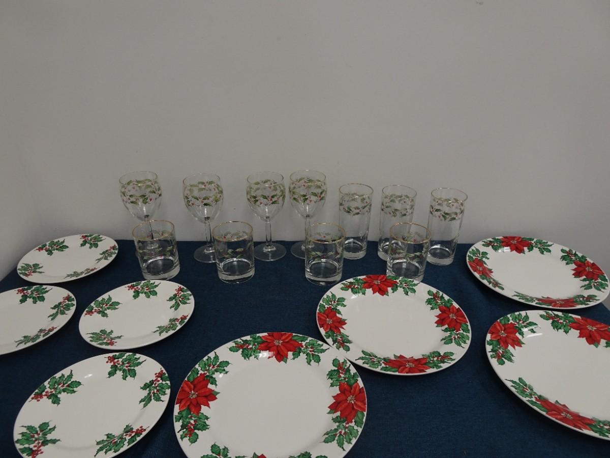 LOT 883 HALLMARK CHRISTMAS PLATES AND GLASSES