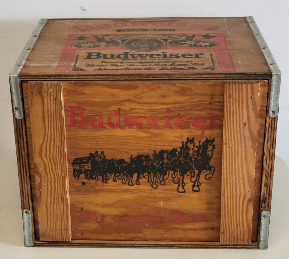 LOT 48: Wooden Box/ Crate with Budweiser Logo and Magnetic Lid