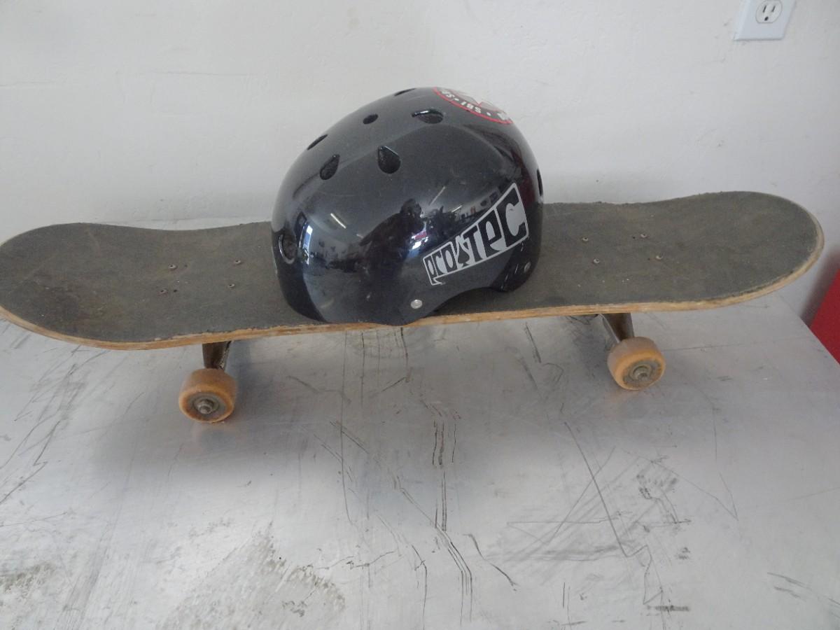 LOT 885 SKATEBOARD AND HELMET