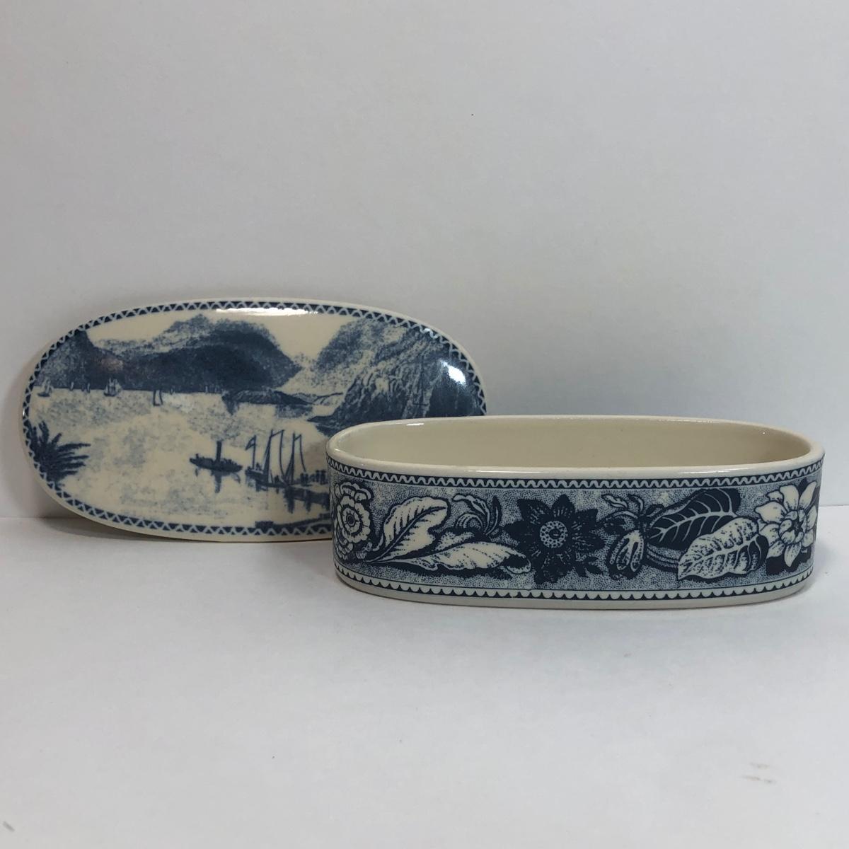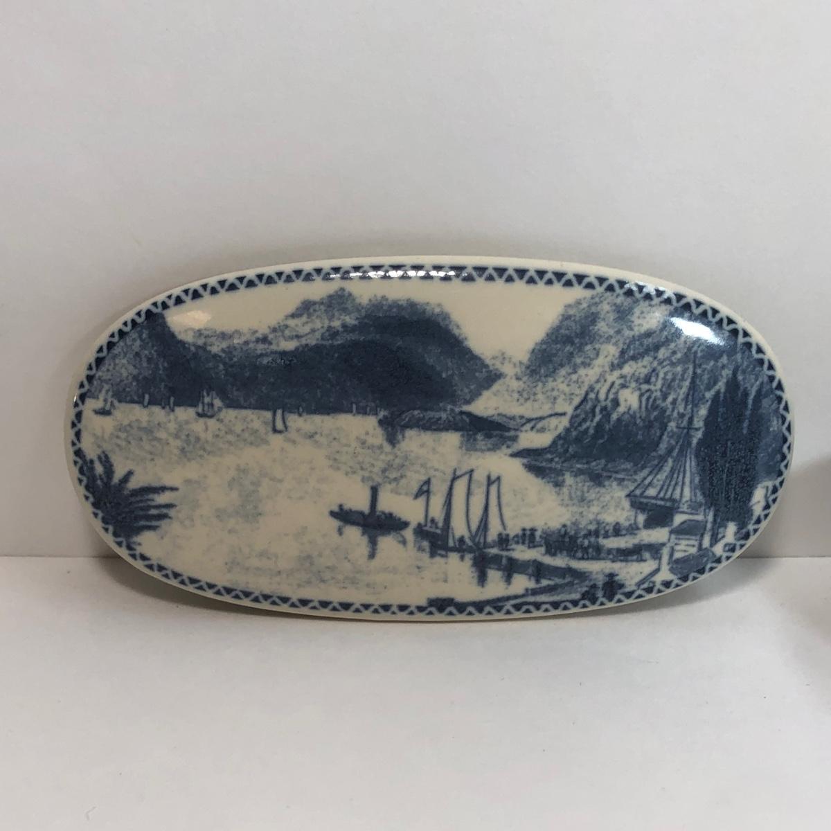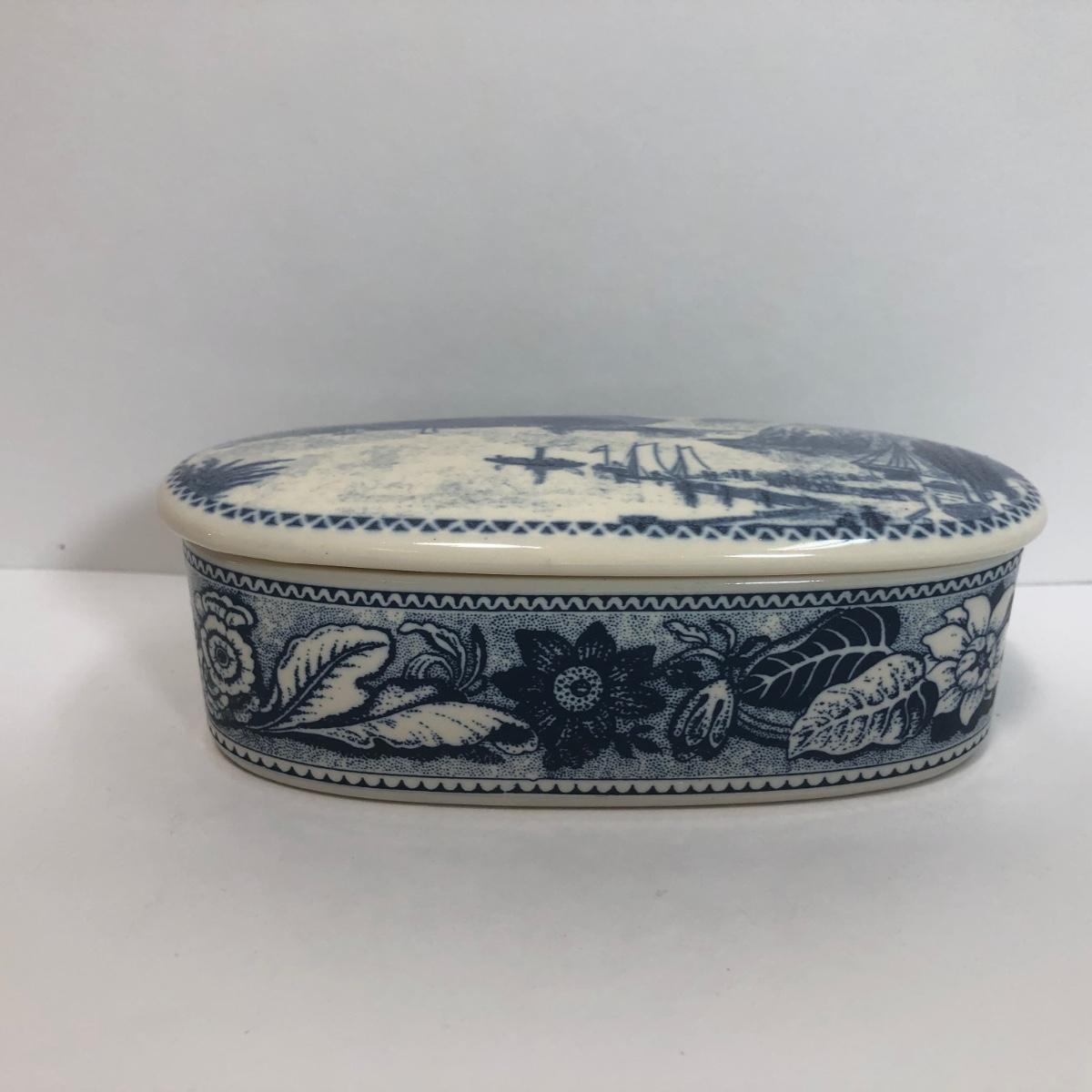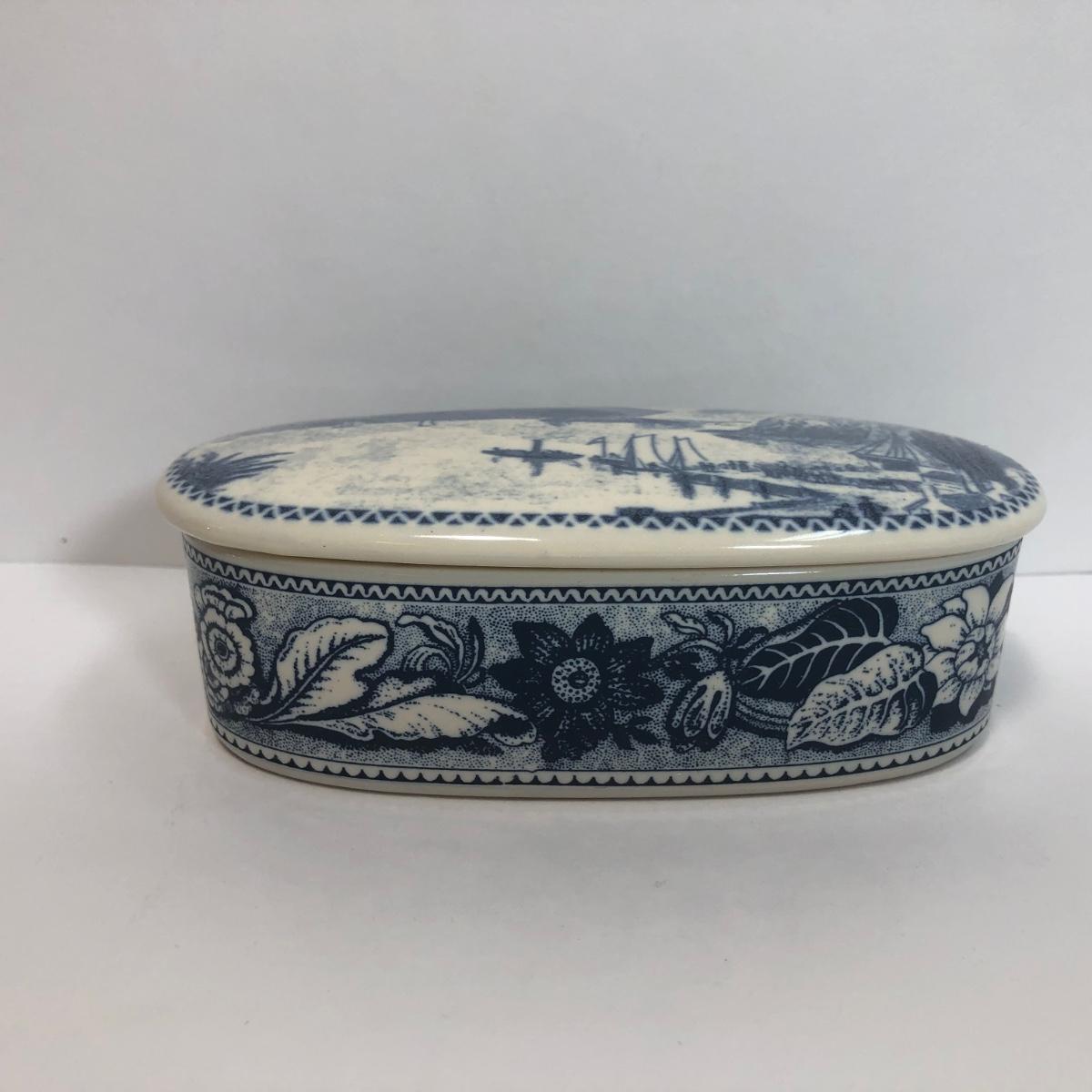LOT 17: Oval Japanese Porcelain Box w/ Port Scene